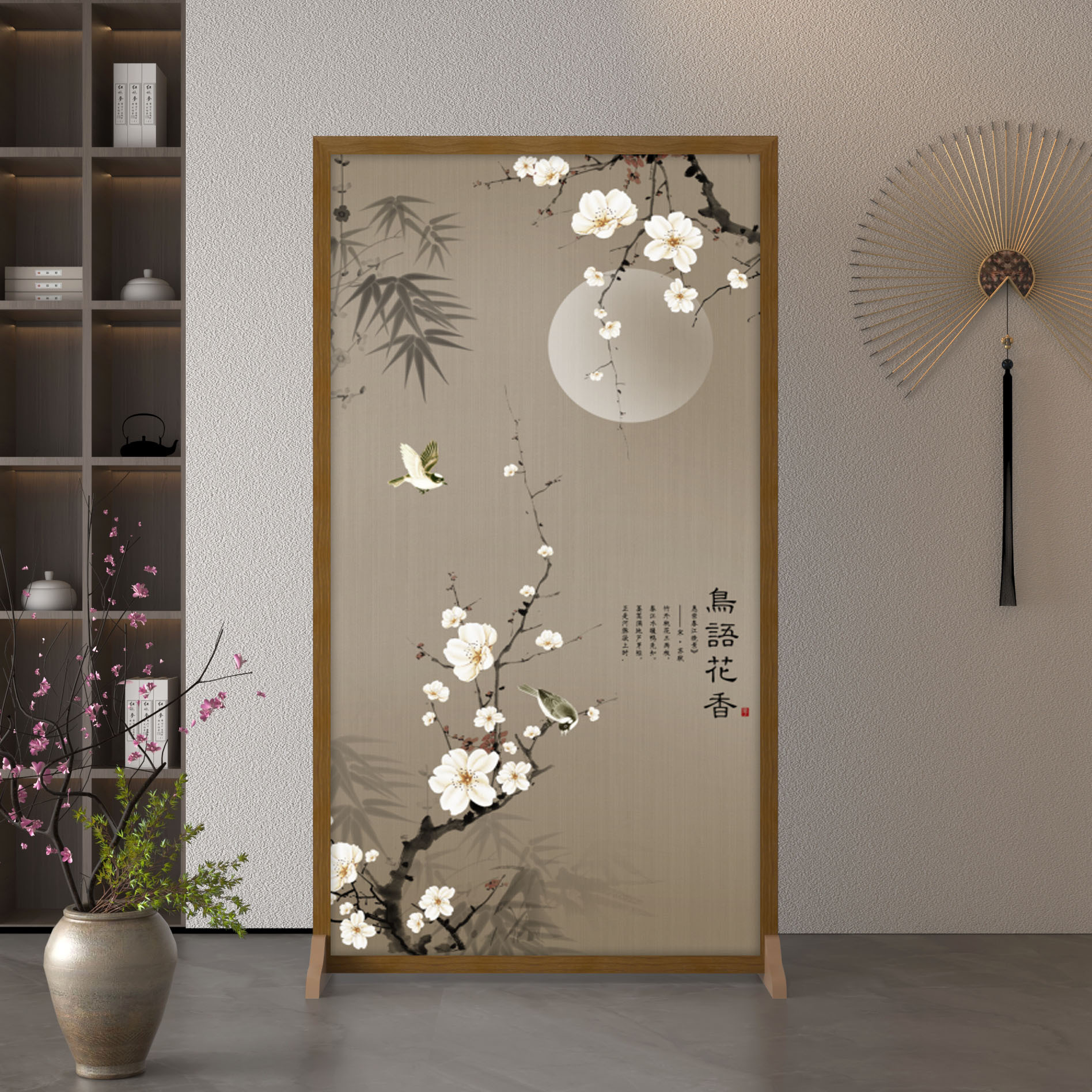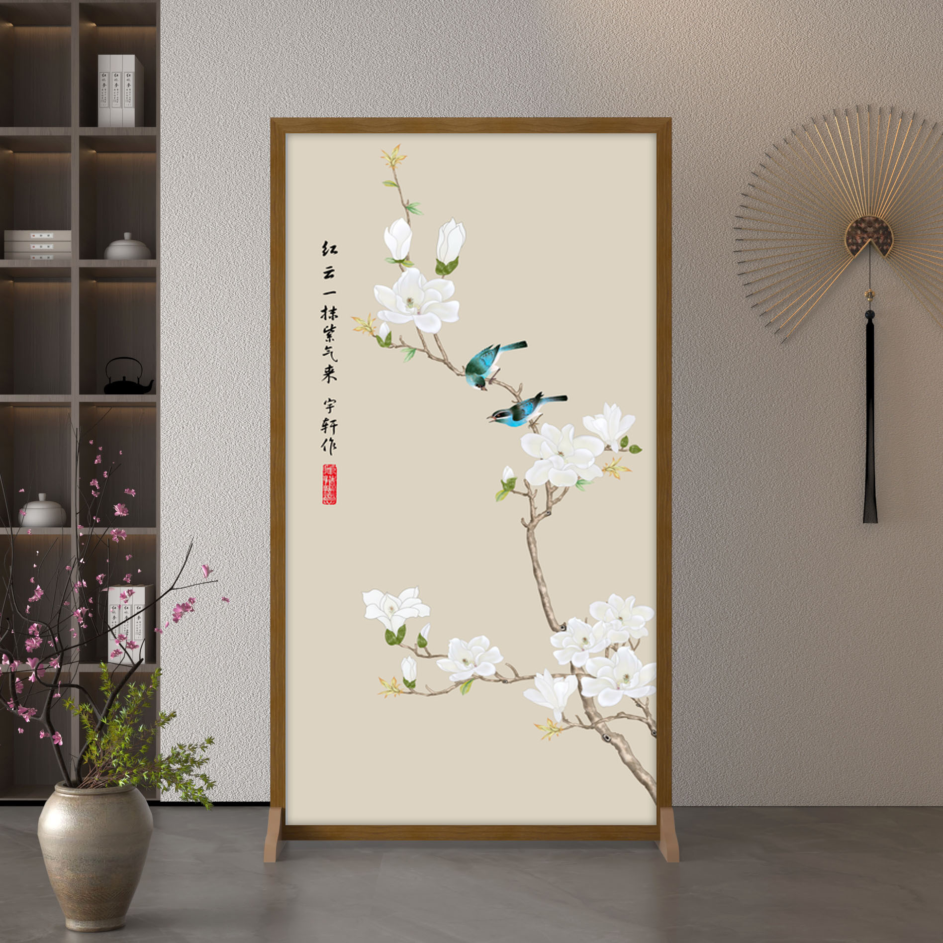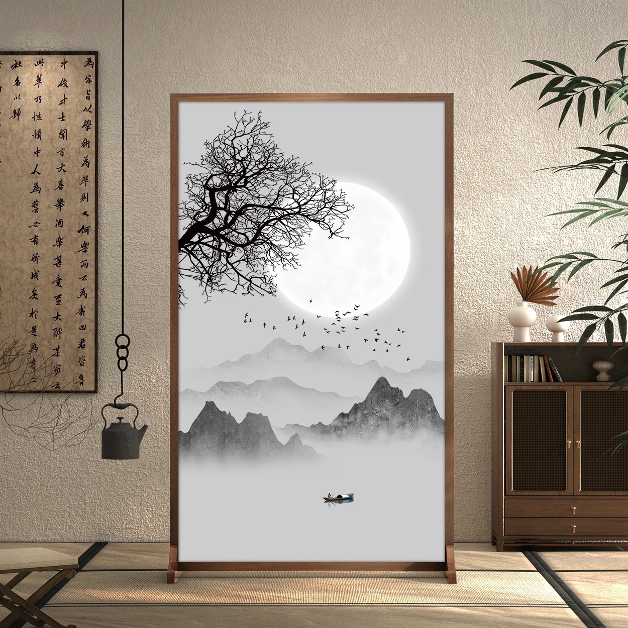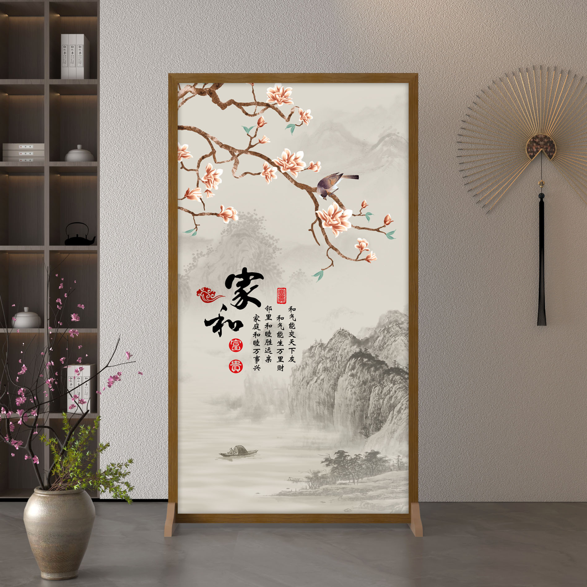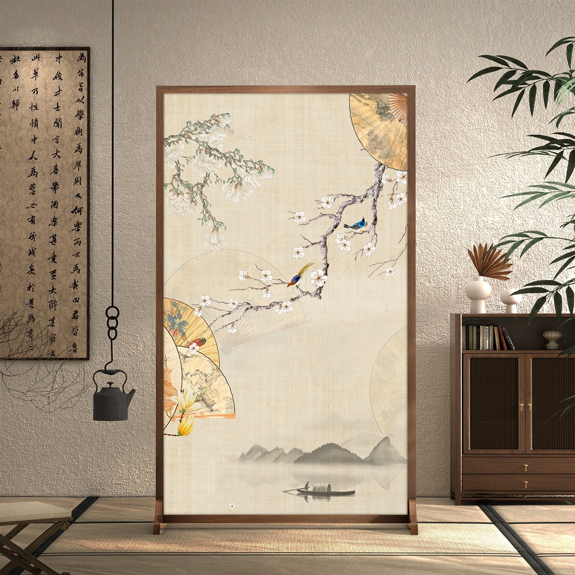 새로운 중국 스타일의 간단한 현대 파티션 입구 패브릭 쉴드 거실 나무 스크린 입구 장식 모바일 스크린