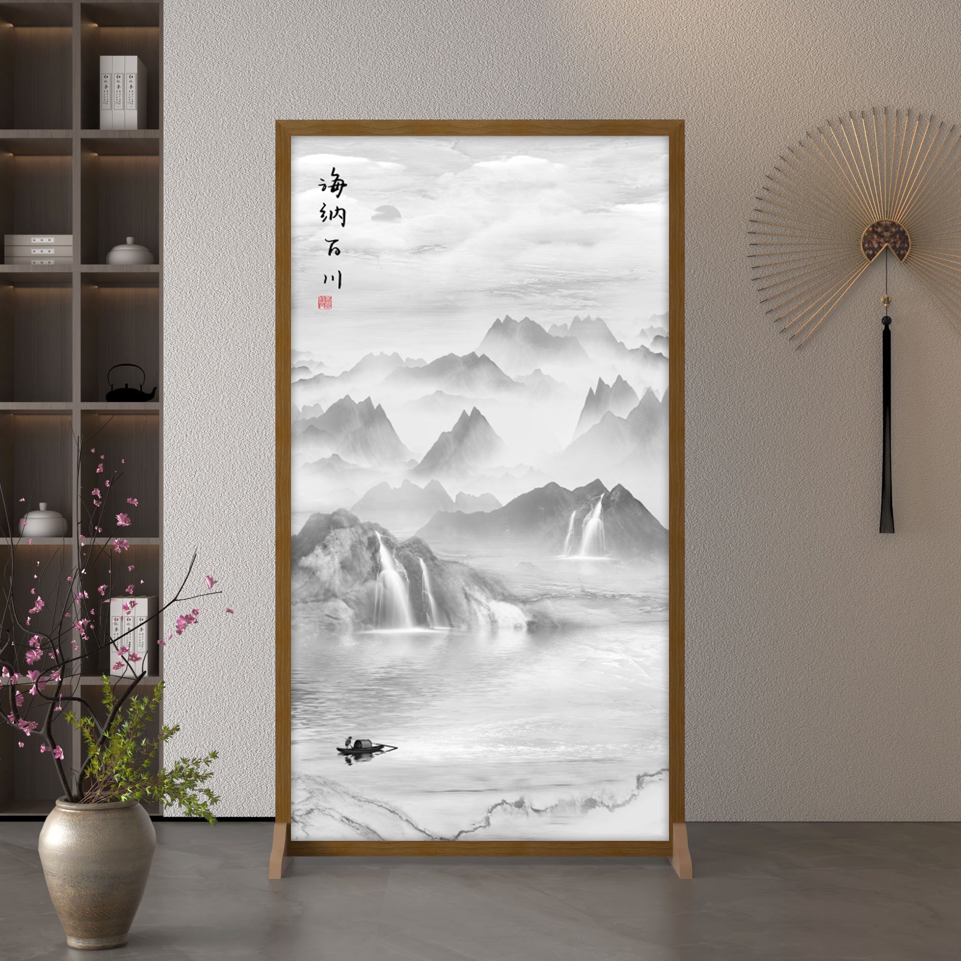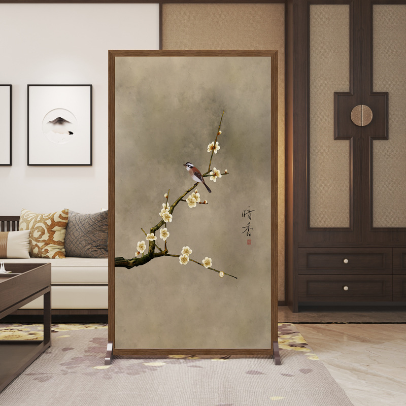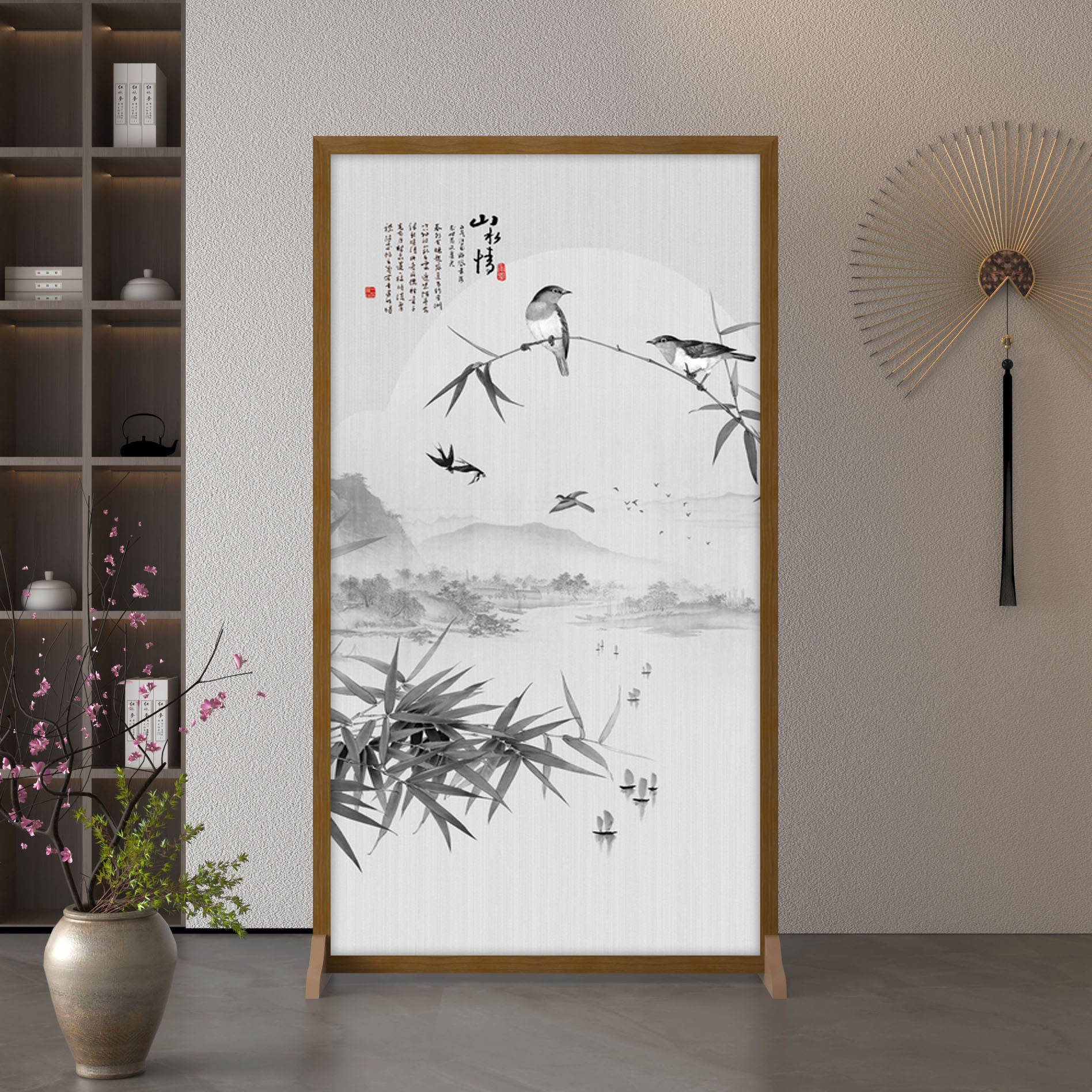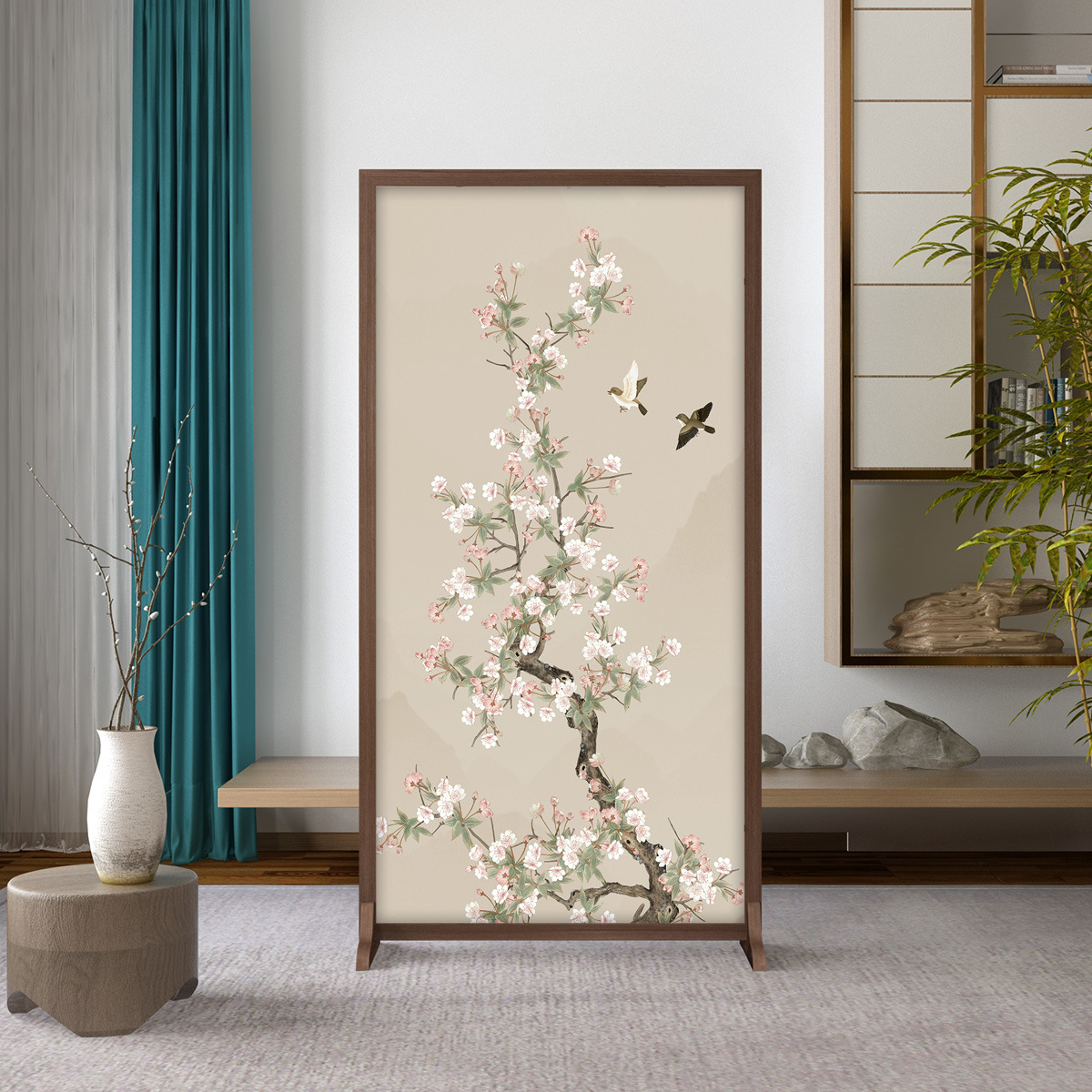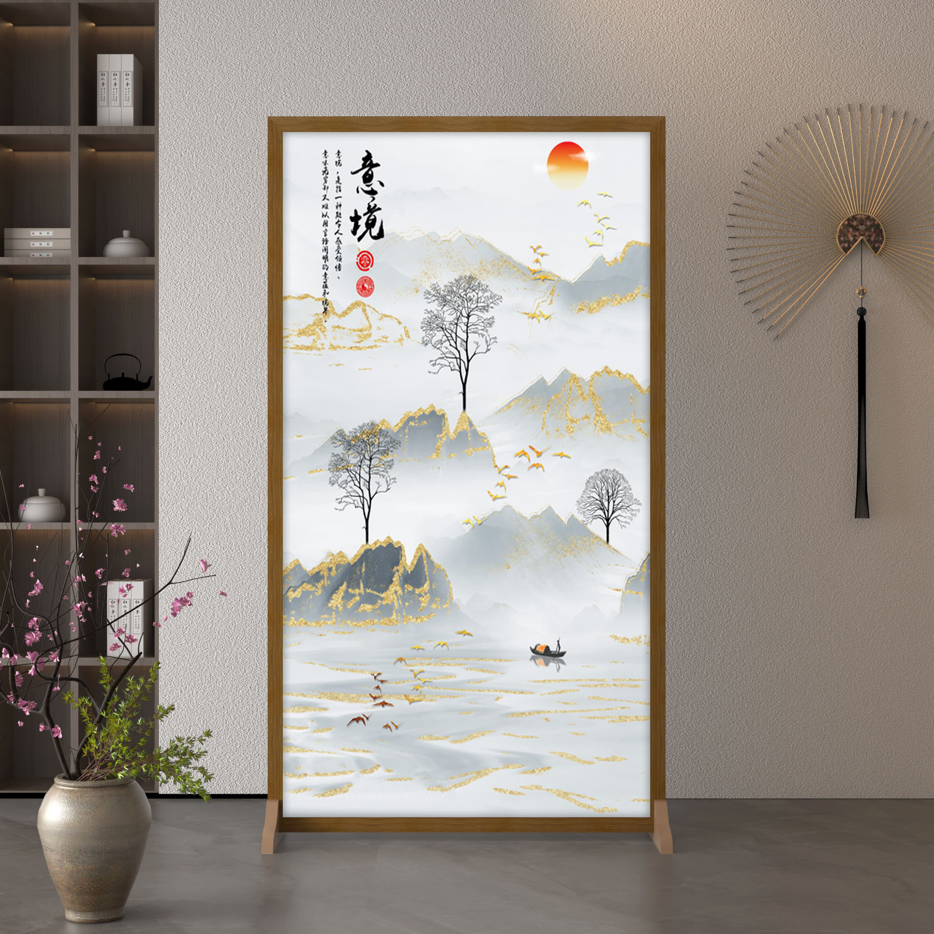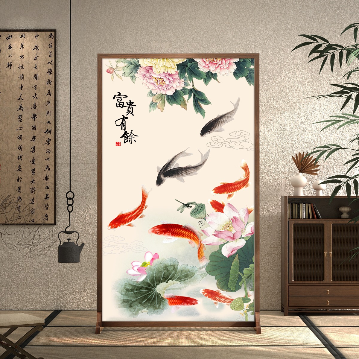 새로운 중국 스타일의 간단한 현대 파티션 입구 패브릭 쉴드 거실 나무 스크린 입구 장식 모바일 스크린