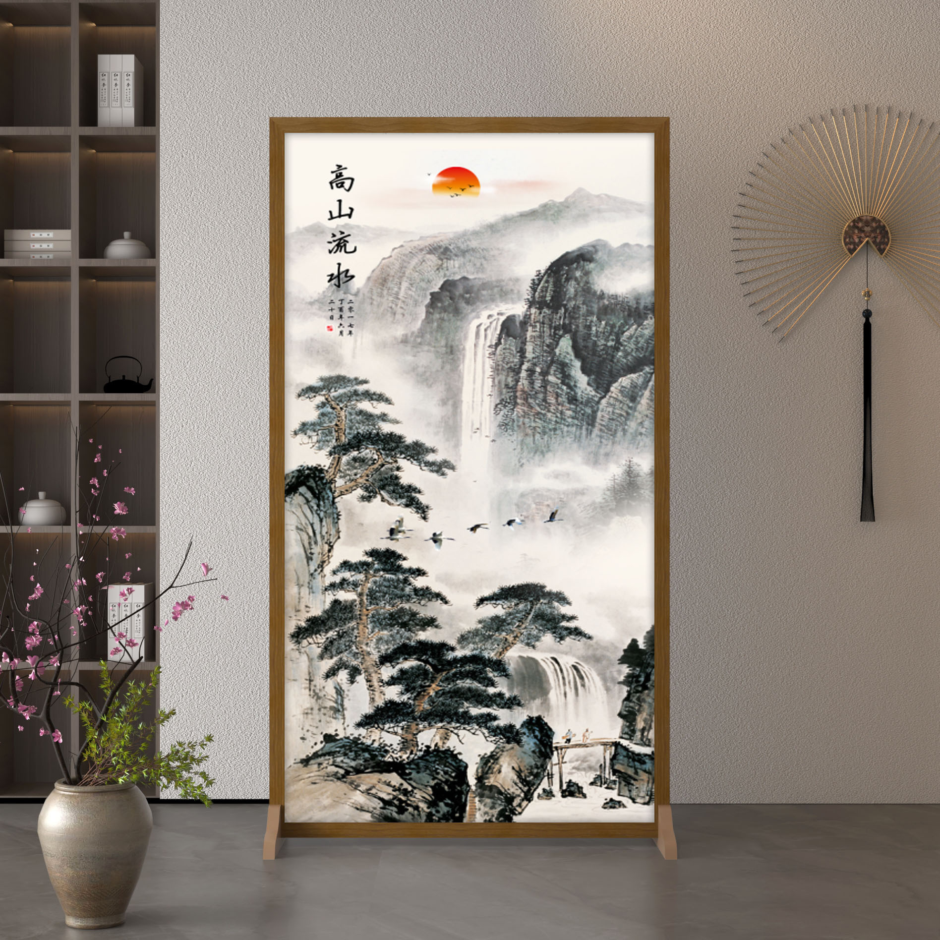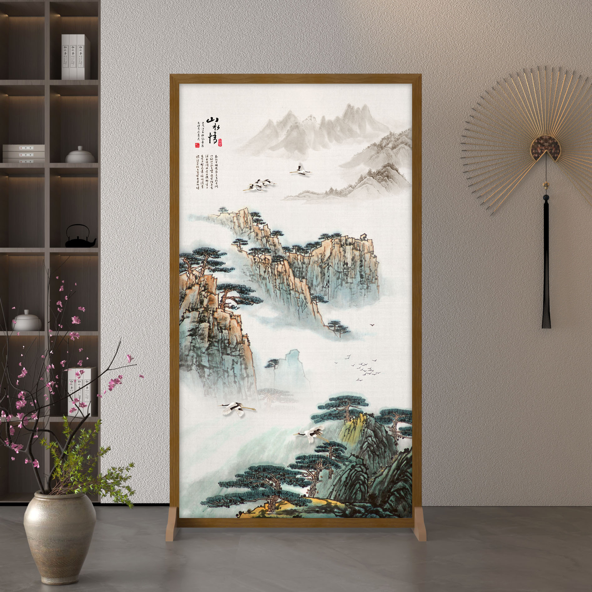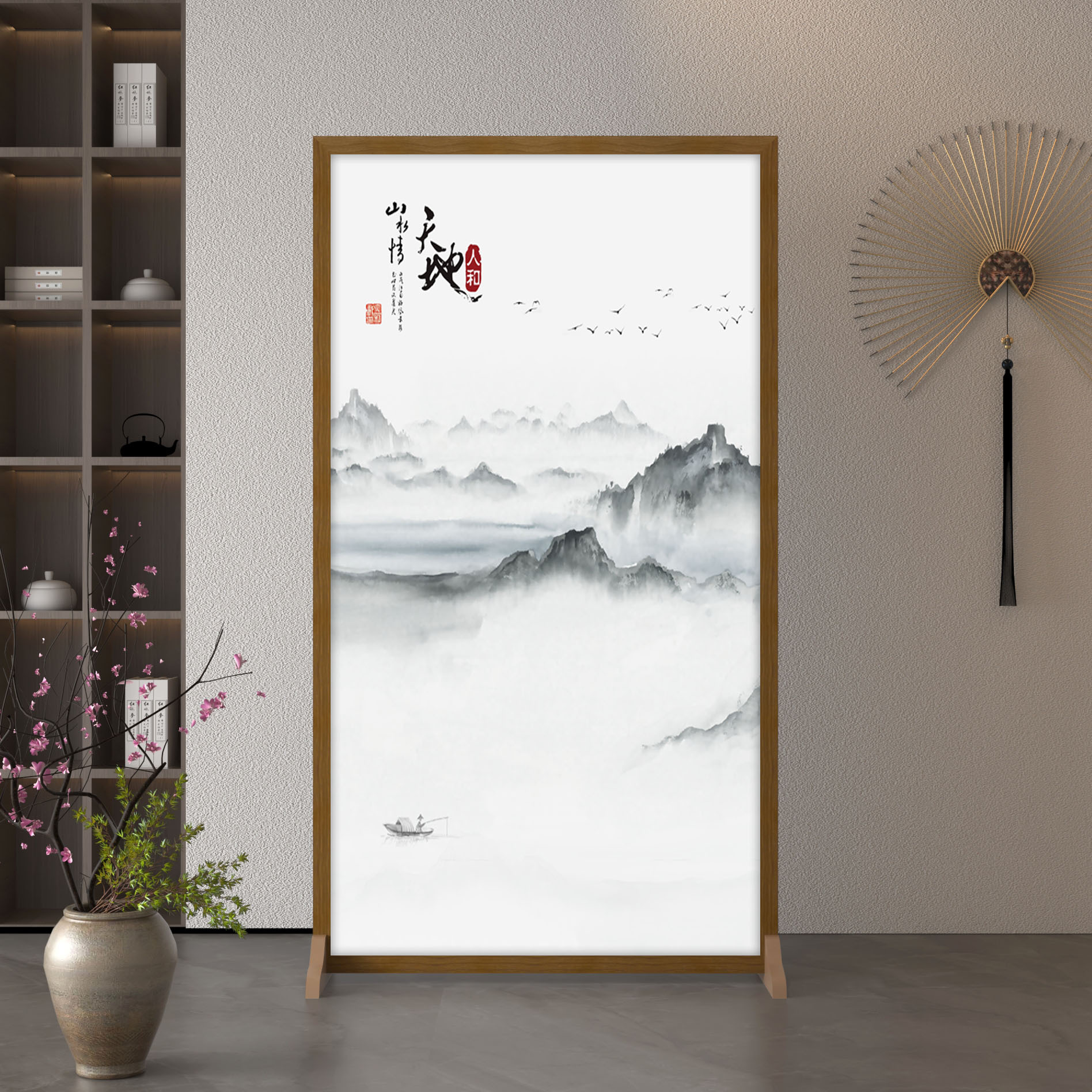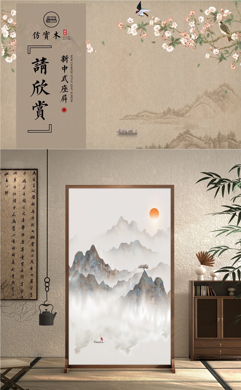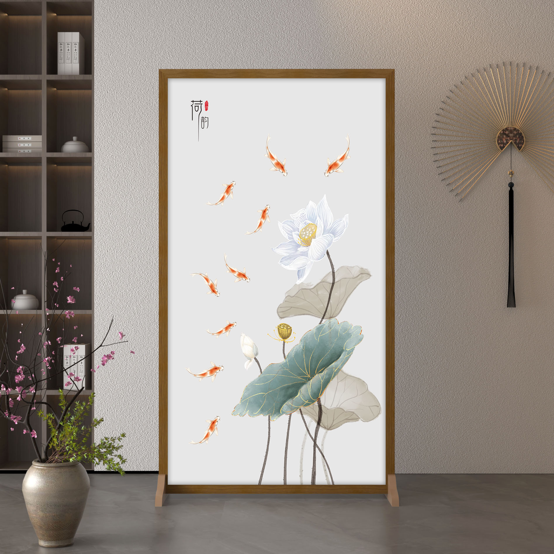 새로운 중국 스타일의 간단한 현대 파티션 입구 패브릭 쉴드 거실 나무 스크린 입구 장식 모바일 스크린