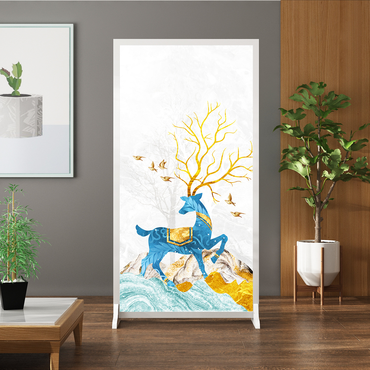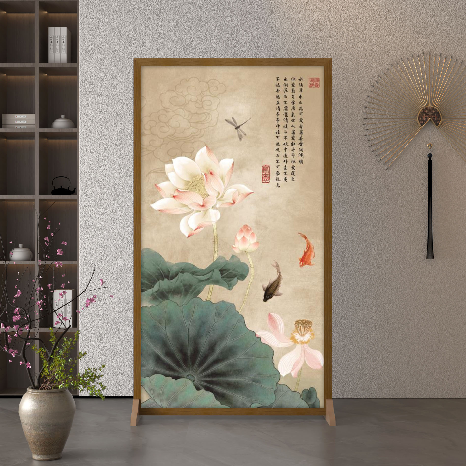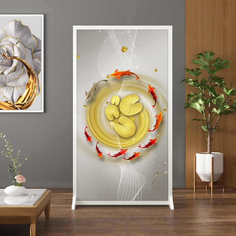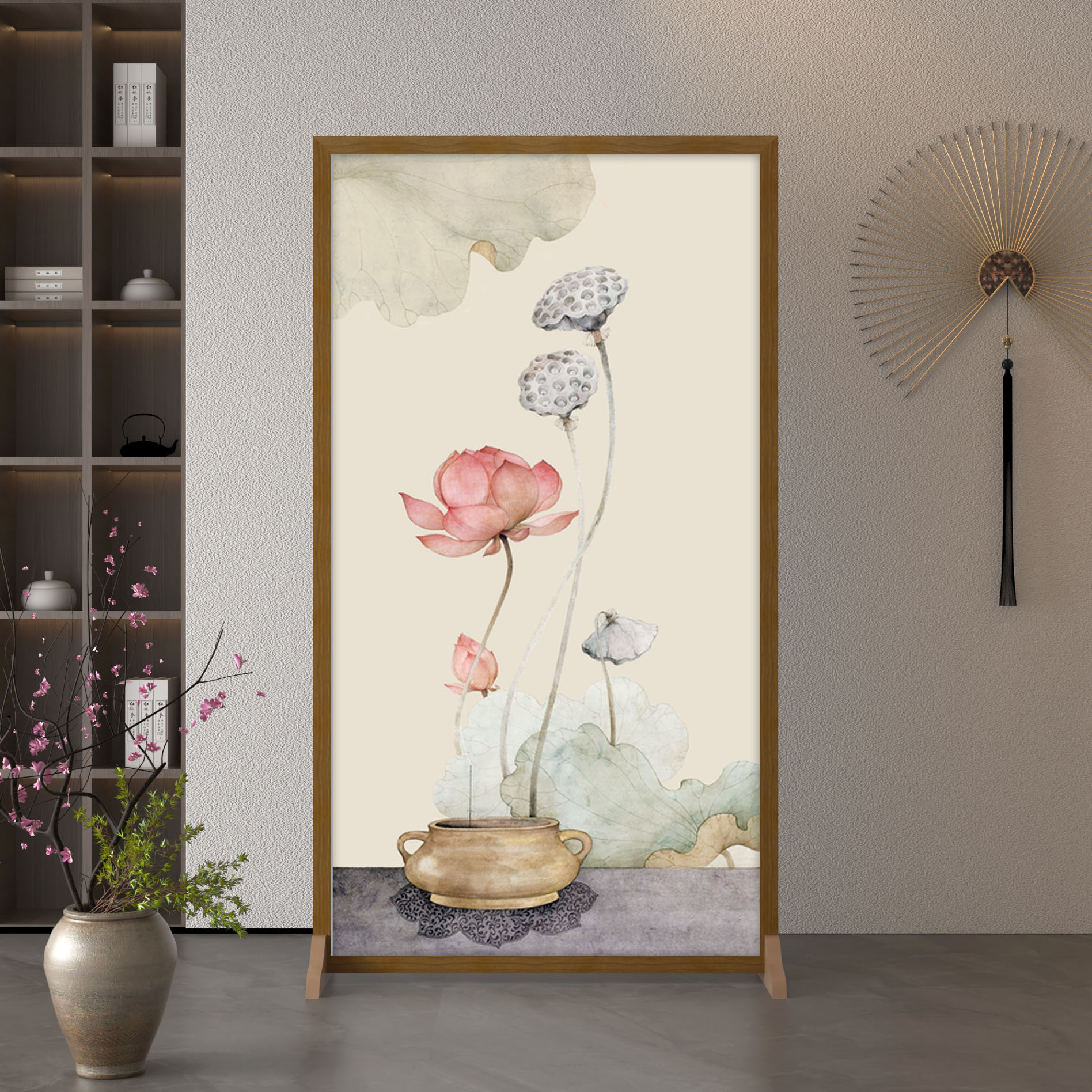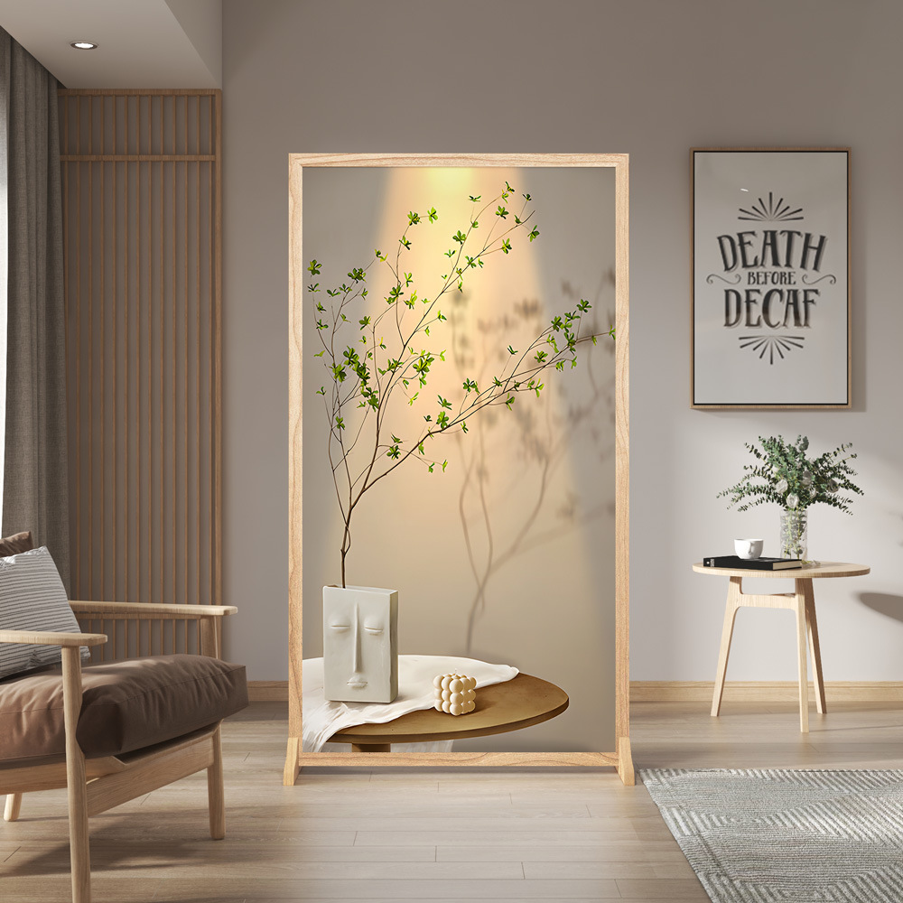 새로운 중국 스타일의 간단한 현대 파티션 입구 패브릭 쉴드 거실 나무 스크린 입구 장식 모바일 스크린