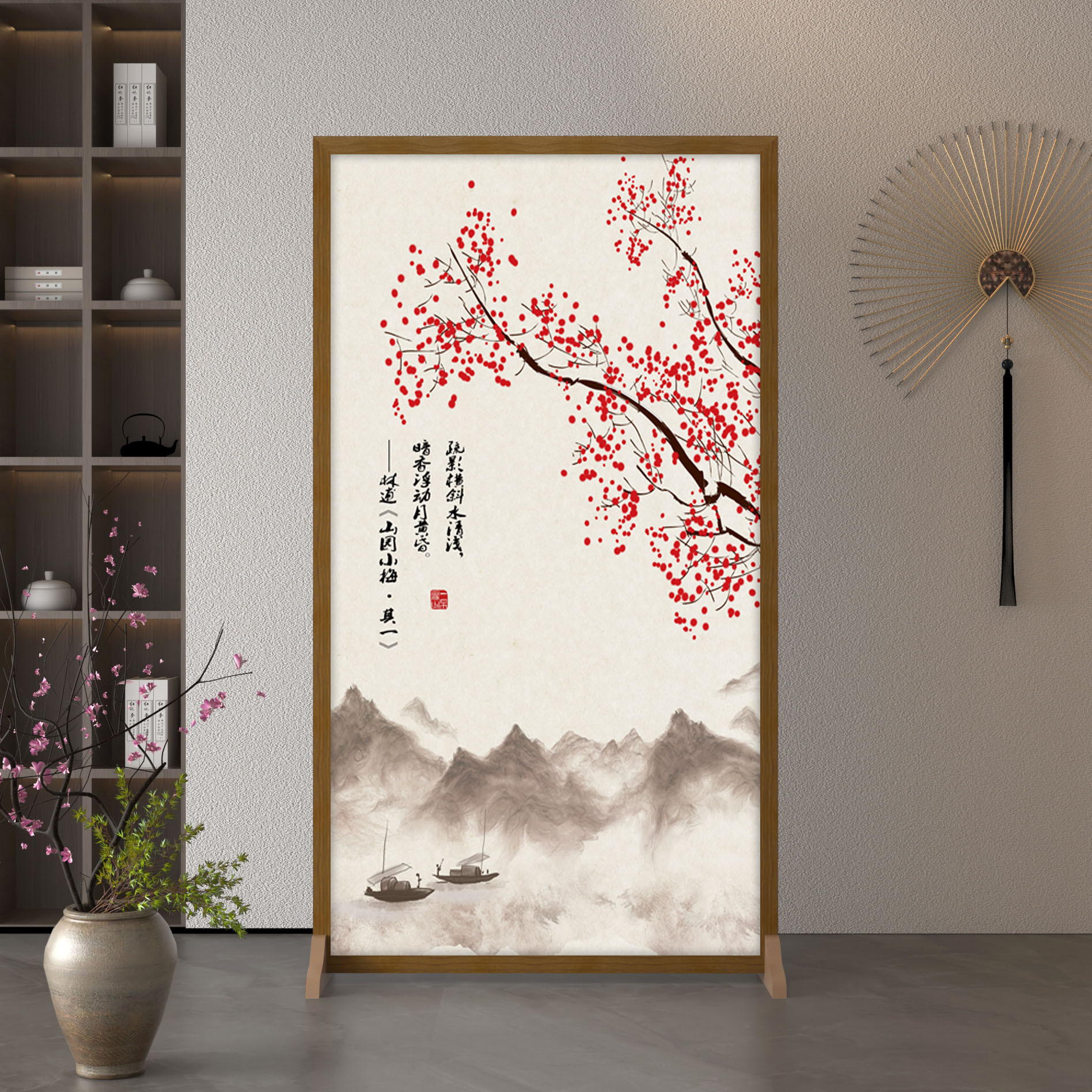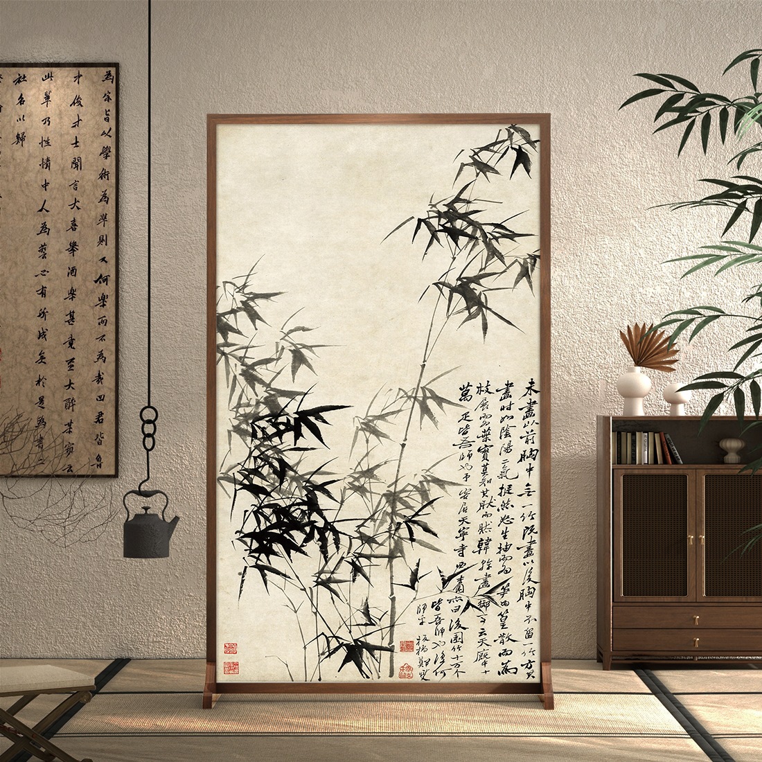 새로운 중국 스타일의 간단한 현대 파티션 입구 패브릭 쉴드 거실 나무 스크린 입구 장식 모바일 스크린스토어 가기