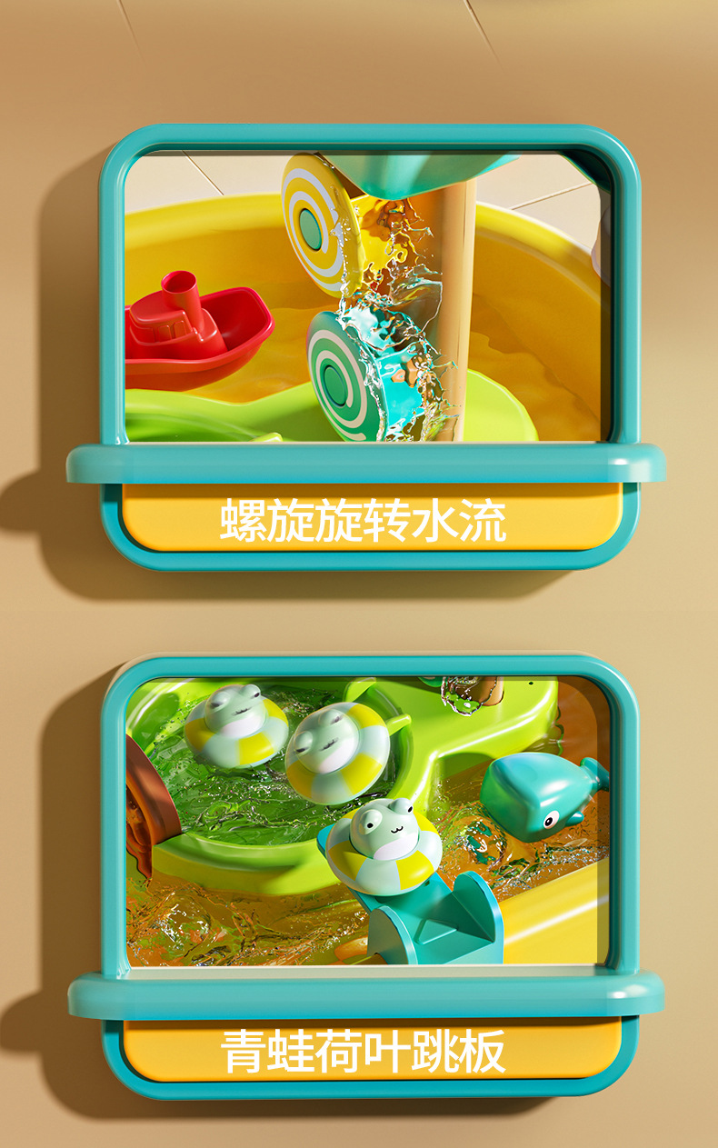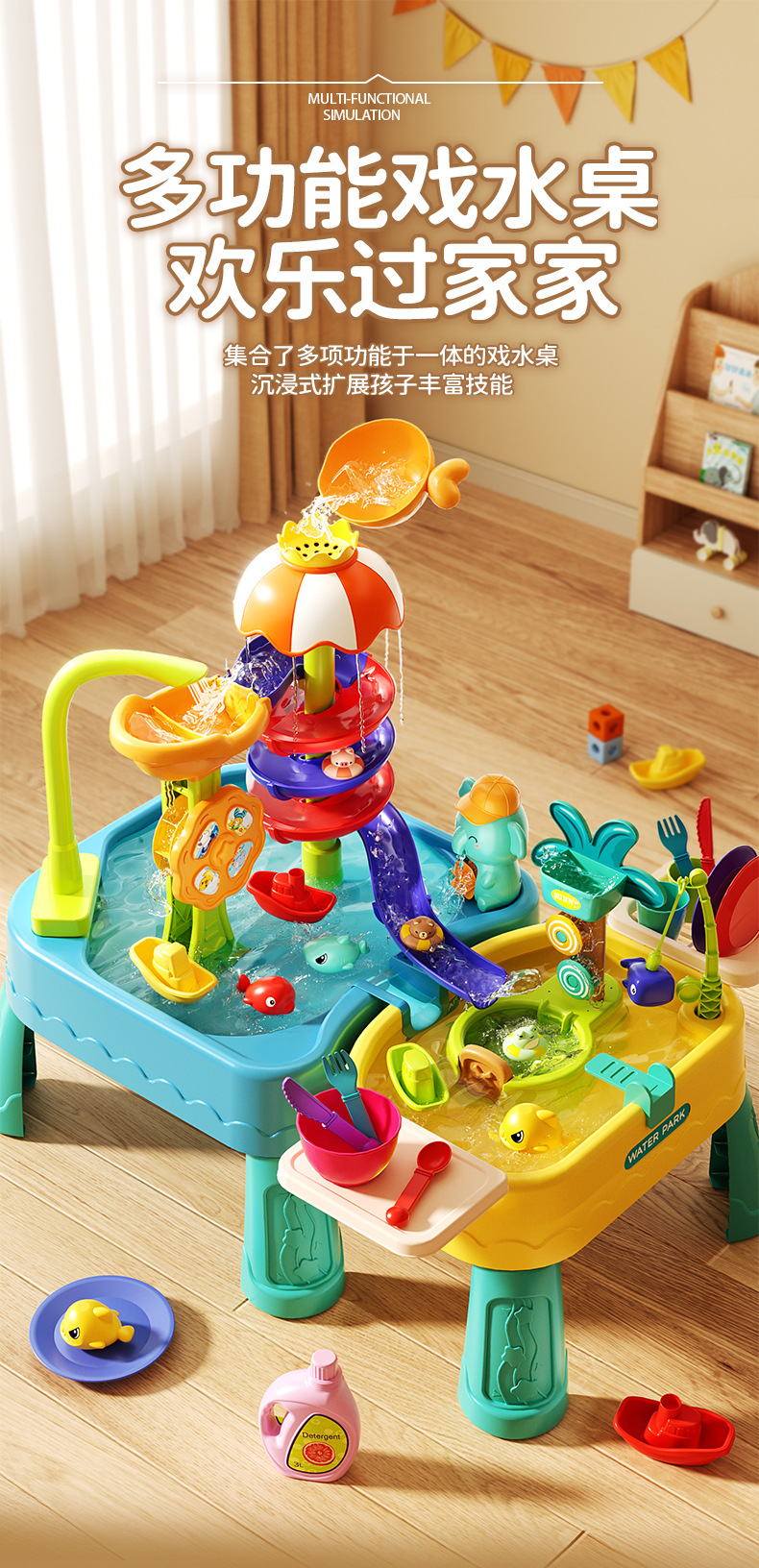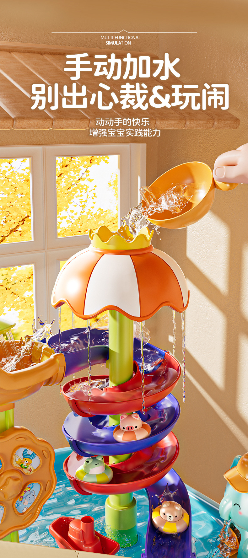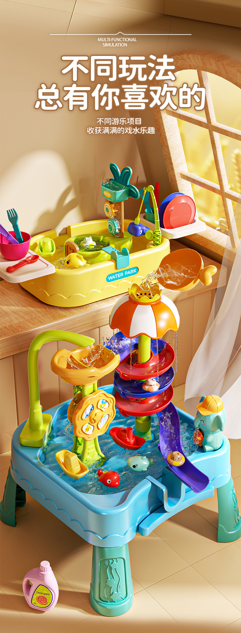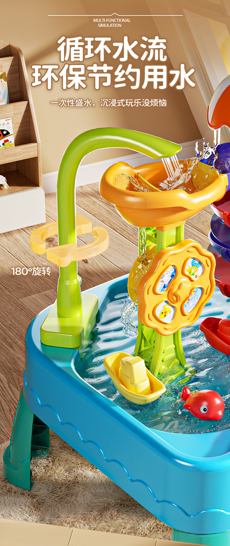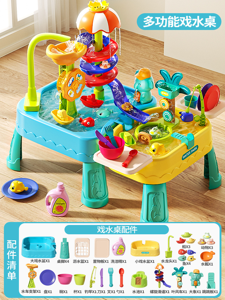 • 초대형 선물 상자 [다기능 물놀이 테이블] 자석 낚시/순환수/회전 슬라이드/보트/식기 세척 보드/작은 동물
