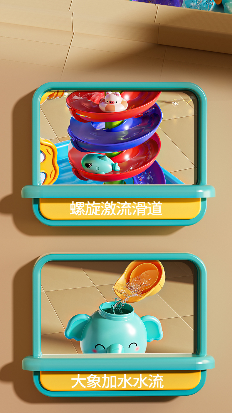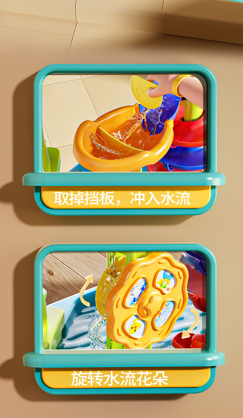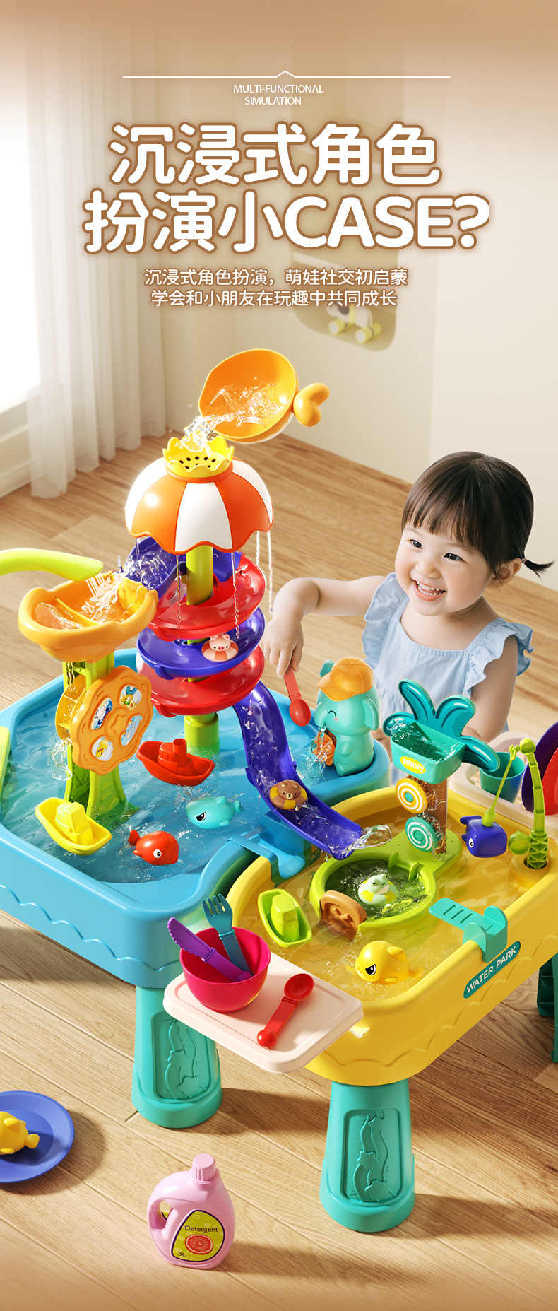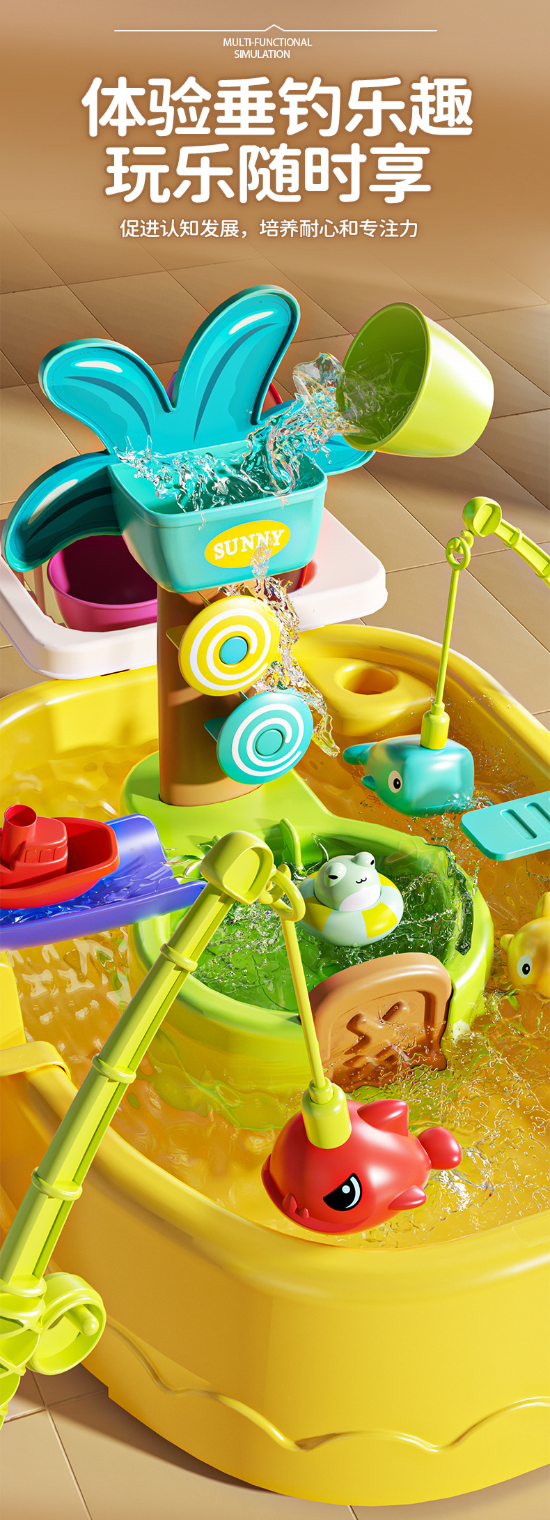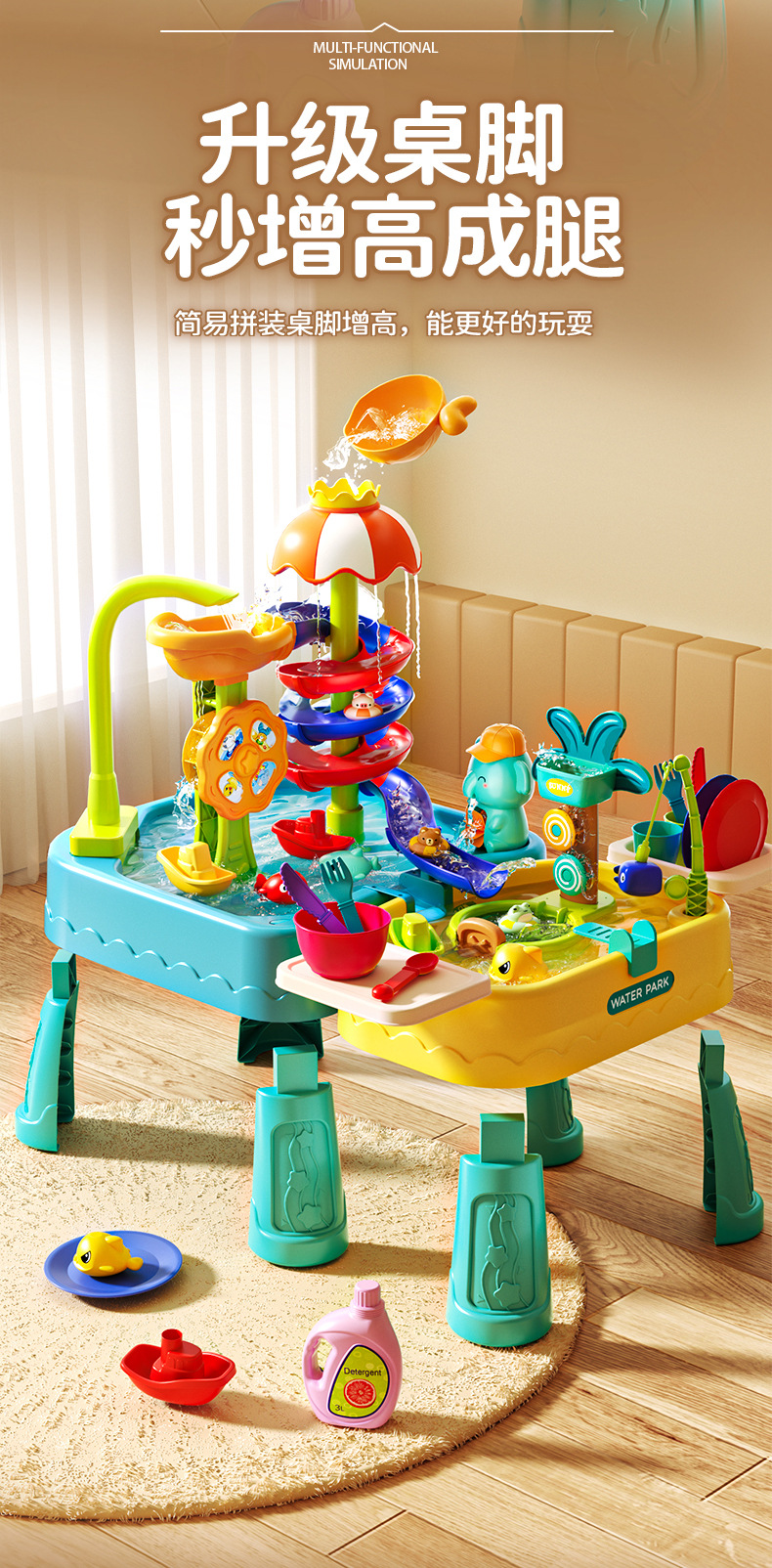 • 초대형 선물 상자 [다기능 물놀이 테이블] 자석 낚시/순환수/회전 슬라이드/보트/식기 세척 보드/작은 동물