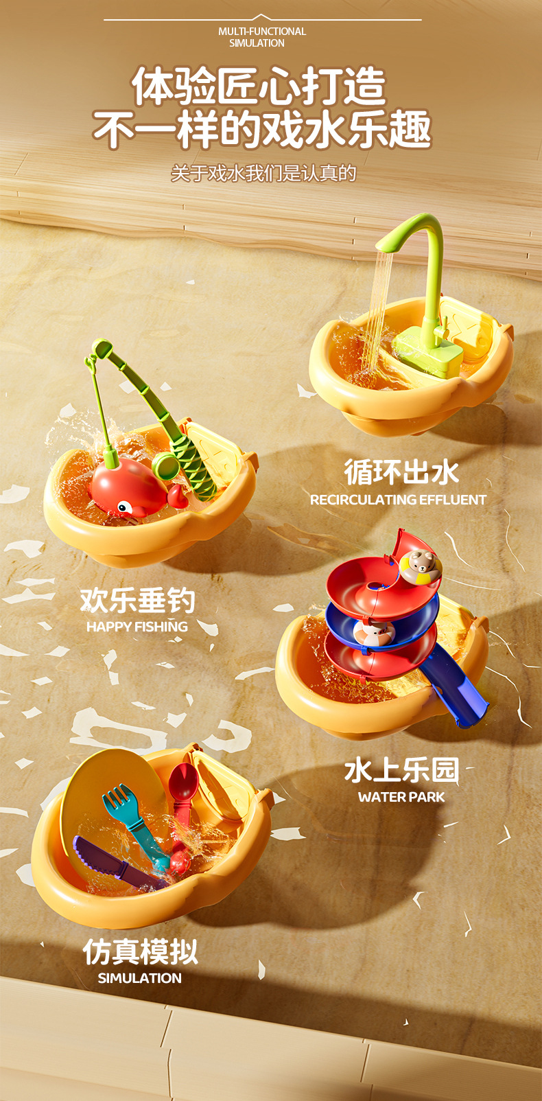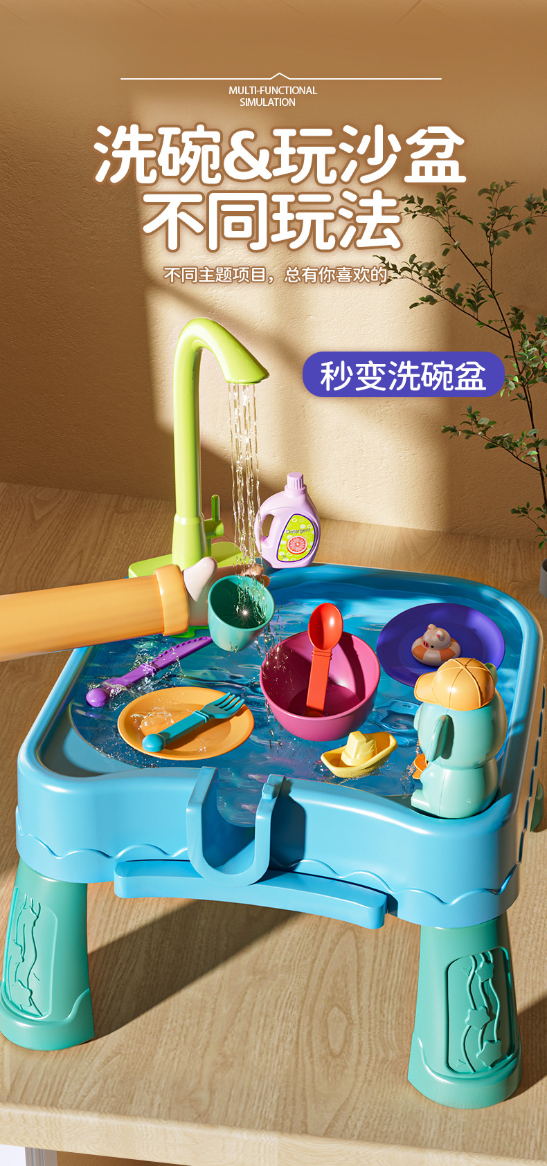 국경 간 어린이 시뮬레이션 스프레이 전기 식기 세척대 순환 물 낚시 플랫폼 주방 식기 세척대 물 장난감