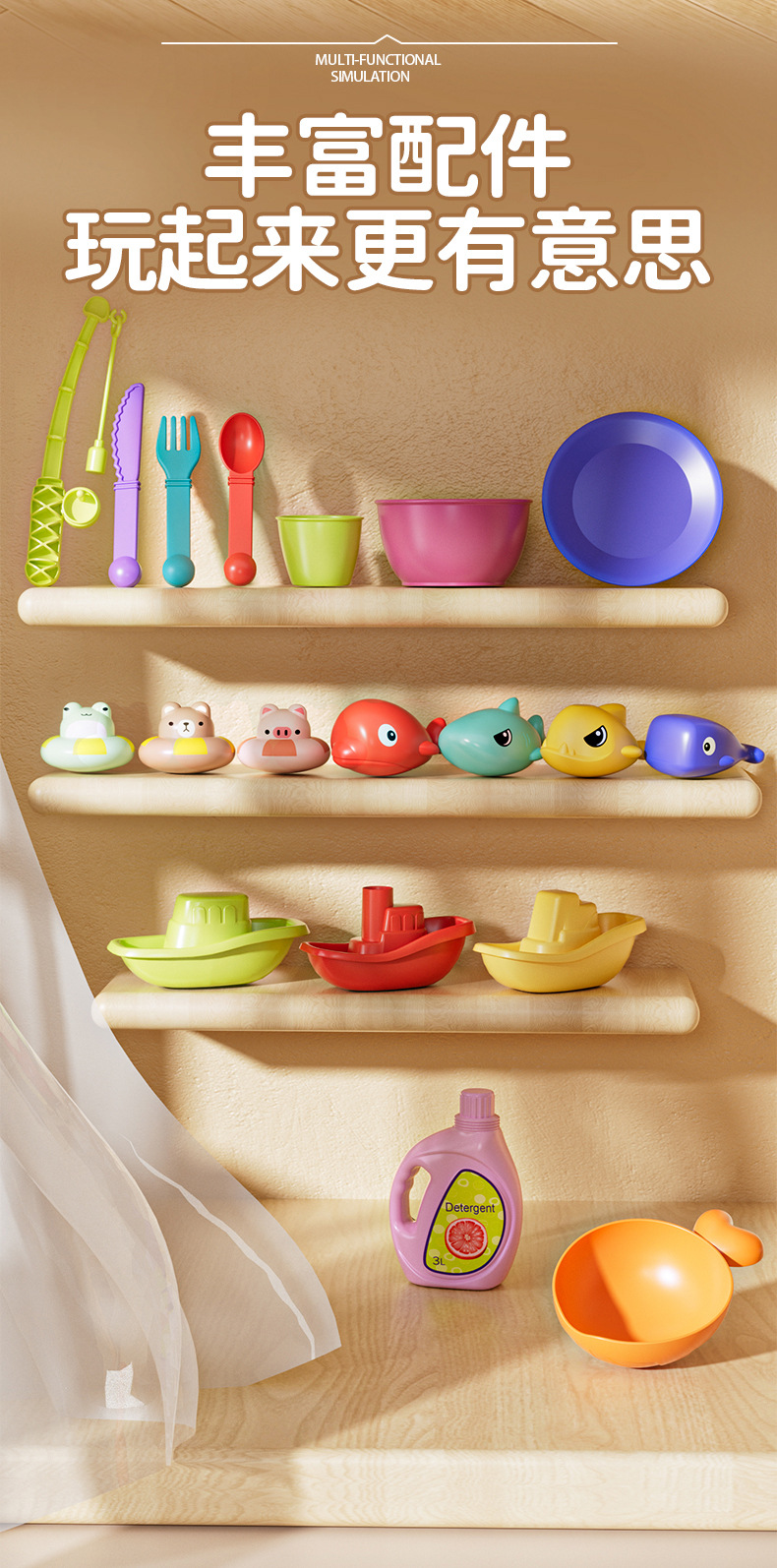 국경 간 어린이 시뮬레이션 스프레이 전기 식기 세척대 순환 물 낚시 플랫폼 주방 식기 세척대 물 장난감스토어 가기