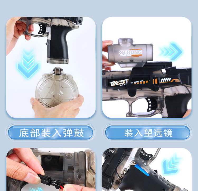 • 아이스 블래스트 블랙 워터건 [충전식 리튬 배터리 + 연동 리로딩 + 라이트]