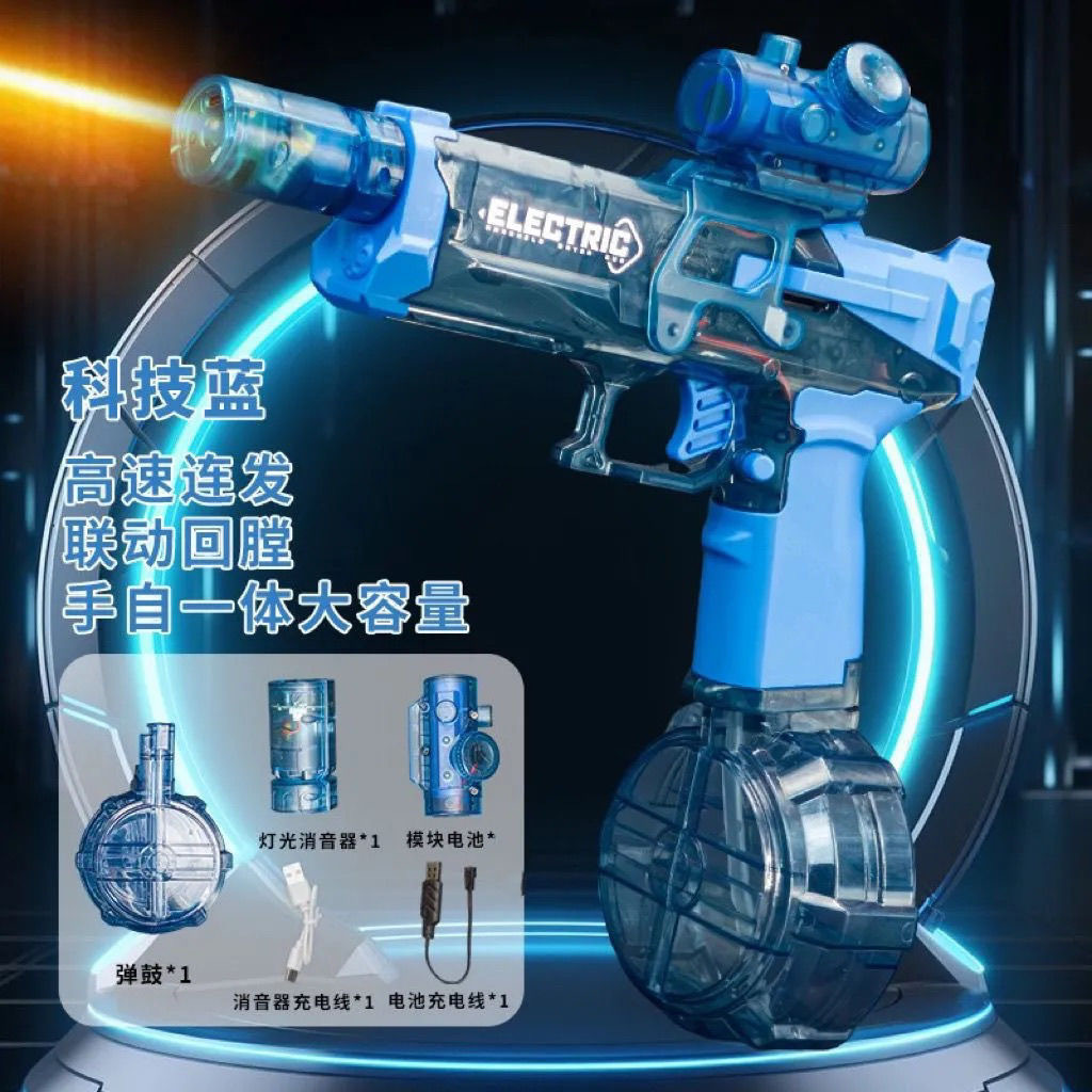 2025 새로운 얼음 쥐 전기 버스트 물총, 빛 효과가있는 장거리 대용량 어린이 장난감 물총