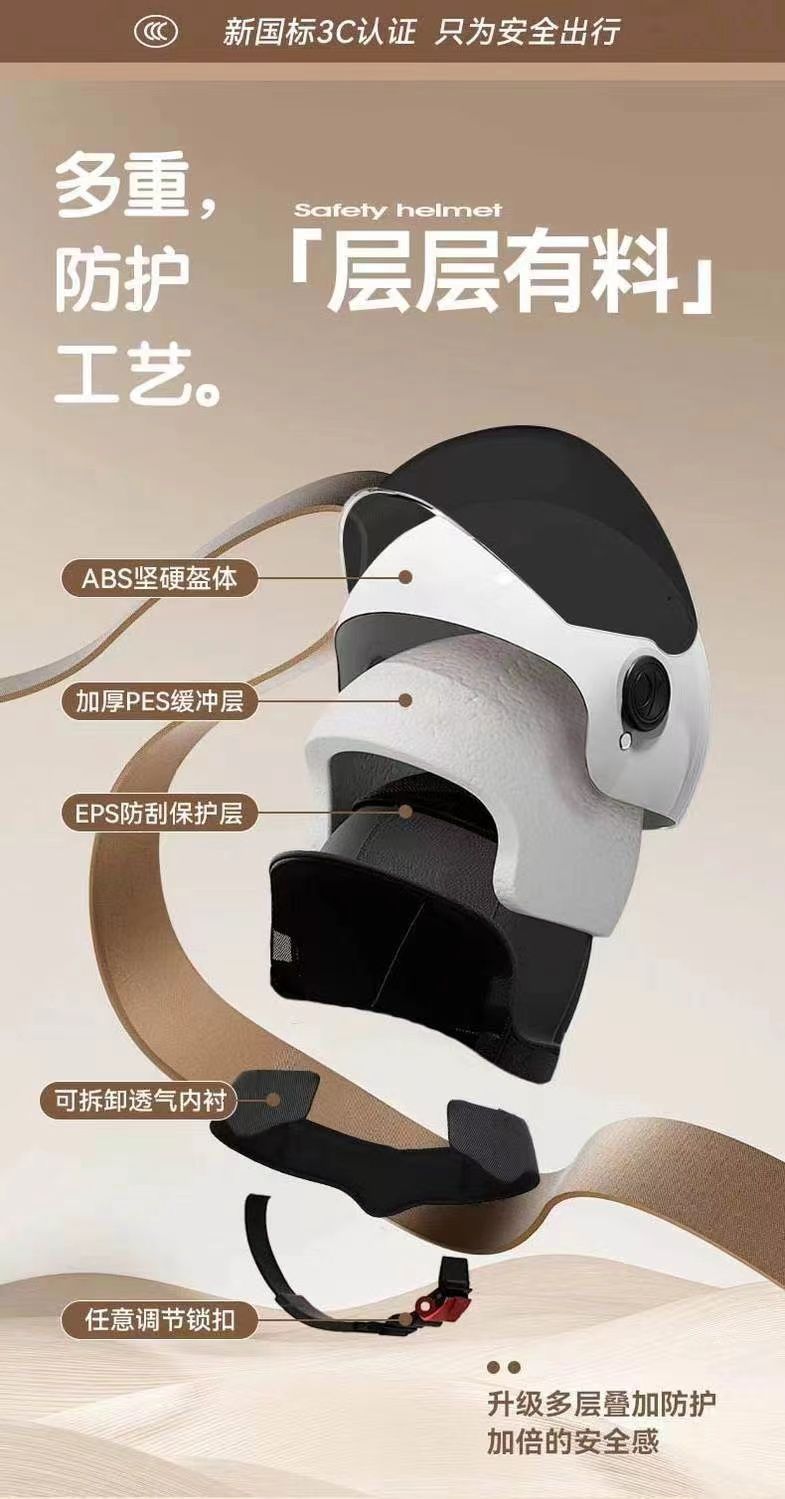 3c 인증 새로운 국가 표준 전기 자동차 헬멧, 가볍고 편안하며 자외선 차단 및 낙하 방지, 남녀 공통 여름 통기성 안전 헬멧
