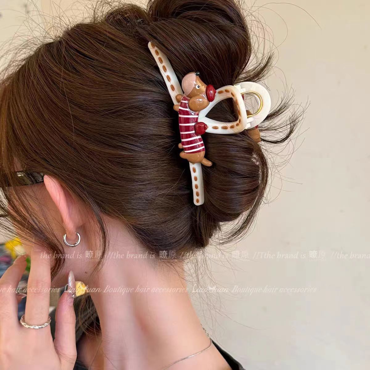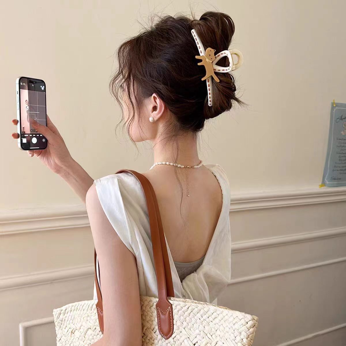 너무 귀여워요~ 니치 디자인 한국식 대형 집게핀, 고급스러운 머리핀, 뒷머리용 샤크핀, 우아한 머리핀