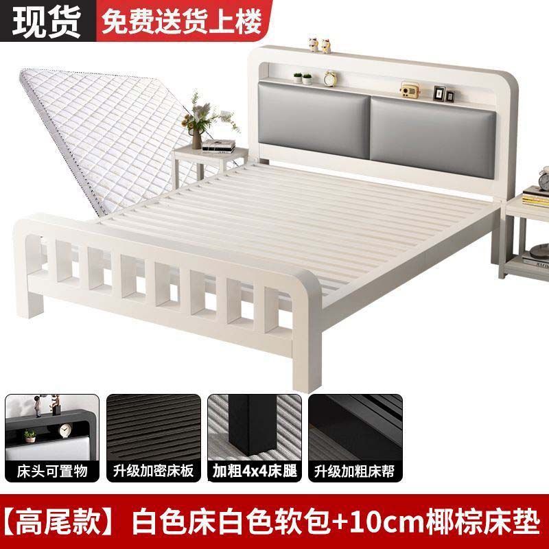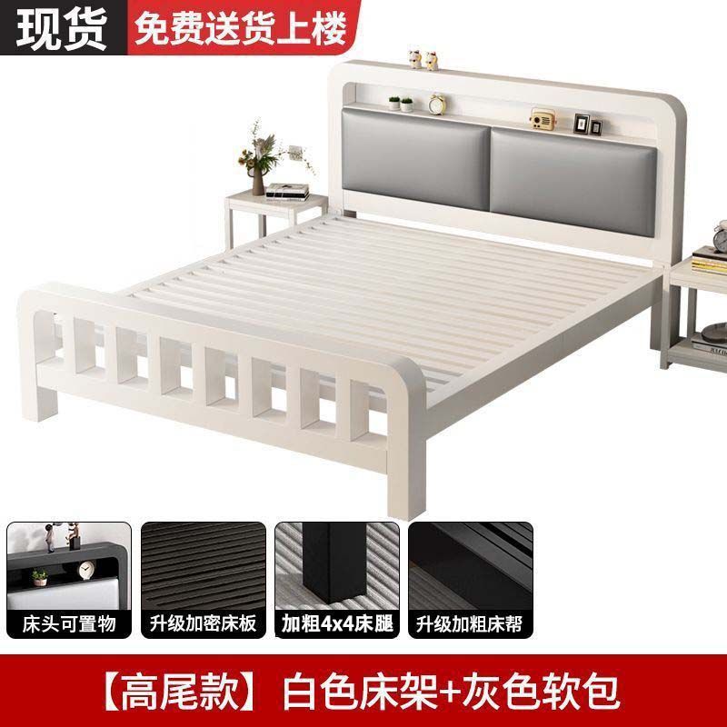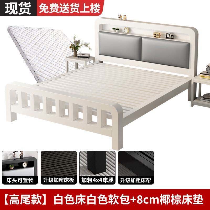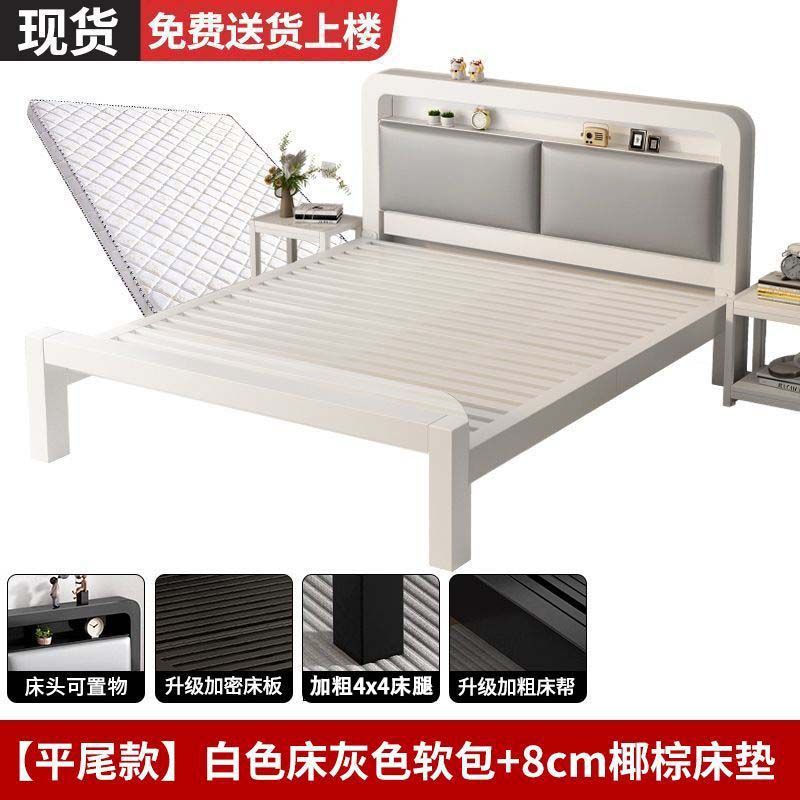 • 하이엔드 모델 - 화이트 네이키드 침대 + 매트리스 8cm개(두꺼운 회색 소프트 등받이)