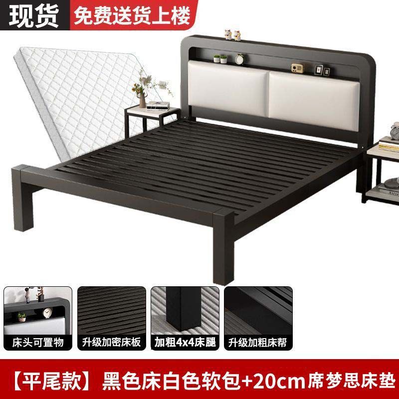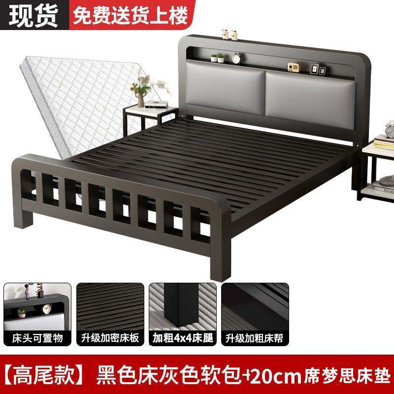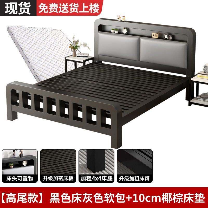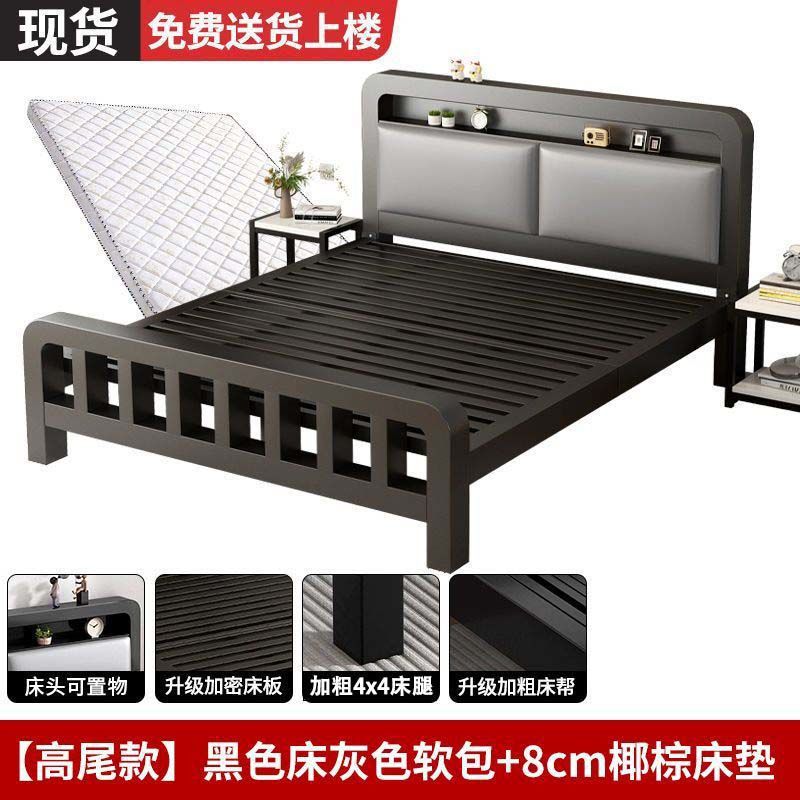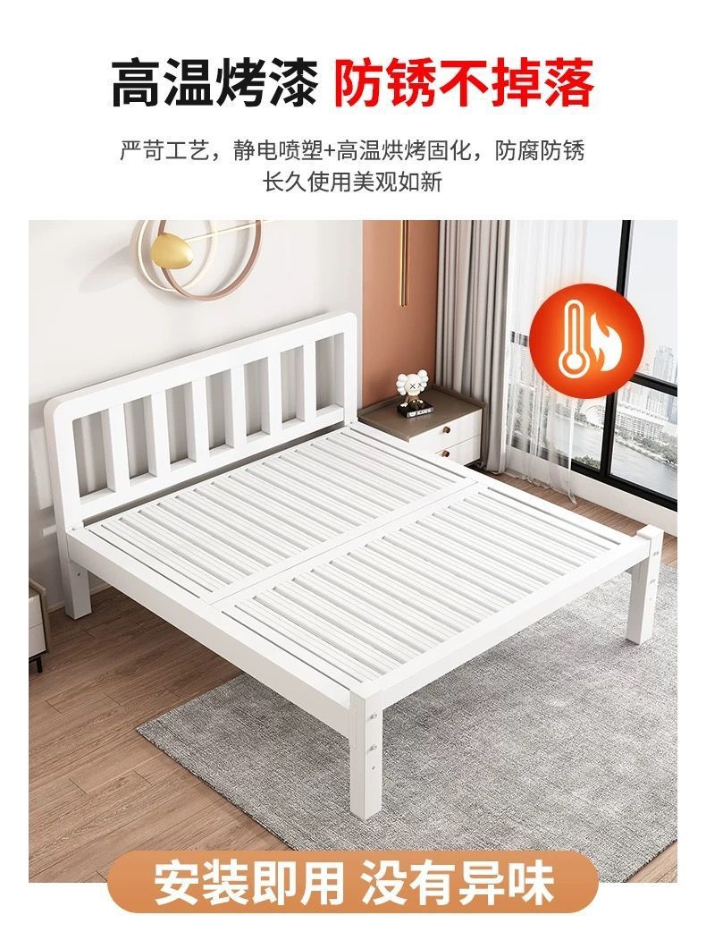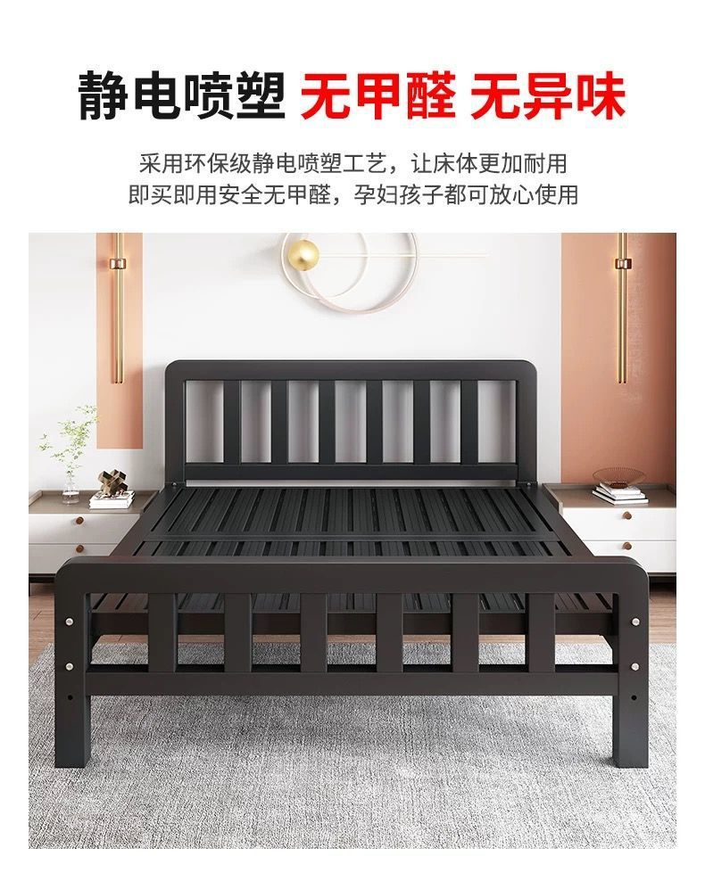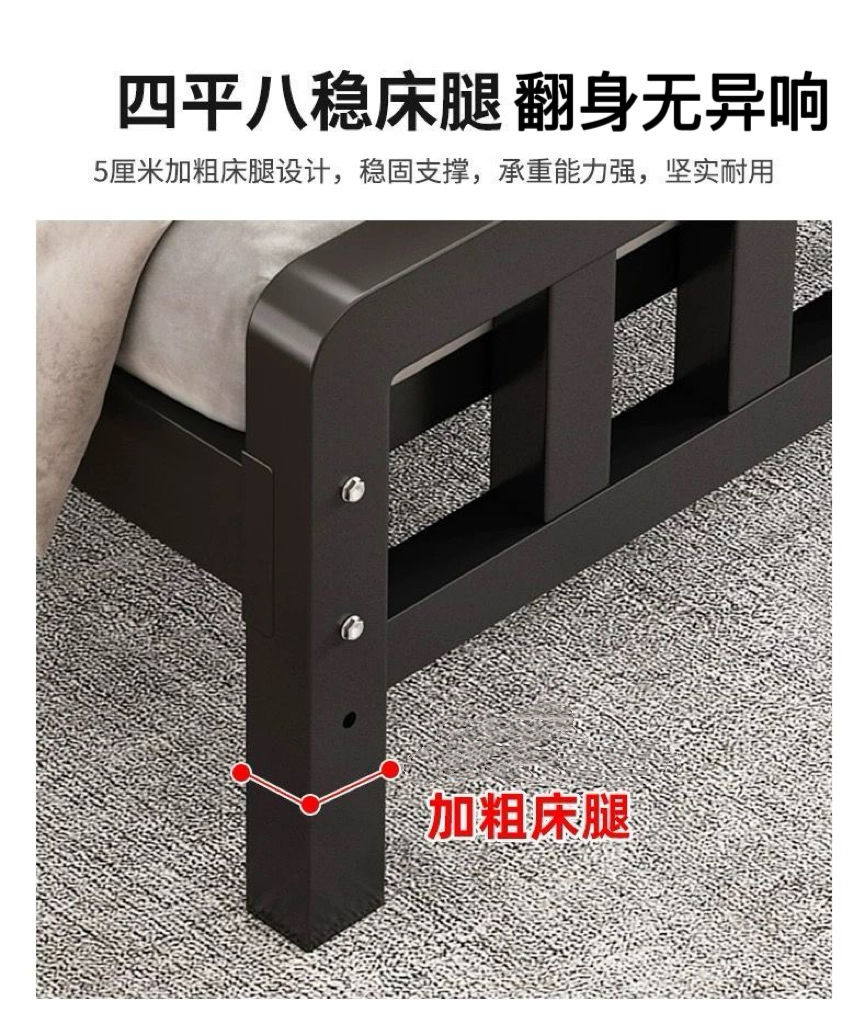 유럽식 철제 침대 1.8m 강화 및 두꺼운 더블 침대 1m 가정용 싱글 침대 스테인레스 스틸 임대 주택 철제 프레임 침대스토어 가기