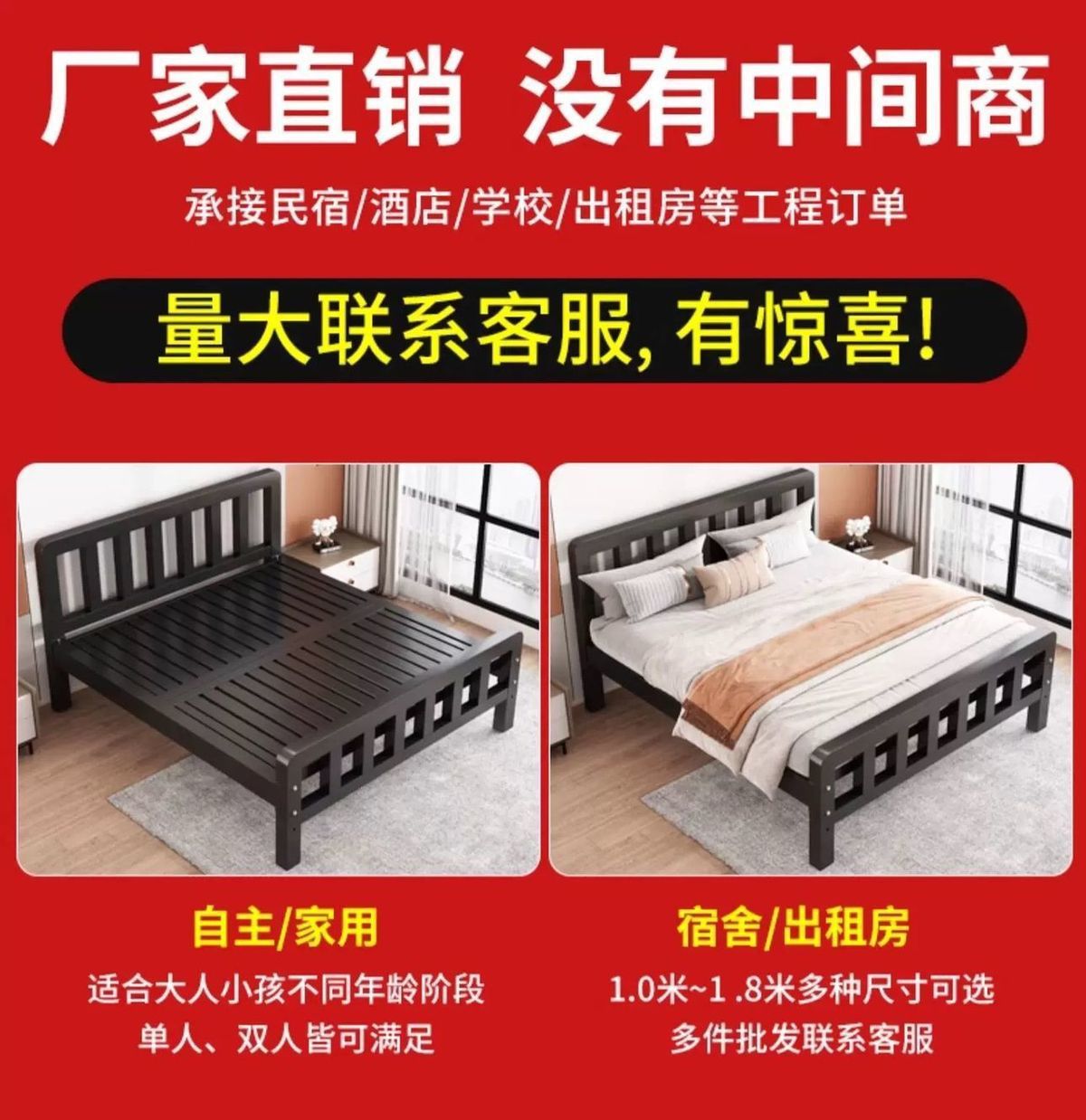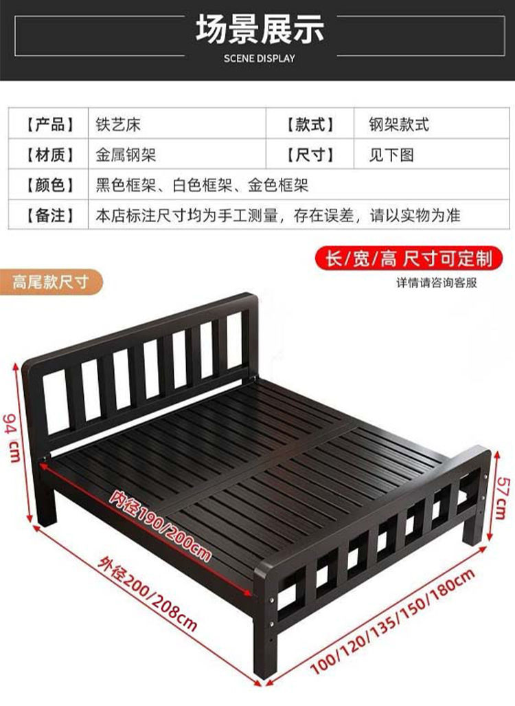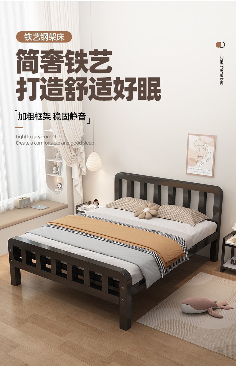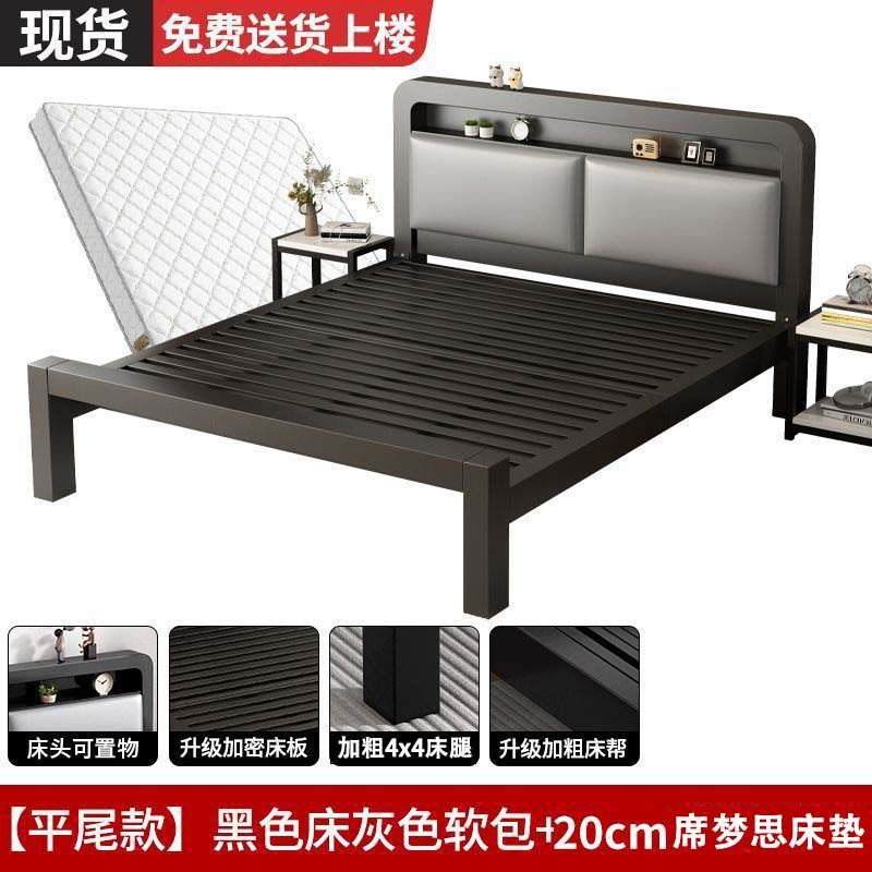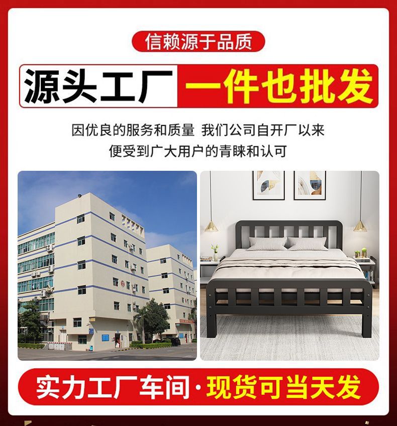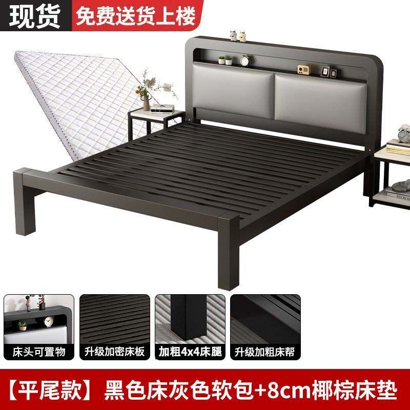 유럽식 철제 침대 1.8m 강화 및 두꺼운 더블 침대 1m 가정용 싱글 침대 스테인레스 스틸 임대 주택 철제 프레임 침대스토어 가기