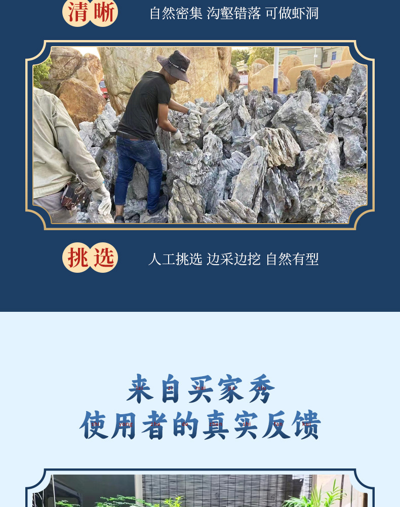 고급 청룡석 장형 조경석 산성 처리된 암석 원석 장식 물고기 연못 생태 수조 조경 재료 Yingde