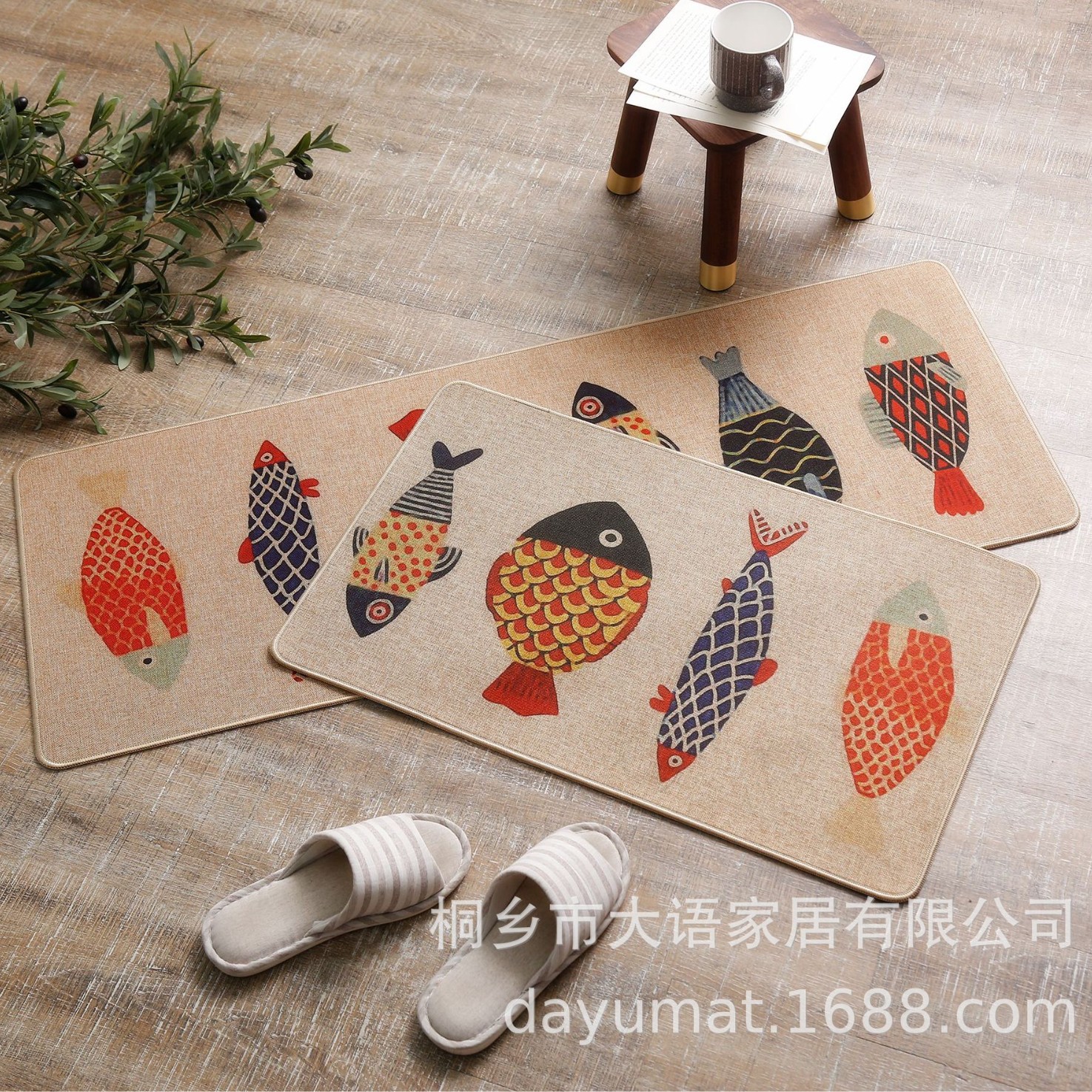 린넨 바닥 매트 고무 미끄럼 방지 만화 흡수성 가정용 천연 바닥 카펫 주방 미끄럼 방지 린넨 흡수성 바닥 매트스토어 가기