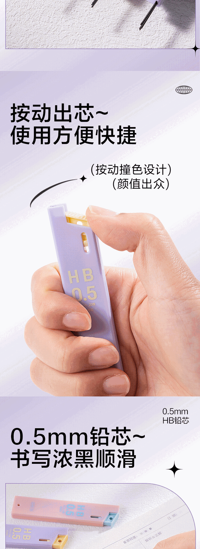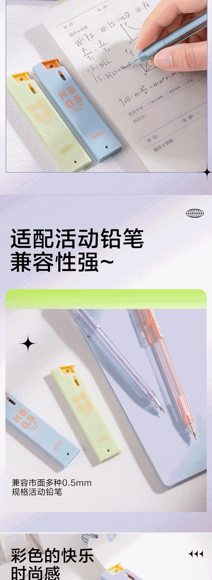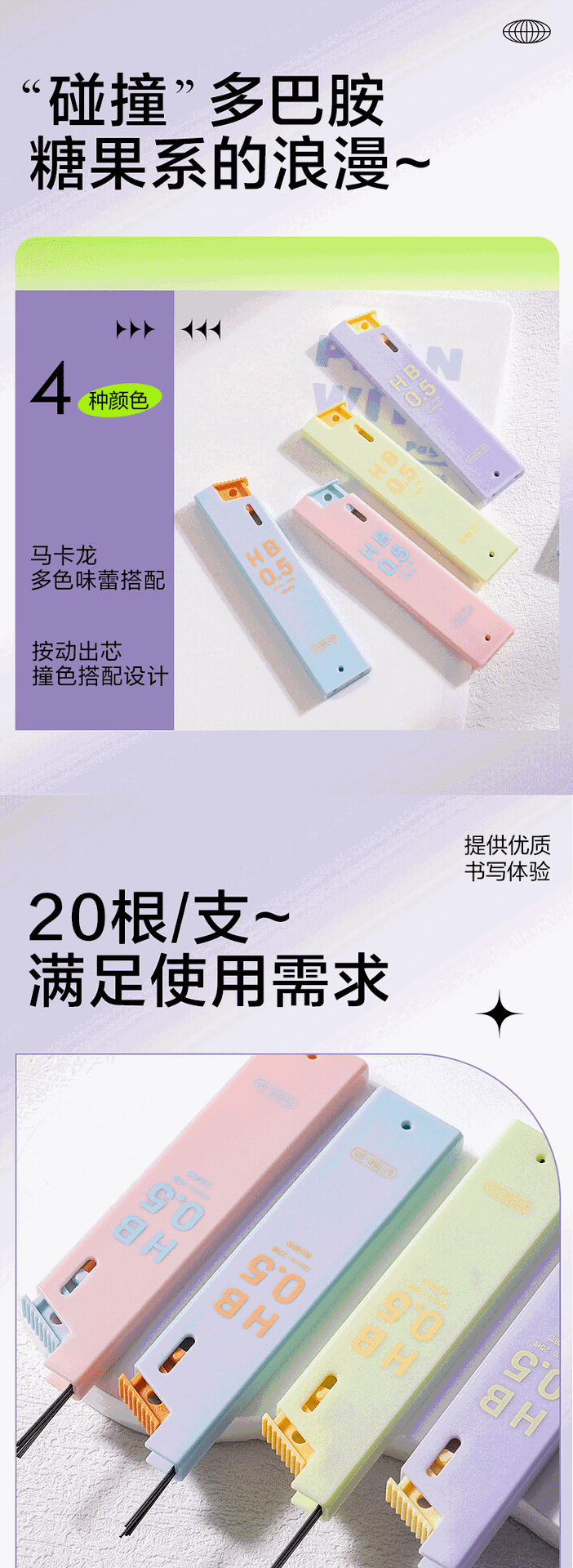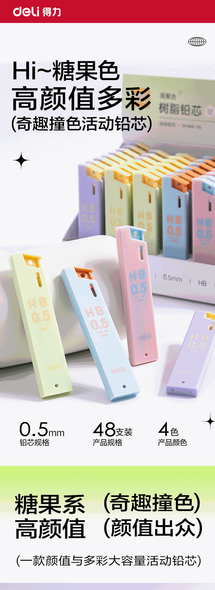 델리 SH188 재미있는 배색 활동용 연필심 0.5mm 자동 연필 리필 HB 연필심스토어 가기