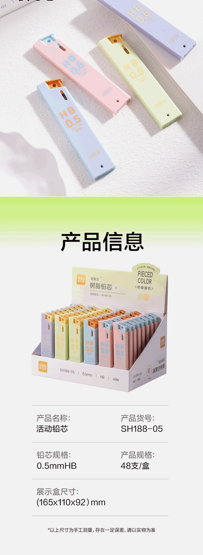 델리 SH188 재미있는 배색 활동용 연필심 0.5mm 자동 연필 리필 HB 연필심