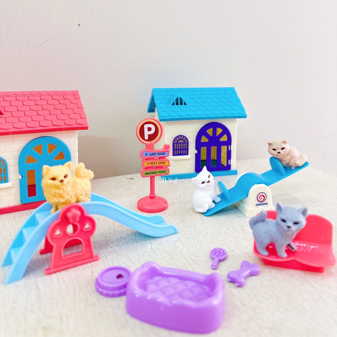 어린이 애완 동물 장난감 놀이 집 장면 미니 귀여운 강아지와 새끼 고양이 3~6세 어린이를 위한 선물스토어 가기