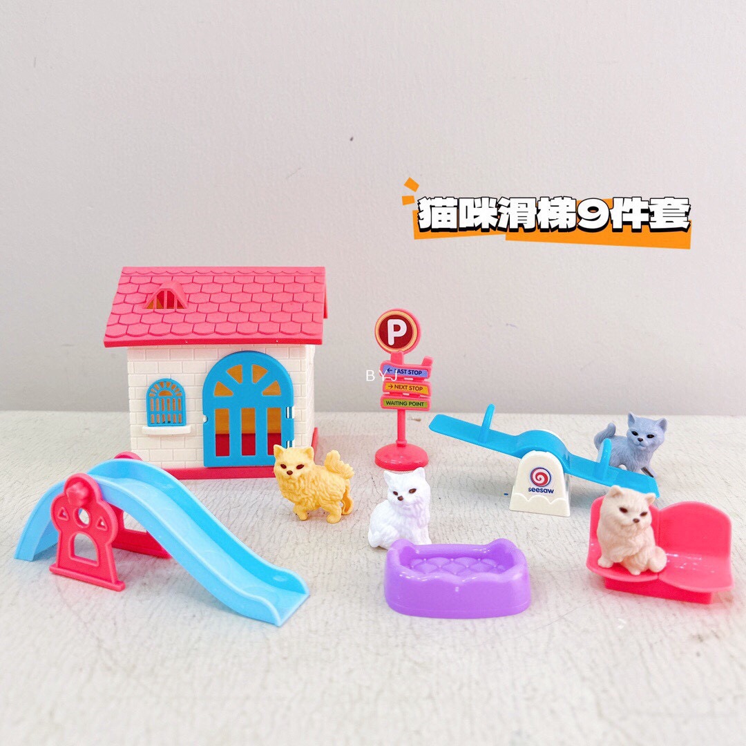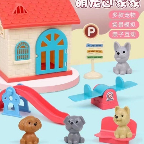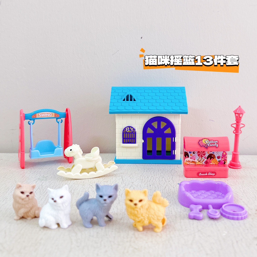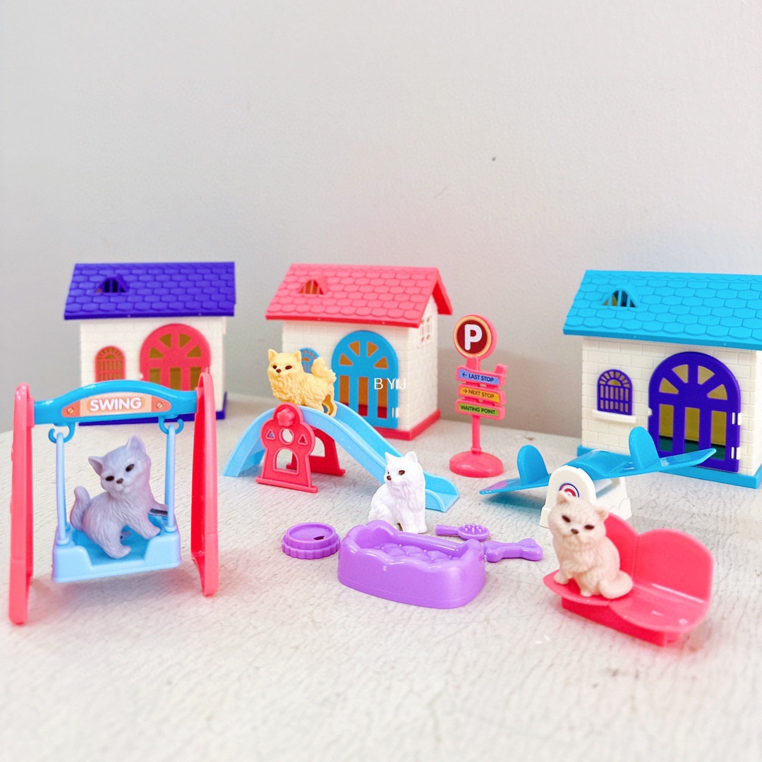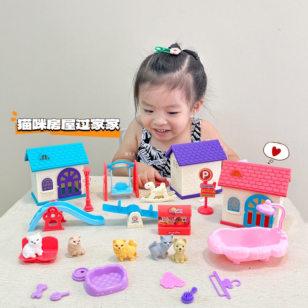 어린이 애완 동물 장난감 놀이 집 장면 미니 귀여운 강아지와 새끼 고양이 3~6세 어린이를 위한 선물