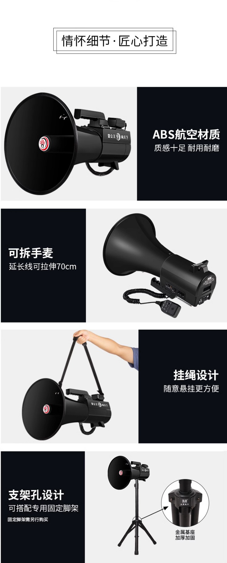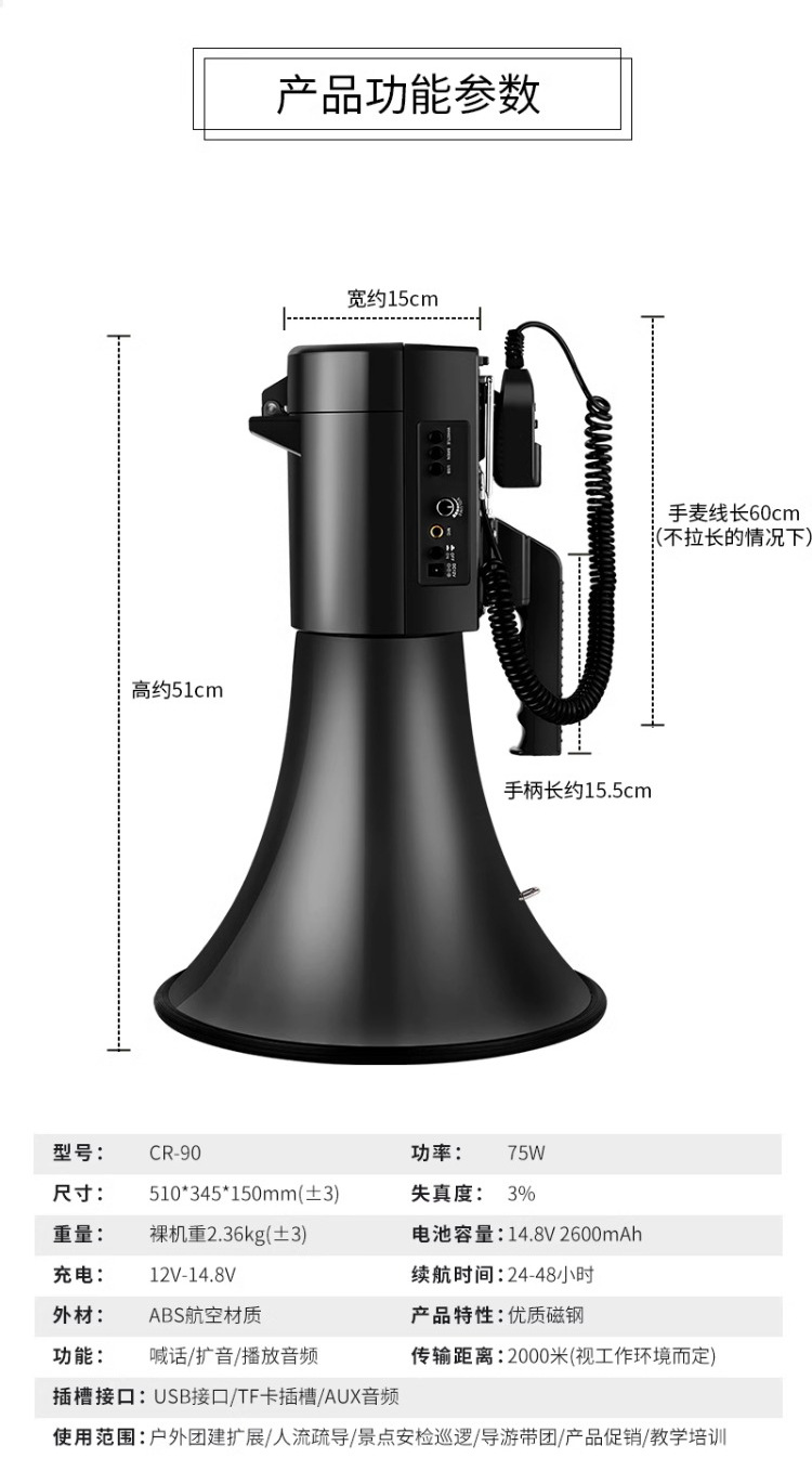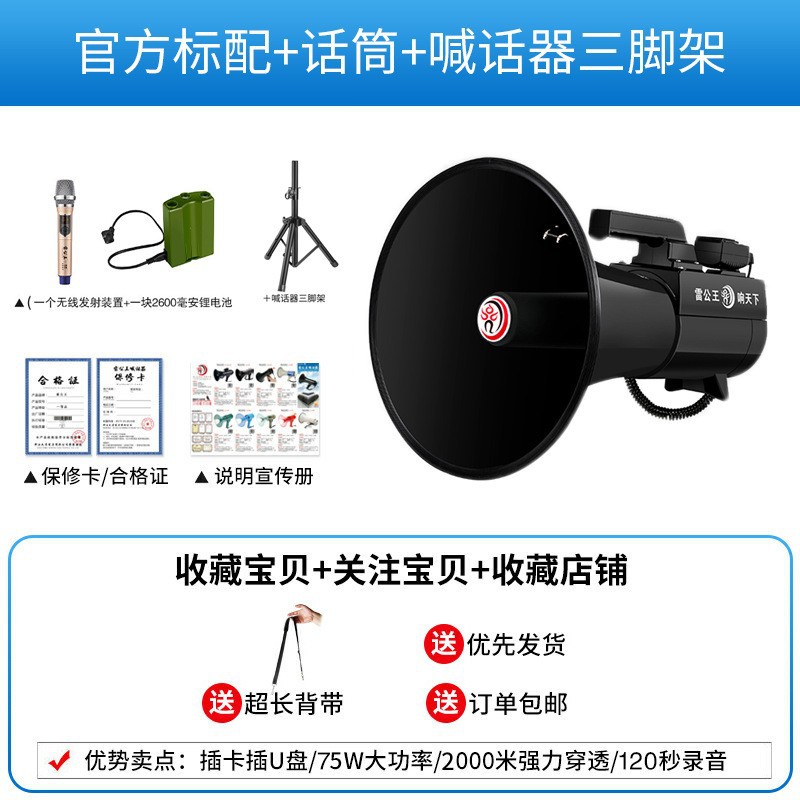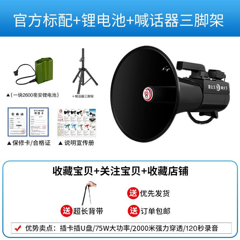 Thunder King CR-90 휴대용 메가폰 75W 고출력 휴대용 메가폰 무선 충전식 녹음 메가폰
