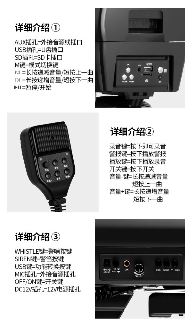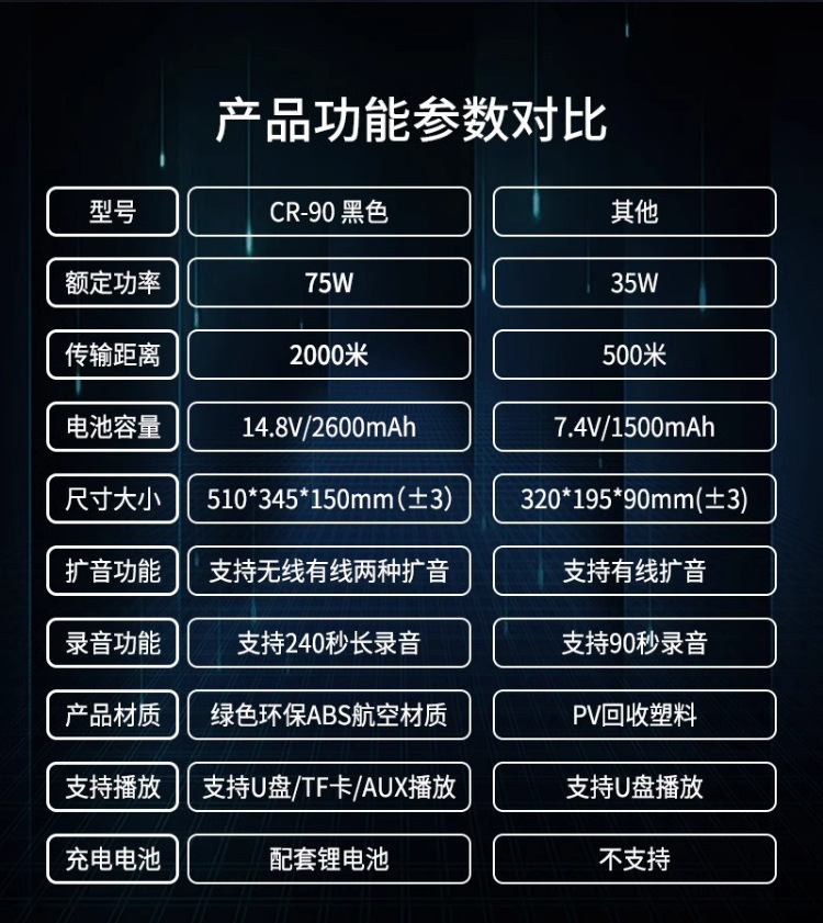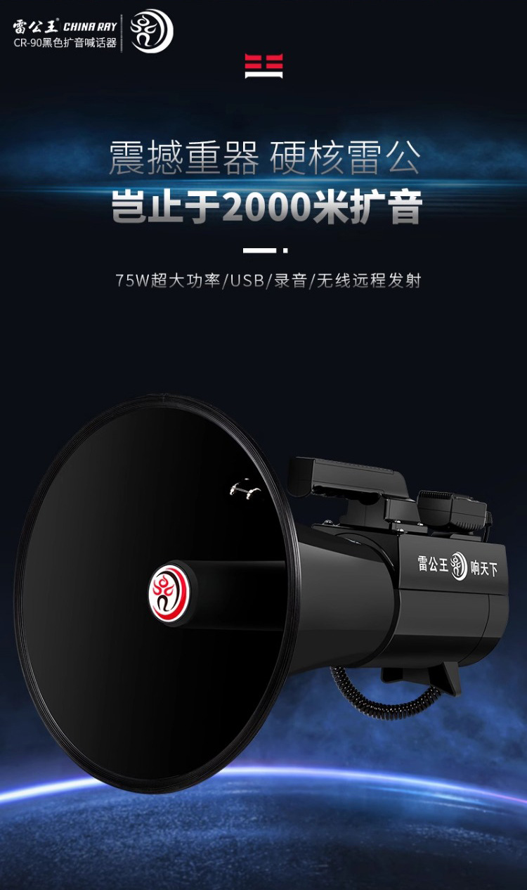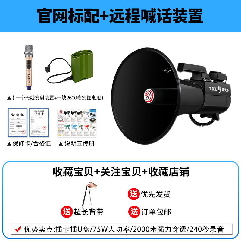Thunder King CR-90 휴대용 메가폰 75W 고출력 휴대용 메가폰 무선 충전식 녹음 메가폰