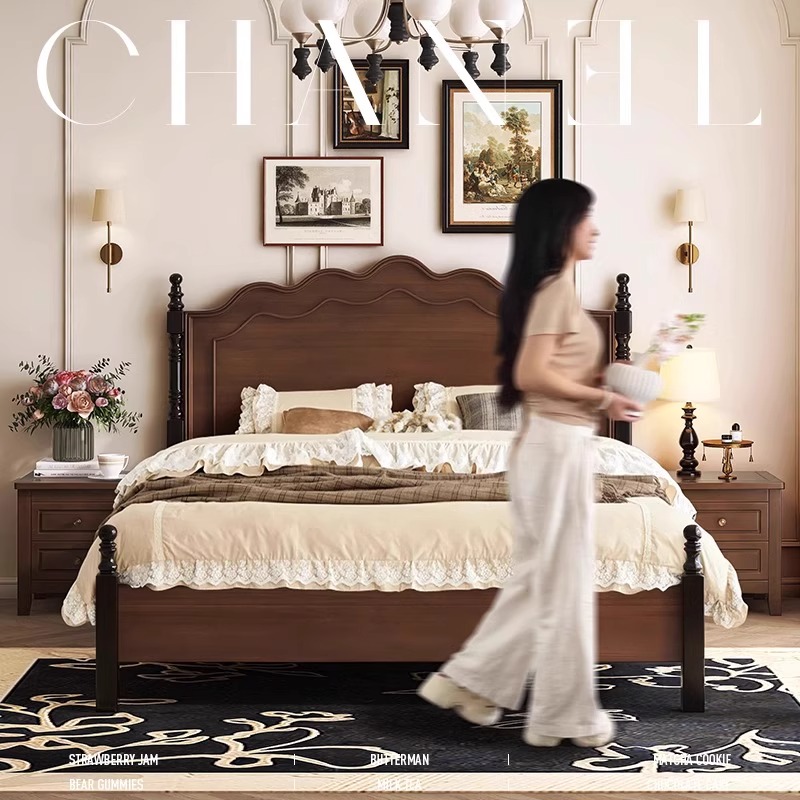 미국식 원목 침대, 모던하고 심플한 1.5m 더블 침대, 1.8m 중고 침대, 복고풍 프렌치 침대, 마스터 침실, 가벼운 럭셔리 웨딩 침대
