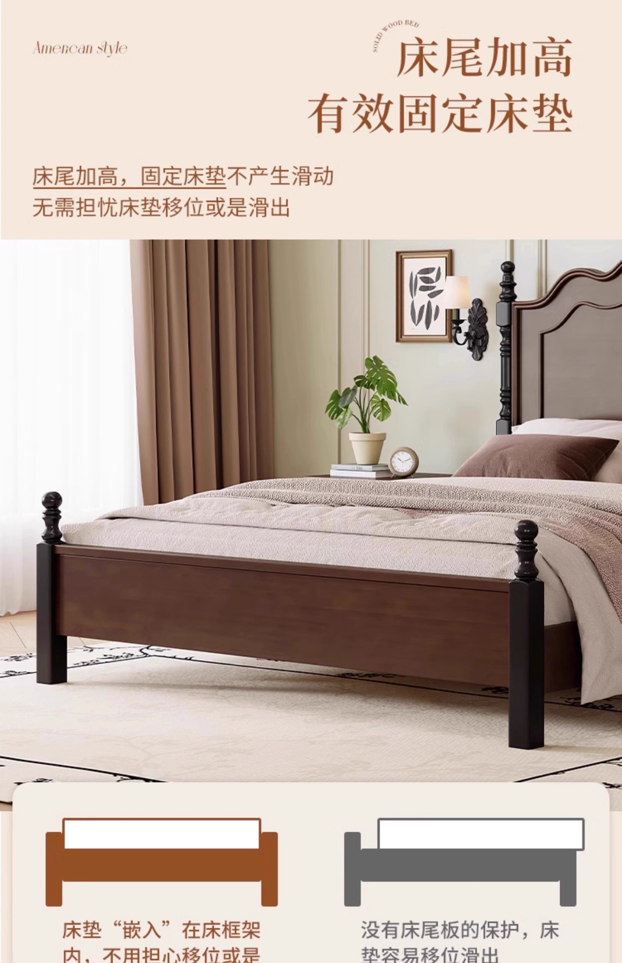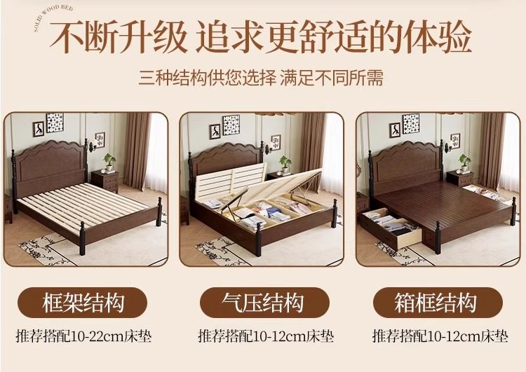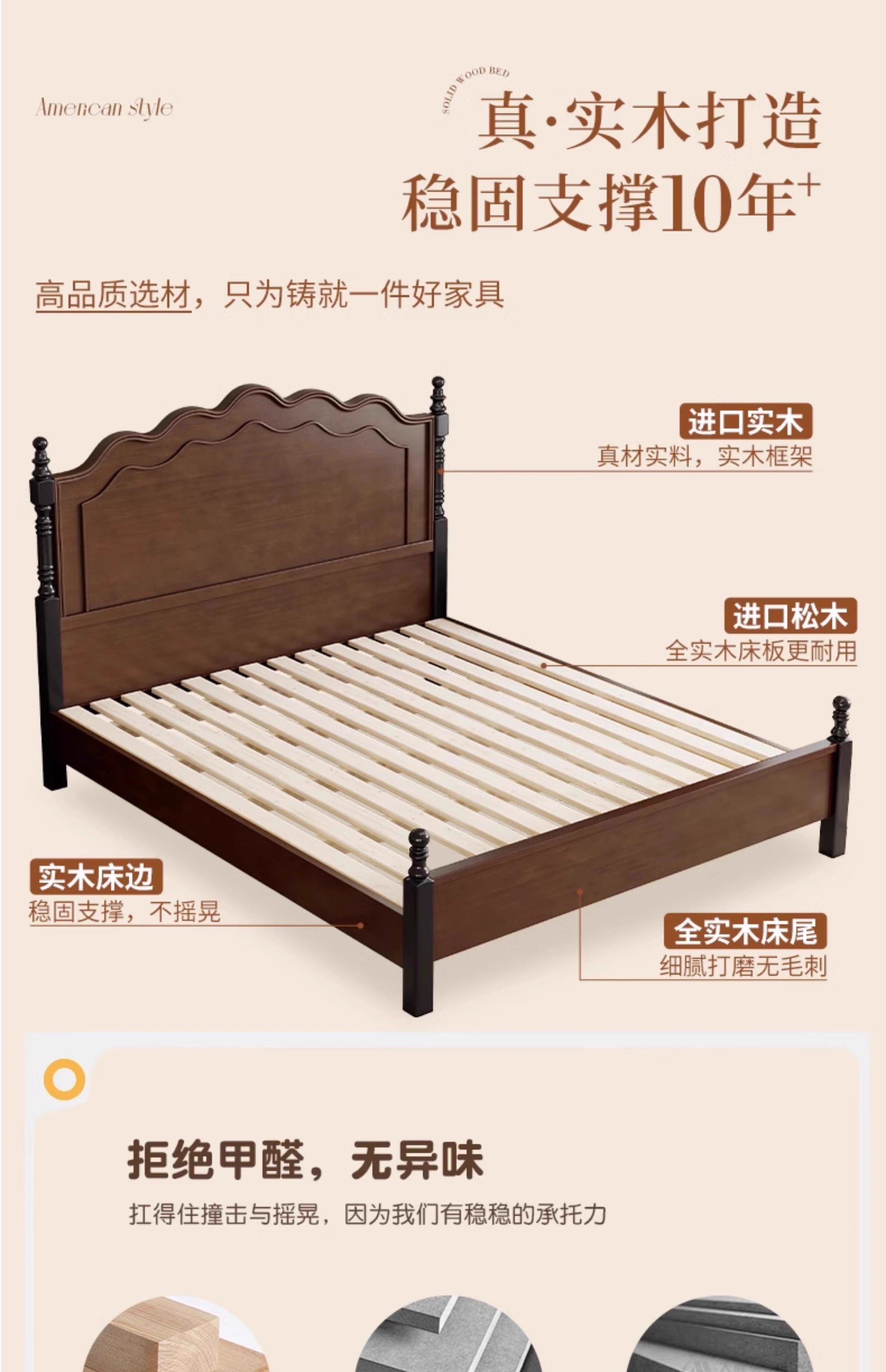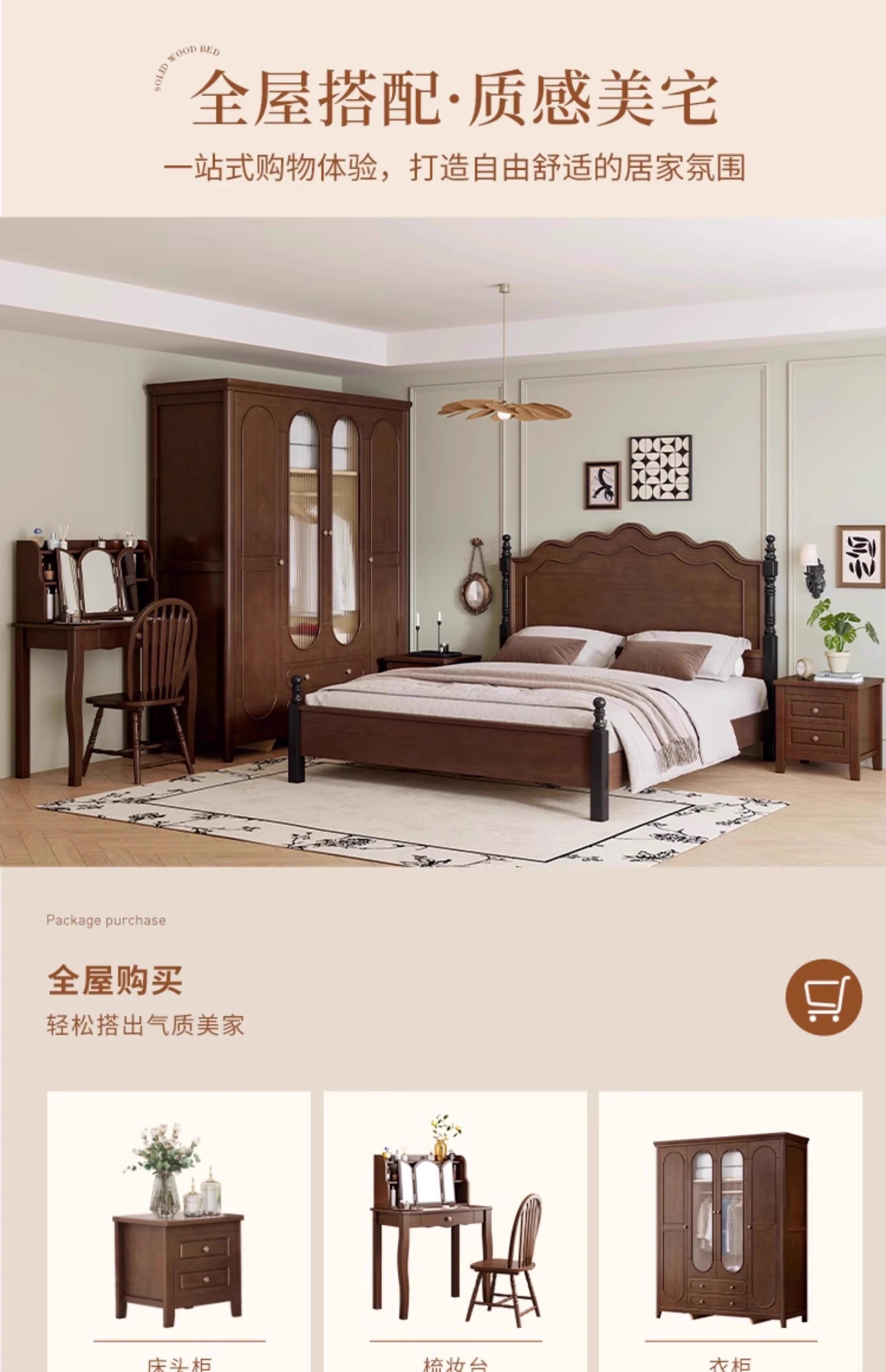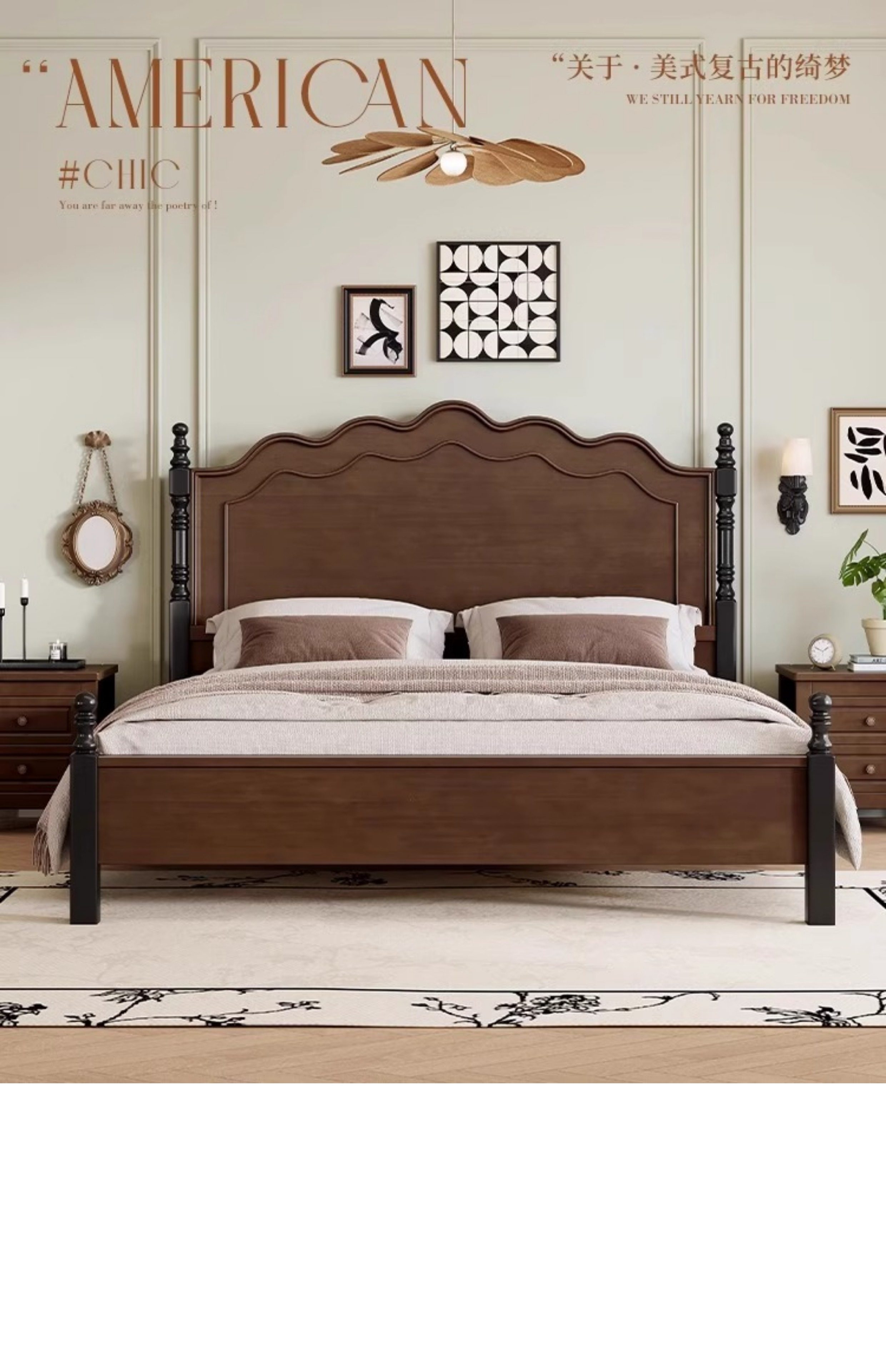 미국식 원목 침대, 모던하고 심플한 1.5m 더블 침대, 1.8m 중고 침대, 복고풍 프렌치 침대, 마스터 침실, 가벼운 럭셔리 웨딩 침대스토어 가기