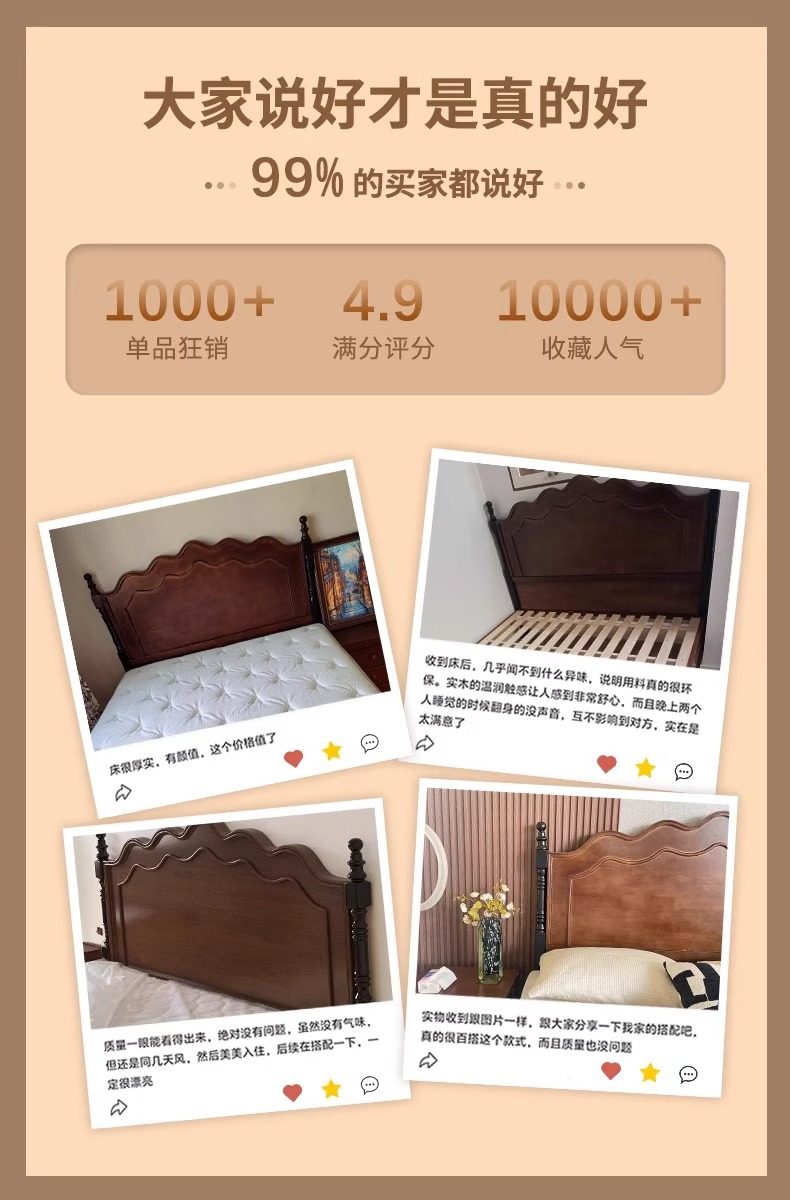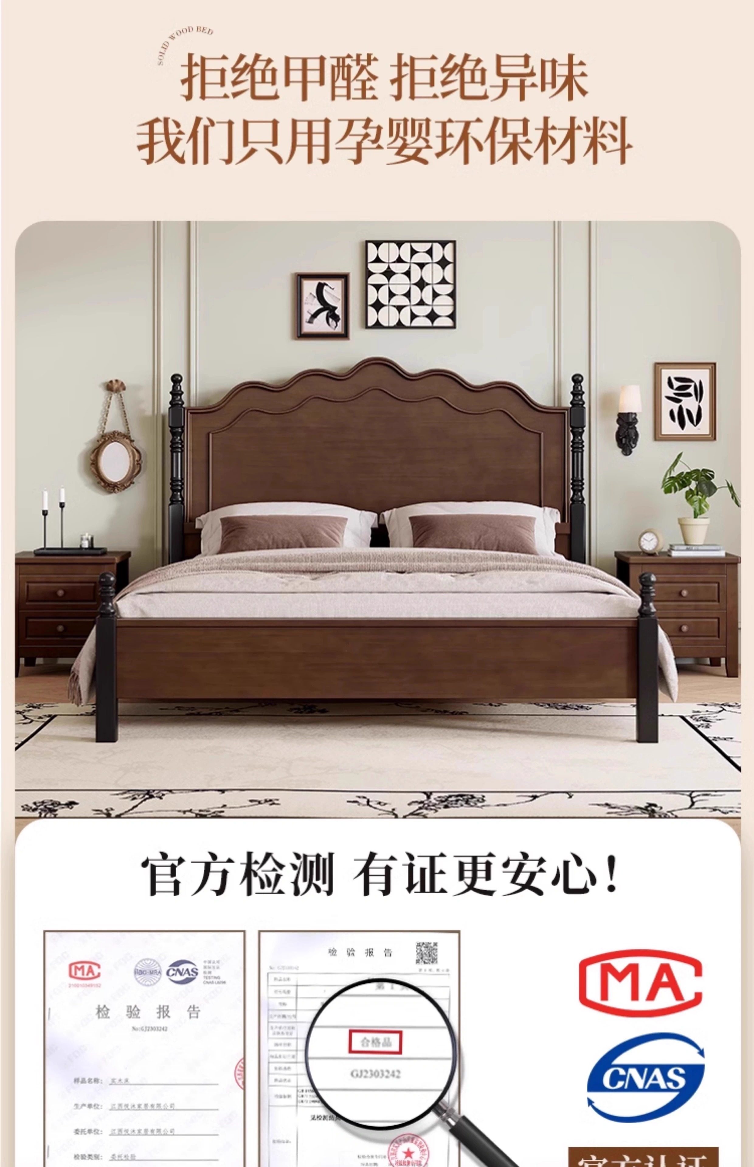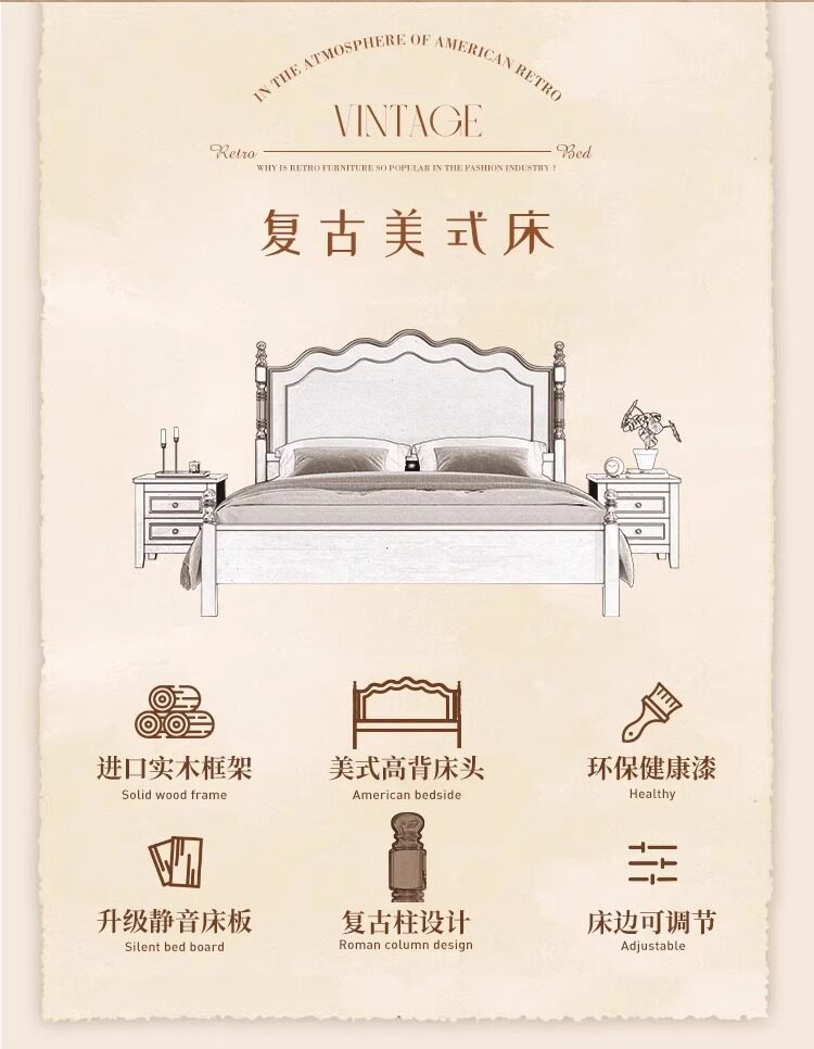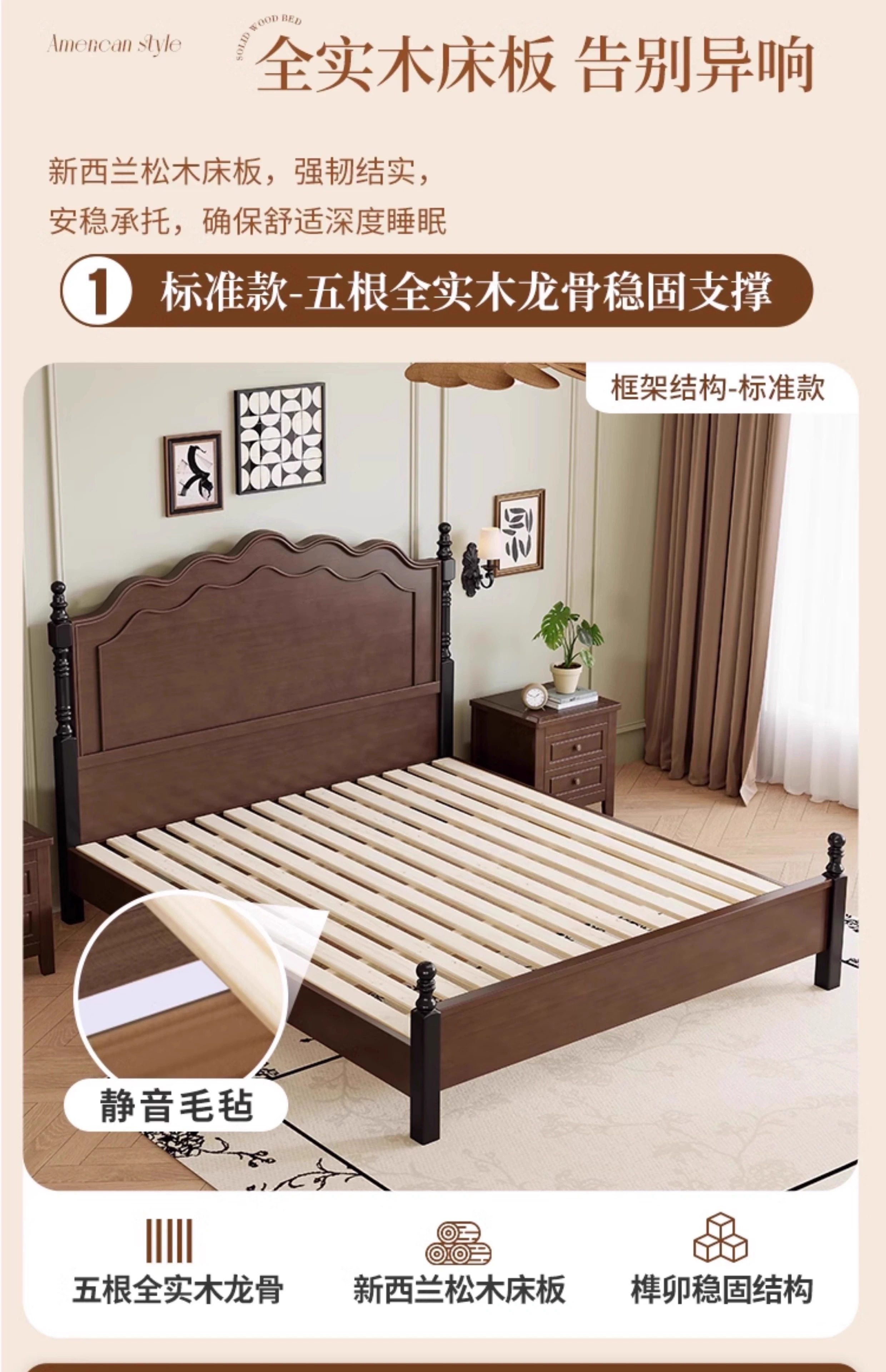 미국식 원목 침대, 모던하고 심플한 1.5m 더블 침대, 1.8m 중고 침대, 복고풍 프렌치 침대, 마스터 침실, 가벼운 럭셔리 웨딩 침대스토어 가기