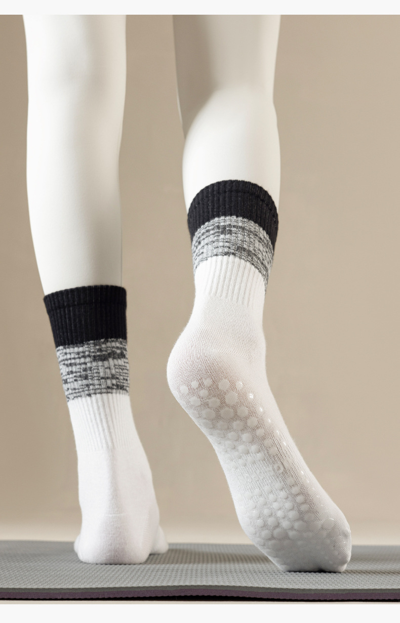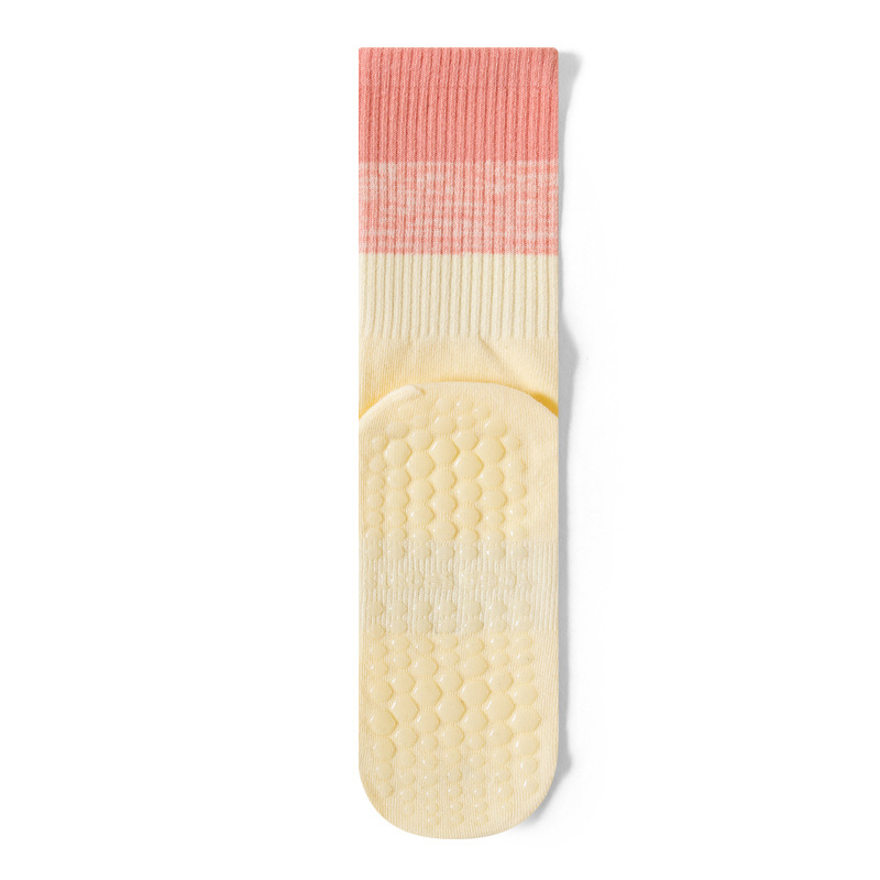 요가 양말 타이 염색 그라데이션 필라테스 양말 여성 요가 미끄럼 방지 긴 튜브 전문 스포츠 피트니스 중간 튜브 양말