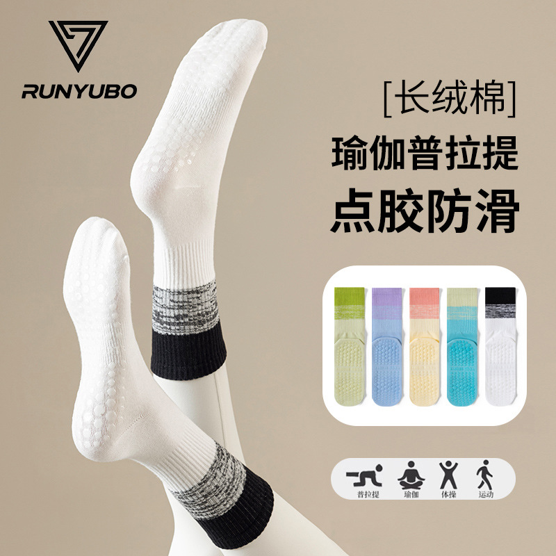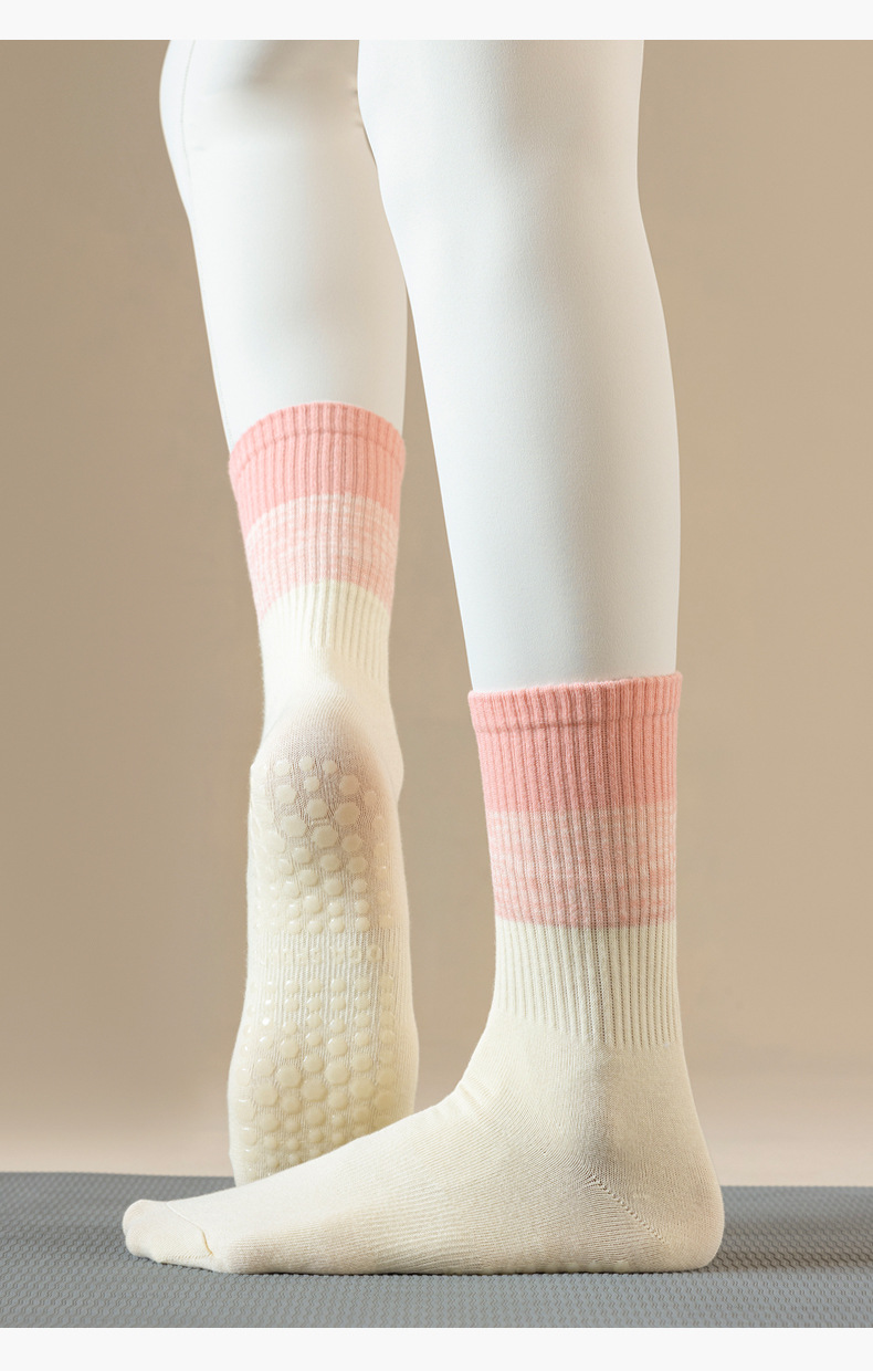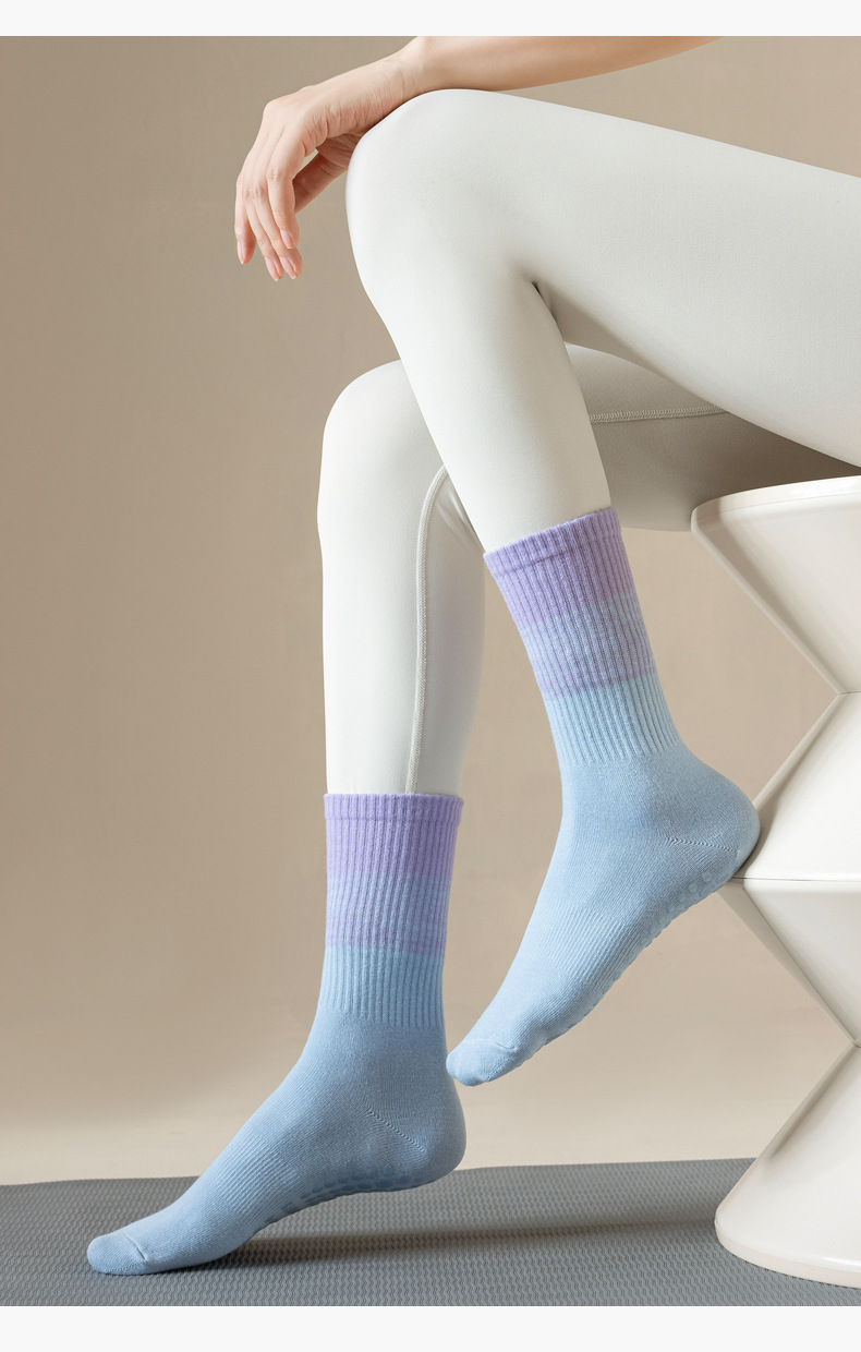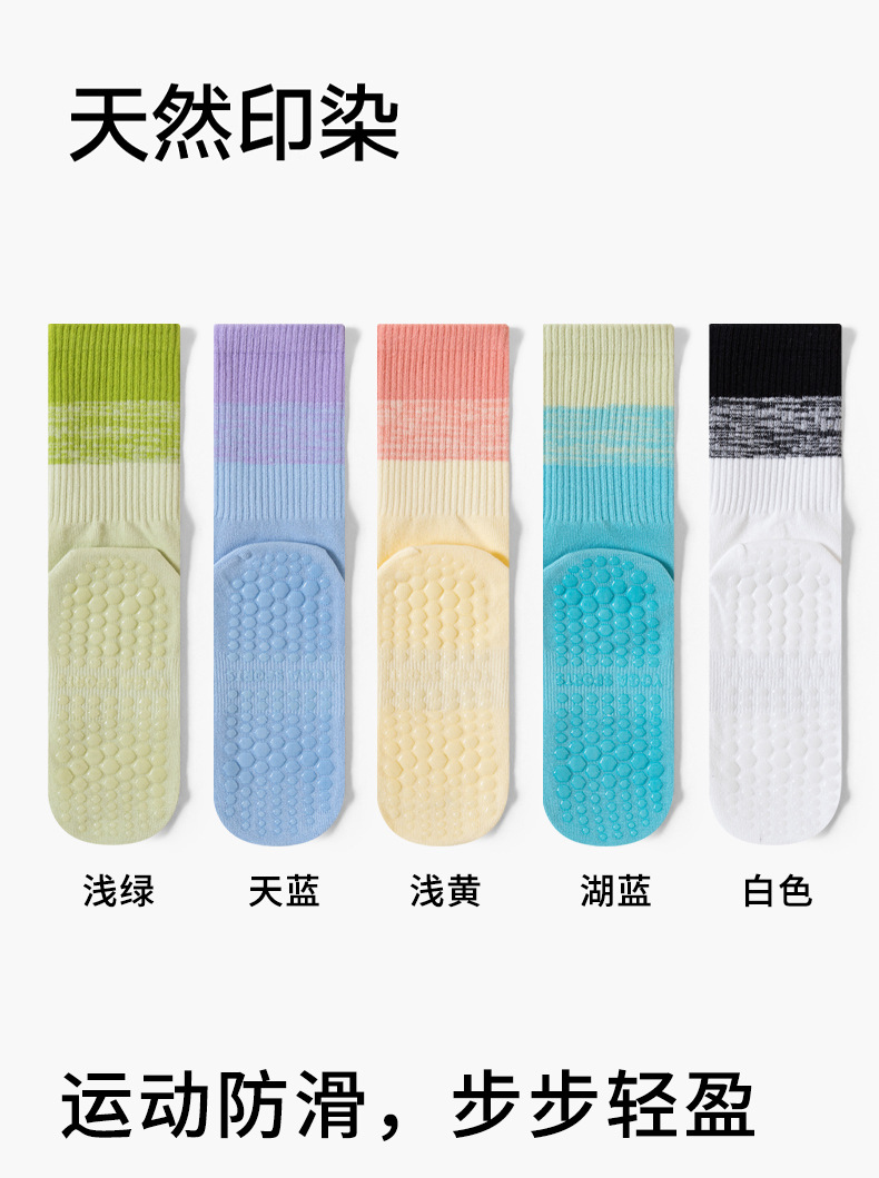 요가 양말 타이 염색 그라데이션 필라테스 양말 여성 요가 미끄럼 방지 긴 튜브 전문 스포츠 피트니스 중간 튜브 양말스토어 가기