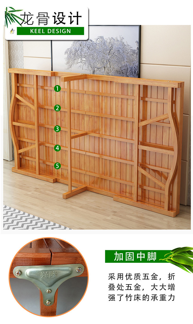대나무 침대 접이식 침대 싱글 더블 점심 시간 낮잠 단단한 나무 보드 게으른 시원한 침대 성인 가정용 간단한 대나무 침대스토어 가기
