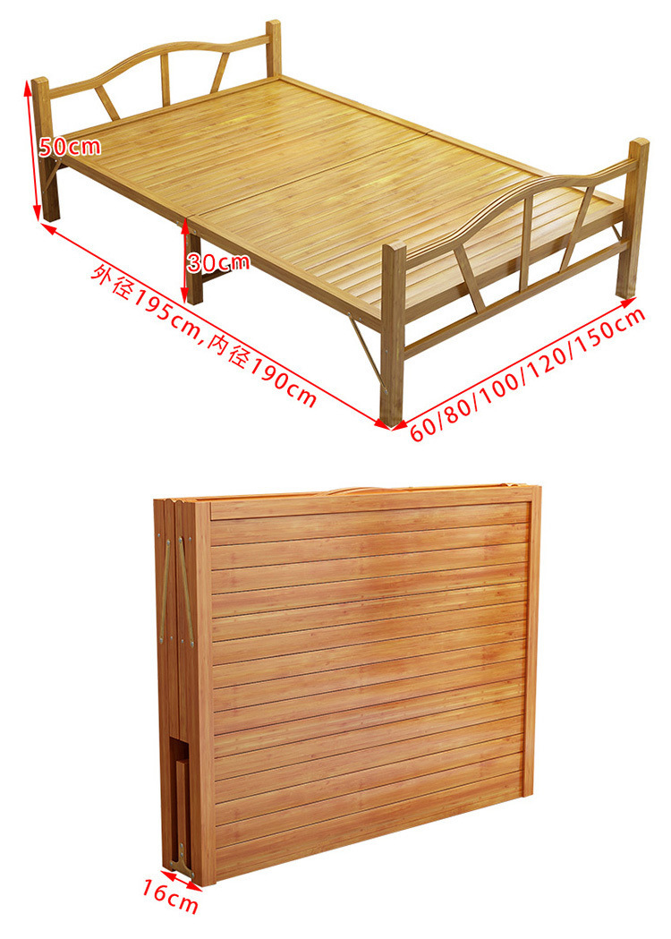 대나무 침대 접이식 침대 싱글 더블 점심 시간 낮잠 단단한 나무 보드 게으른 시원한 침대 성인 가정용 간단한 대나무 침대