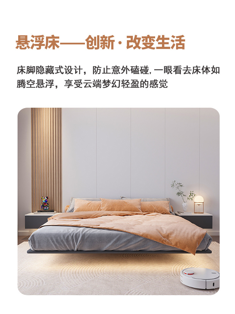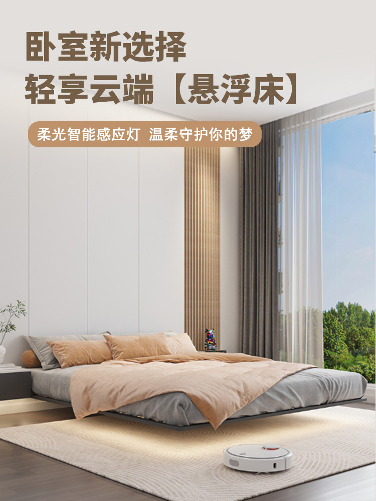 침대가 없는 간단한 침대 프레임, 소형 싱글 침대, 마스터 침실, 1.8m 더블 침대, 탄소강 고급 공중 침대스토어 가기