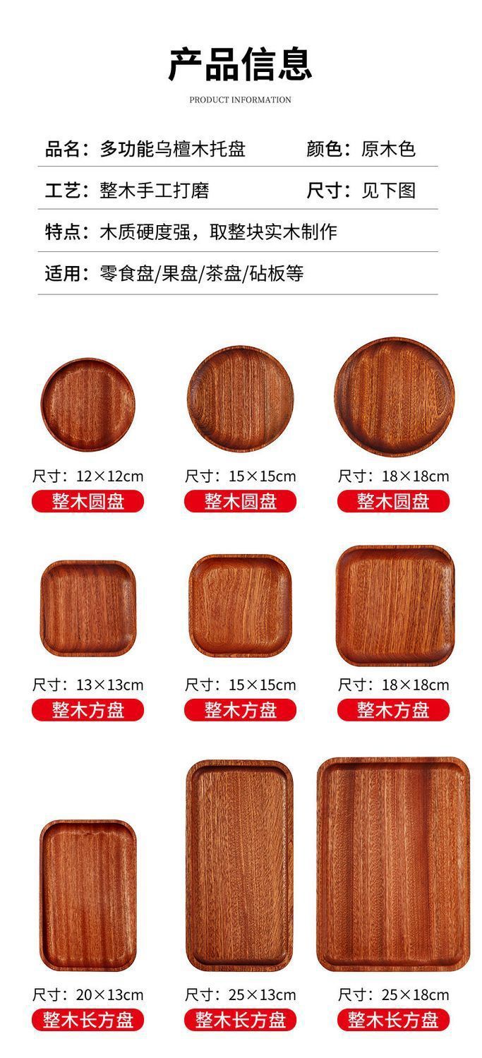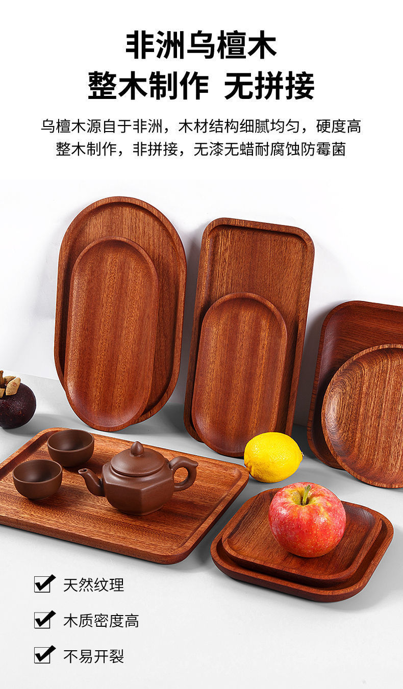 천연 단단한 검은 색 단단한 나무 트레이 가정용 곰팡이 방지 과일 트레이 차 물 나무 트레이 직사각형 상업용스토어 가기