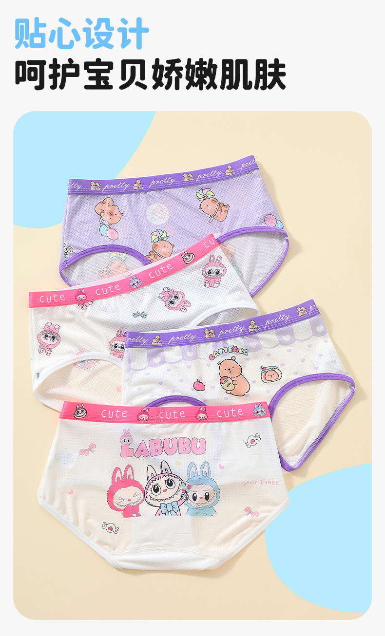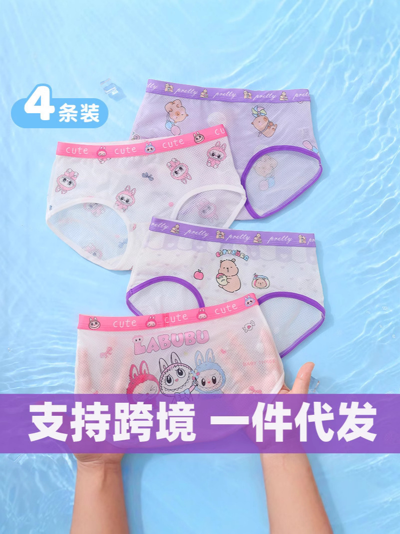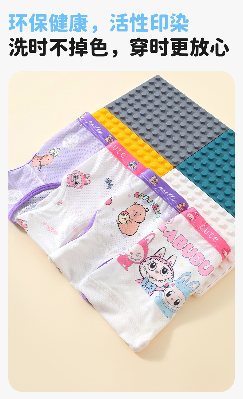 도매 여름 얇은 얼음 실크 딸기 소녀의 얇은 삼각형 항균 속옷 중대형 어린이 복서 소녀 속옷스토어 가기