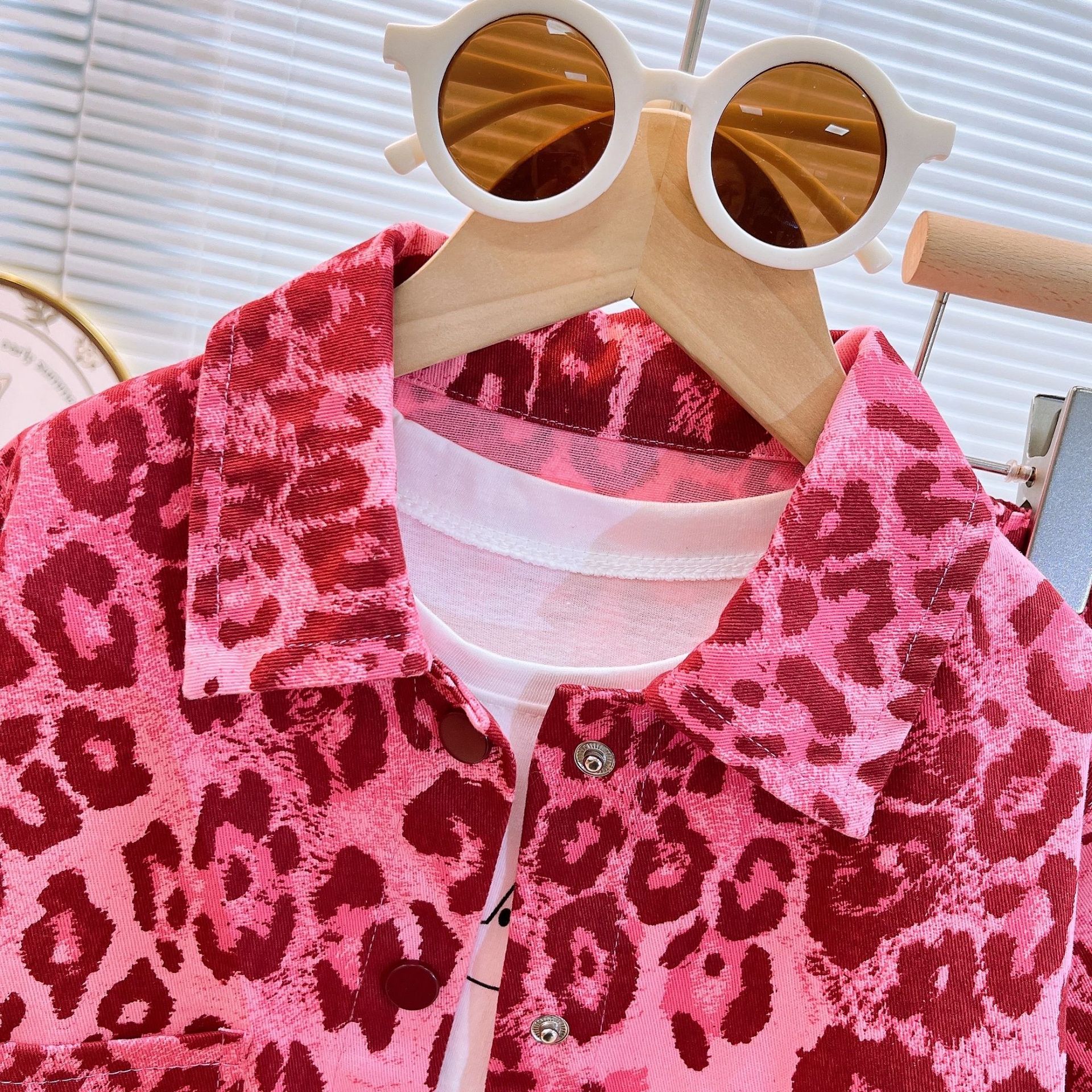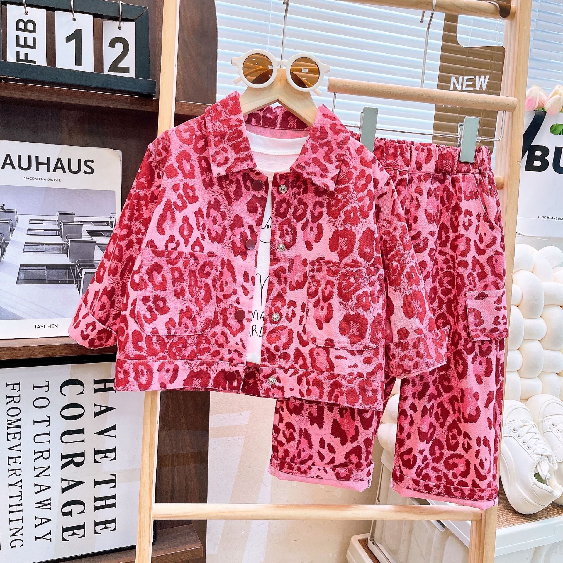 여아 2026 가을 신상 아동복 여아 패션 핑크 레오파드 프린트 세트 긴팔 자켓과 긴 바지 투피스 세트스토어 가기
