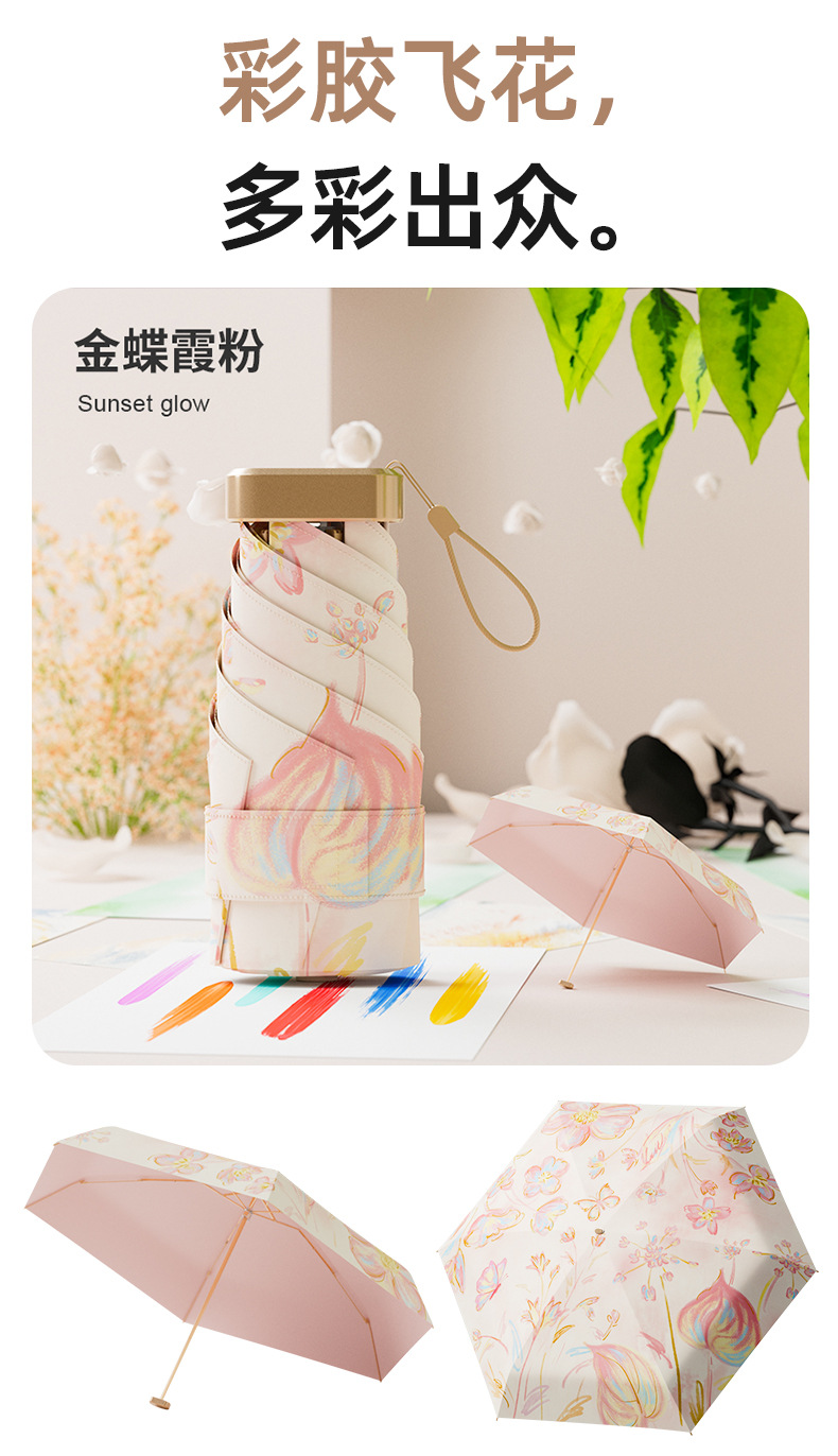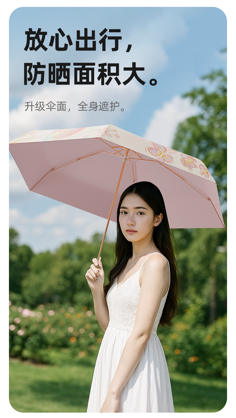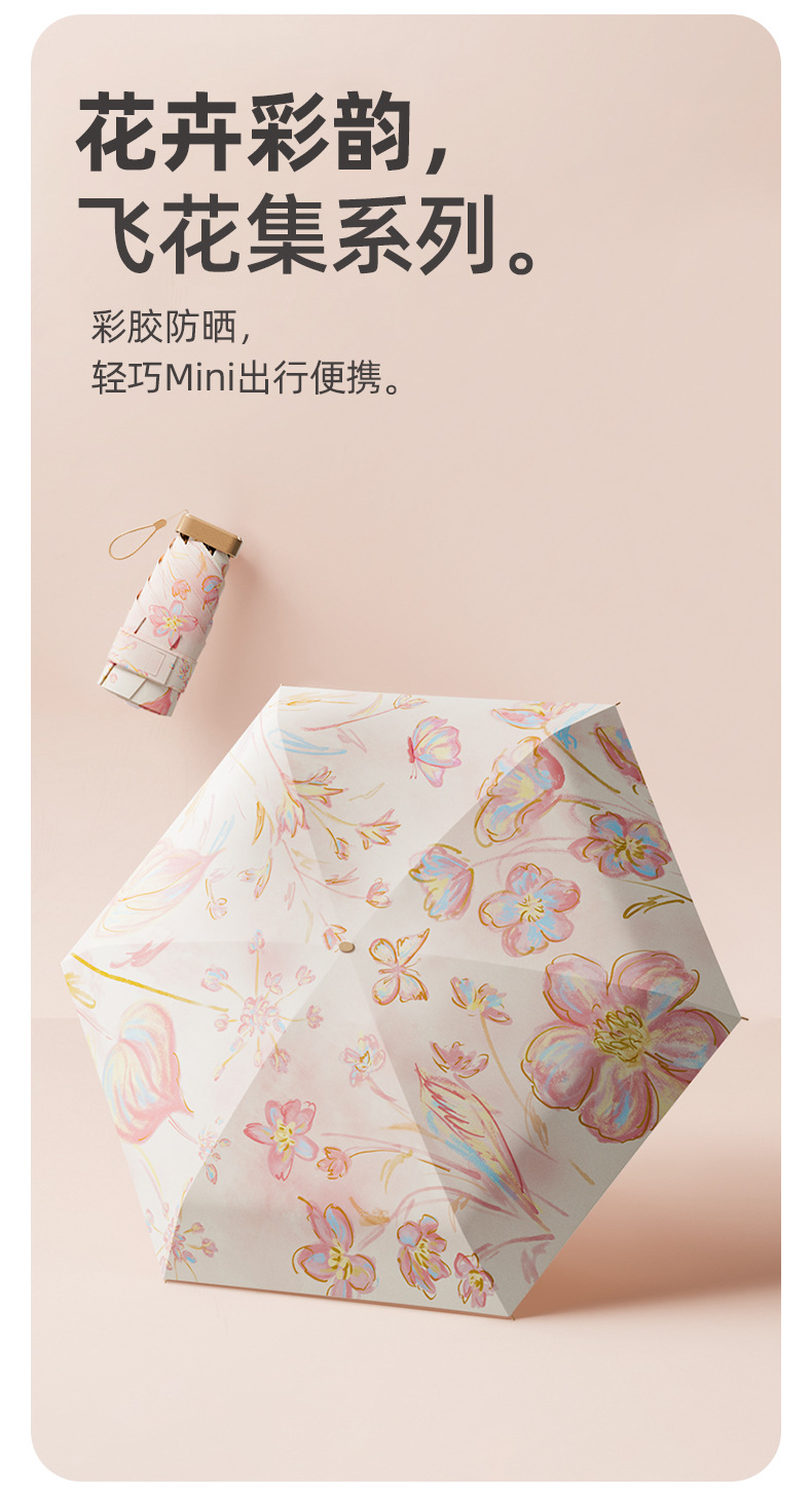 4. 颜值实力并存!清新花卉图案超吸睛,迷你便携+硬核防晒+晴雨两用,实用又好看,出街自带氛围感~