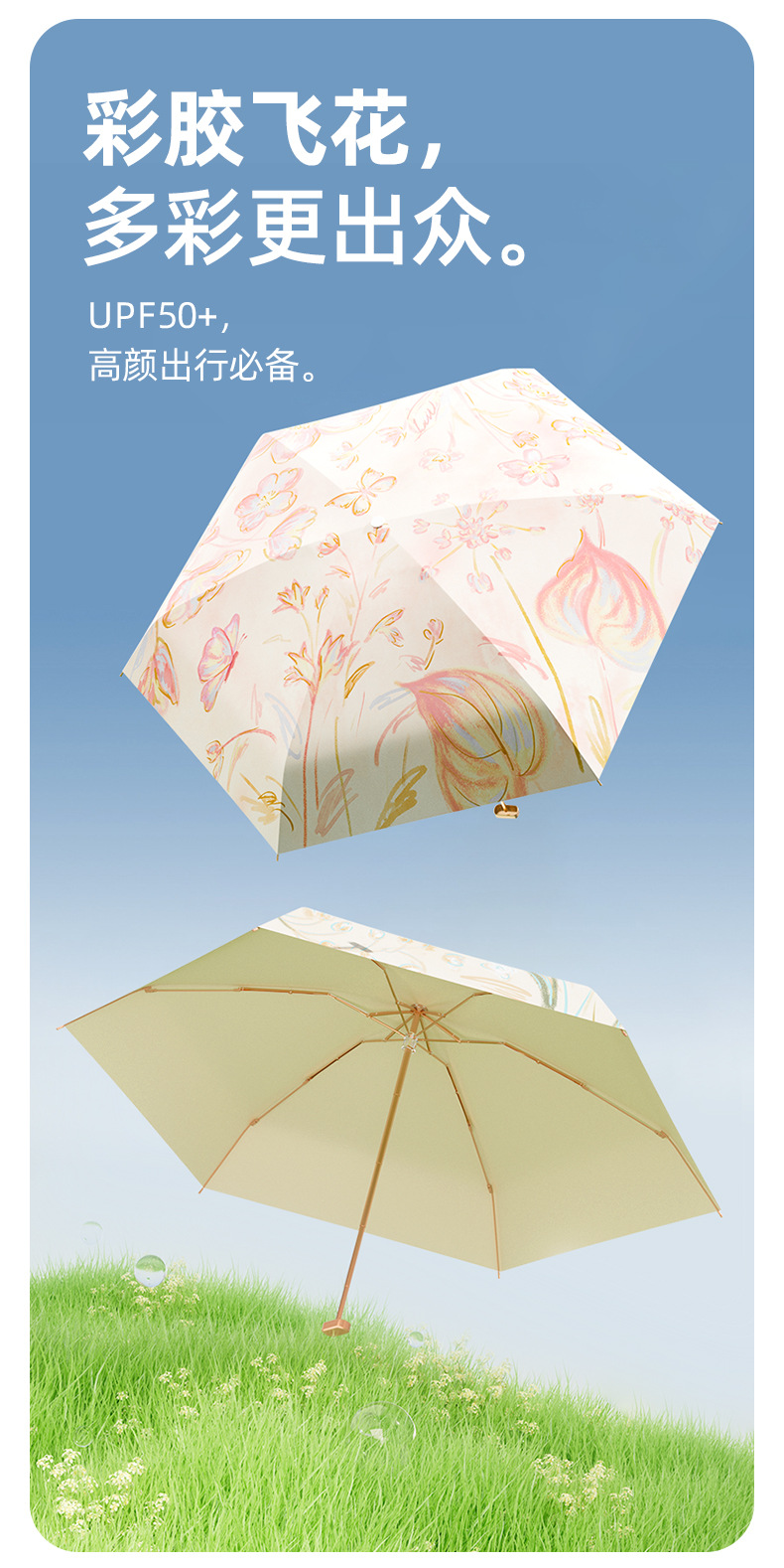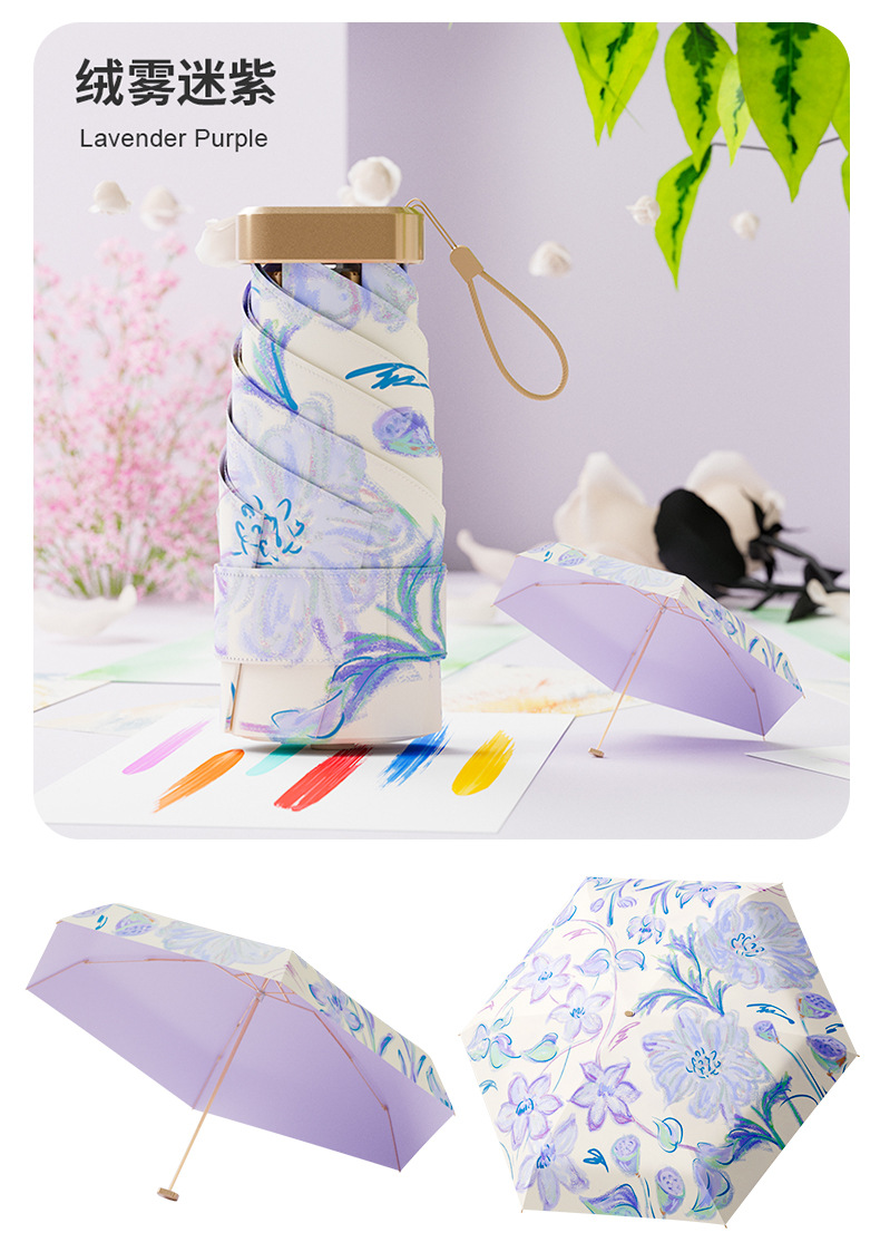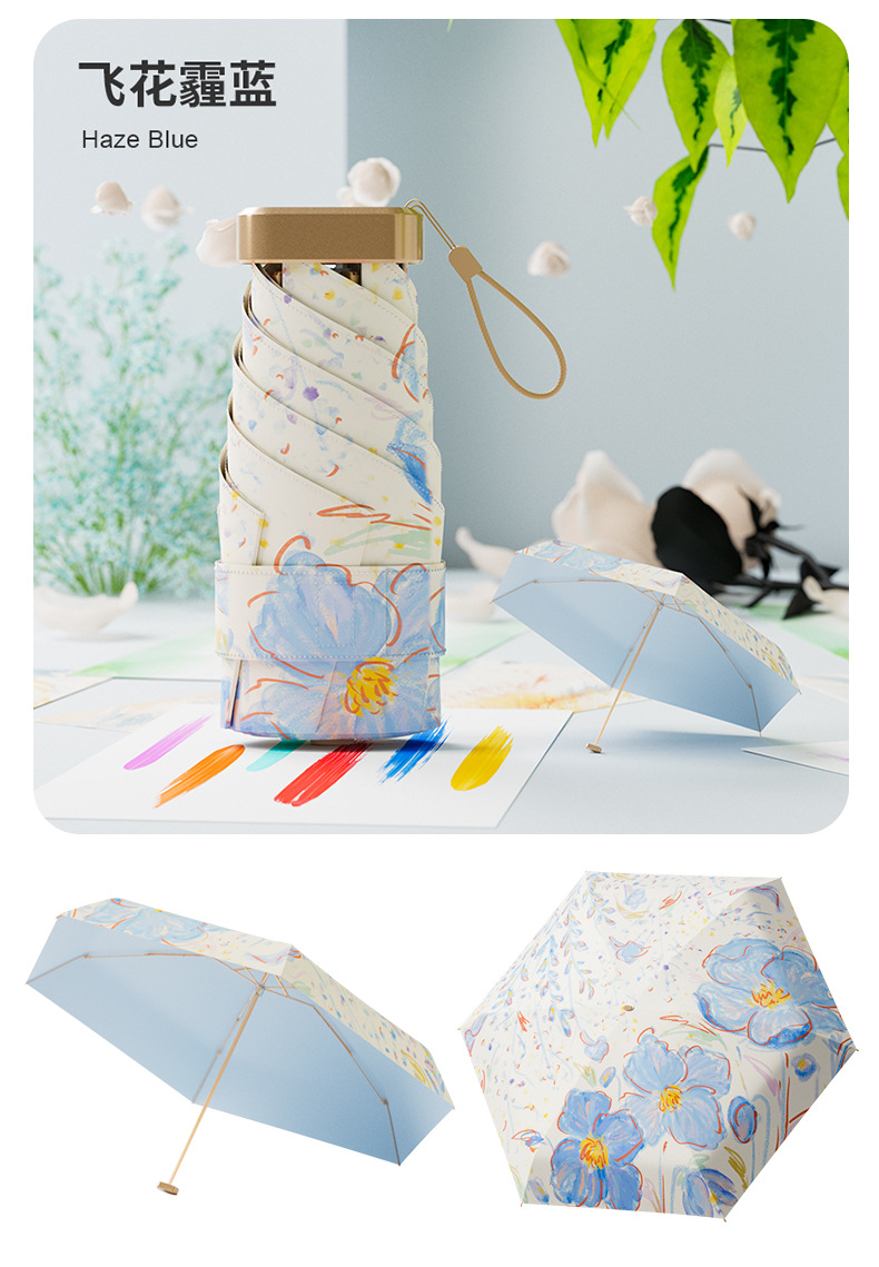4. 颜值实力并存!清新花卉图案超吸睛,迷你便携+硬核防晒+晴雨两用,实用又好看,出街自带氛围感~