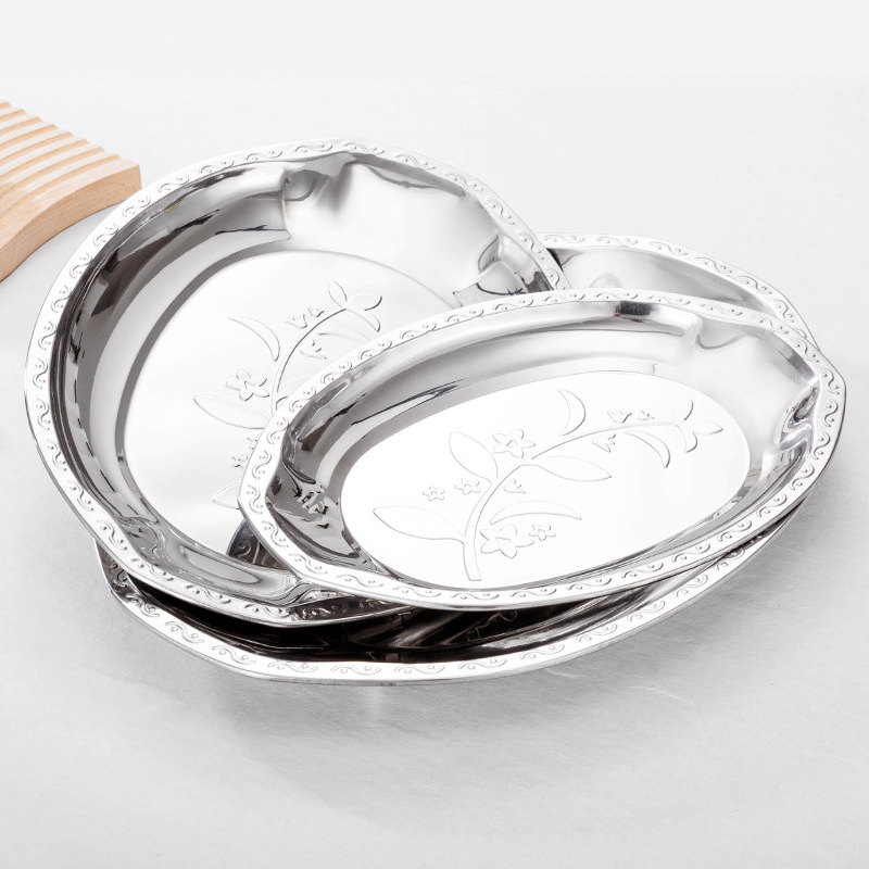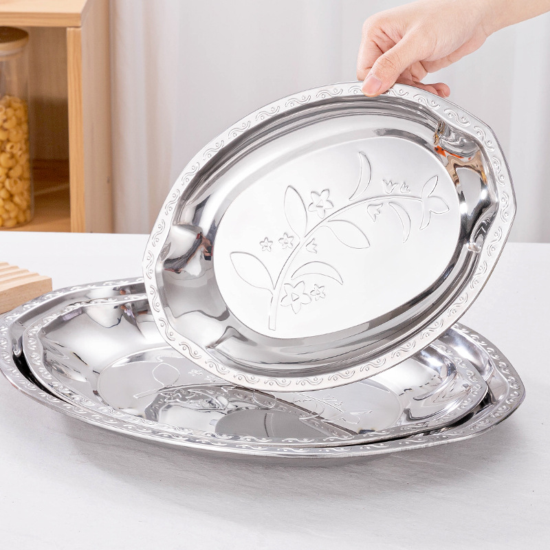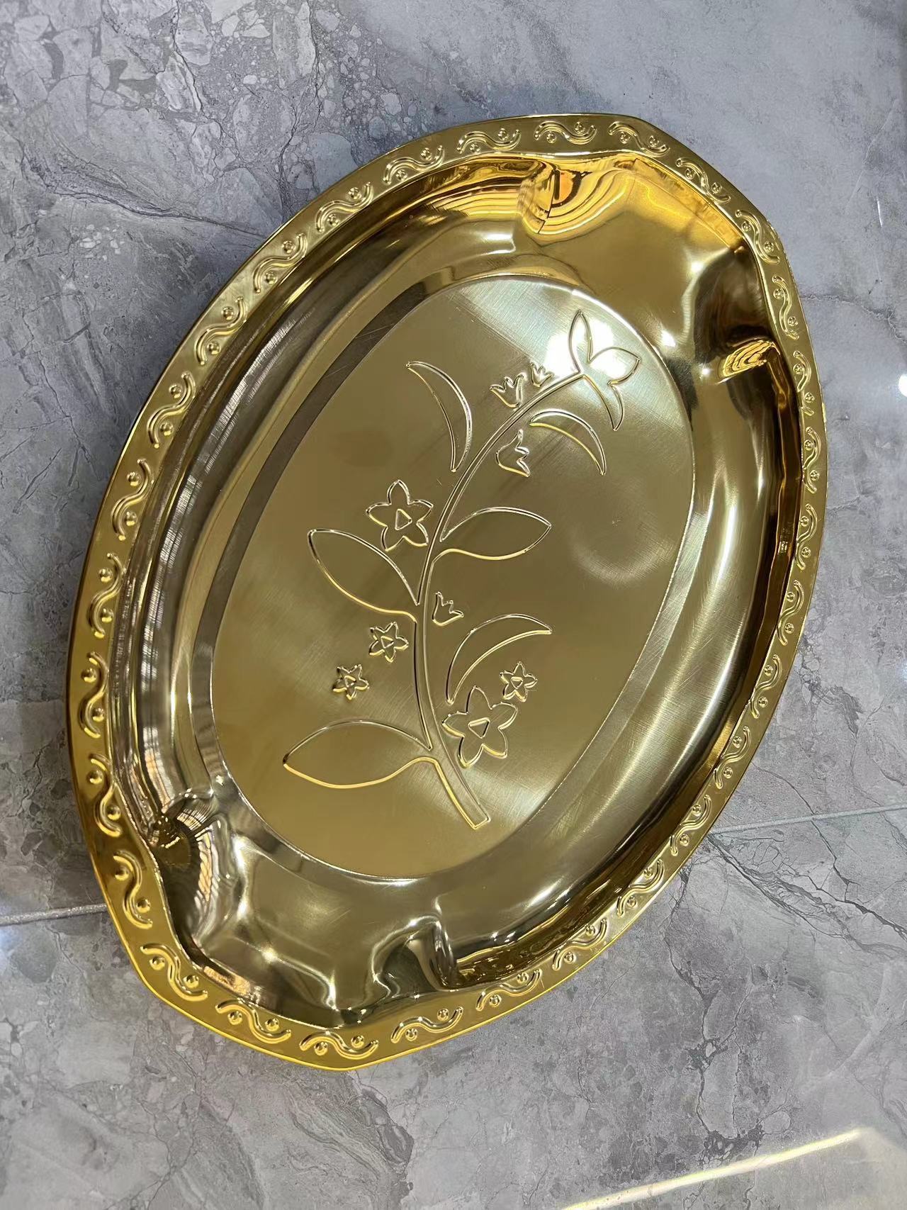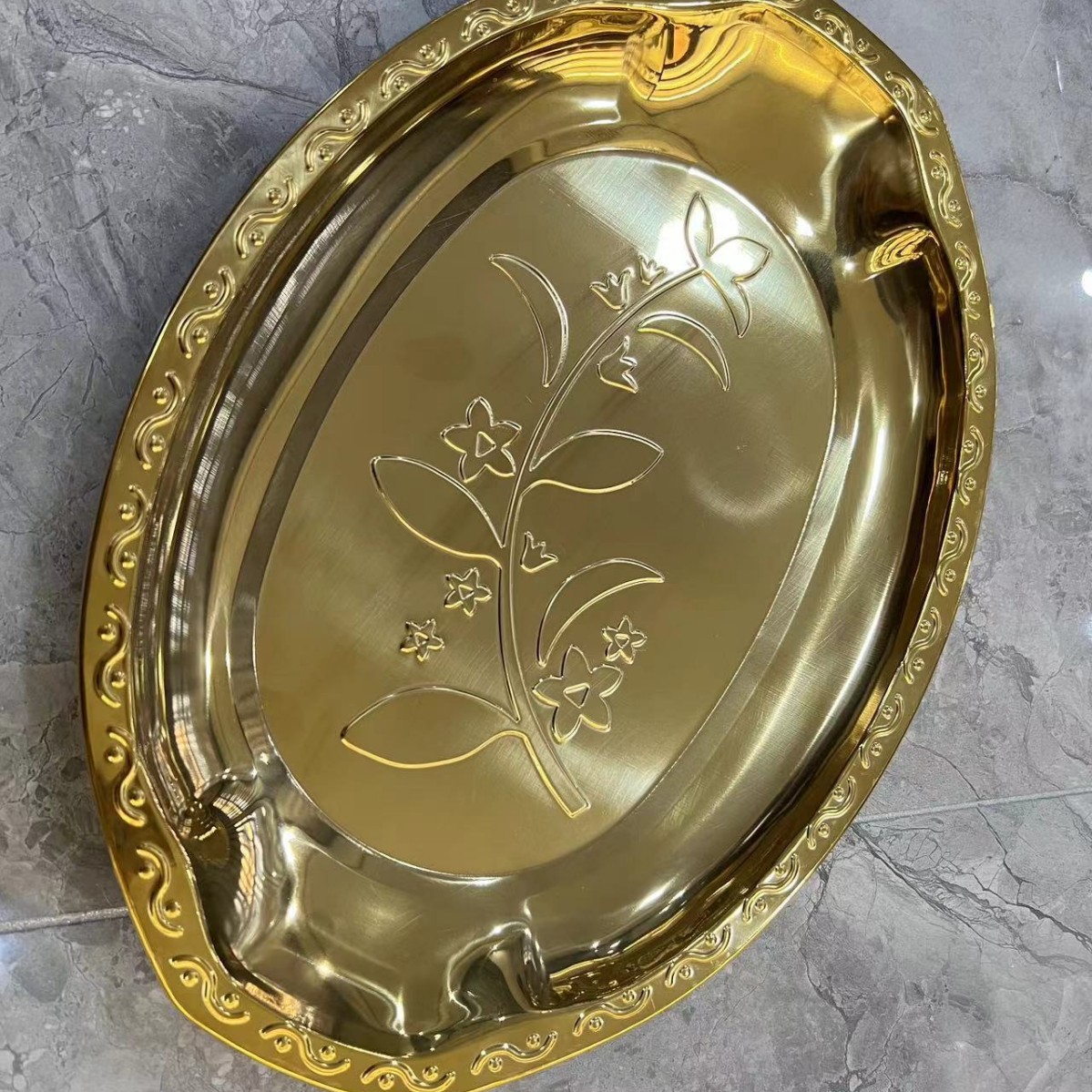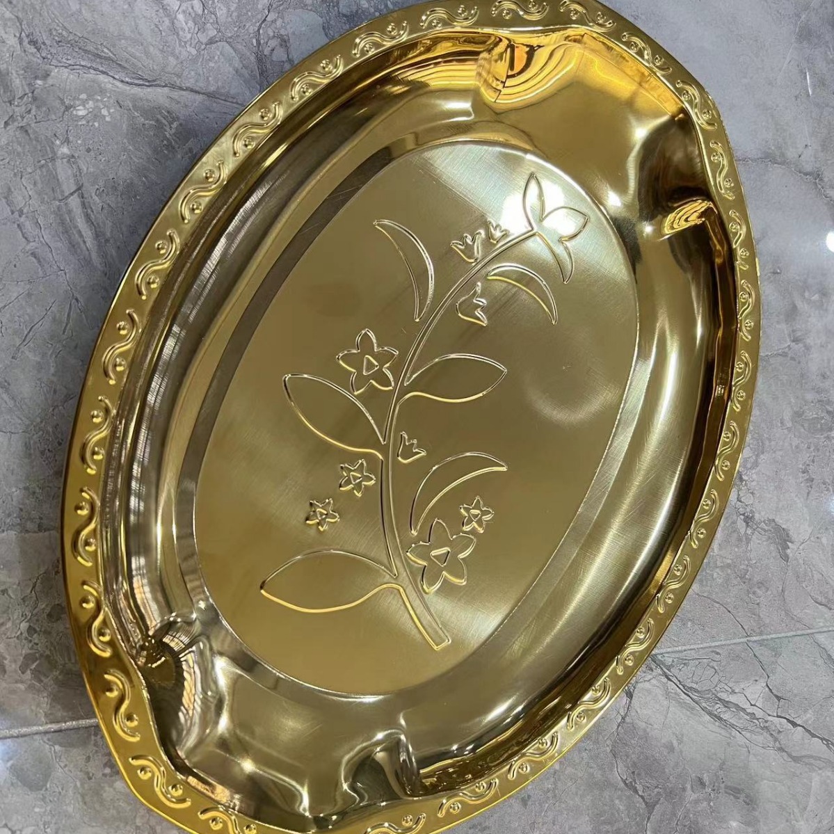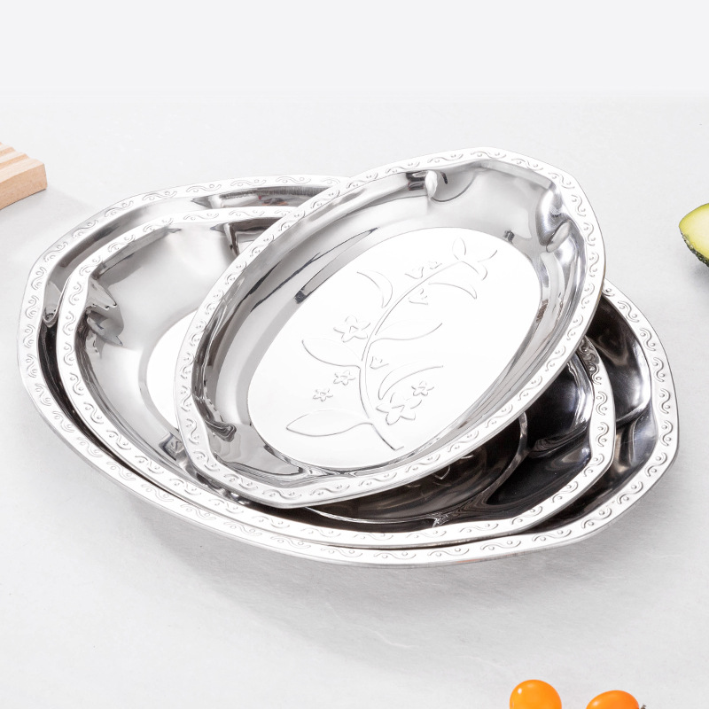국경 간 전자 상거래 전기 도금 스테인레스 스틸 특징 살구 계란 접시 타원형 생선 접시 바베큐 접시 트레이 행운의 과일