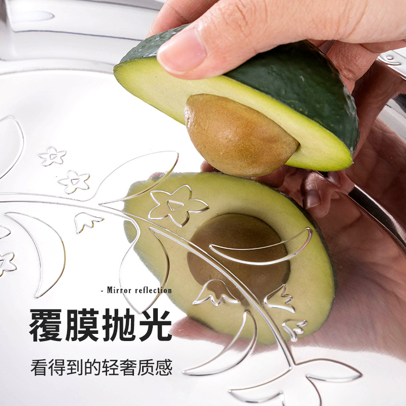 국경 간 전자 상거래 전기 도금 스테인레스 스틸 특징 살구 계란 접시 타원형 생선 접시 바베큐 접시 트레이 행운의 과일스토어 가기