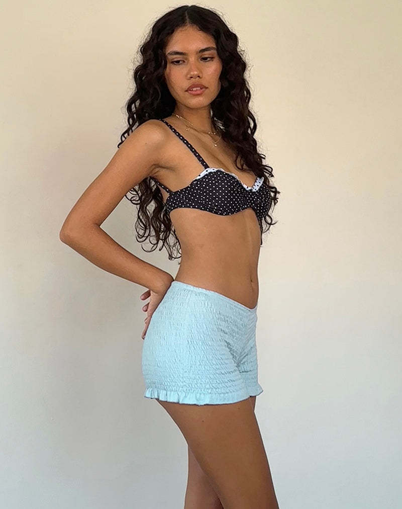 유럽과 미국 여름 여성 Y2k 솔리드 컬러 캐주얼 로우 허리 섹시한 격자 무늬 주름 프릴 울트라 짧은 바지스토어 가기