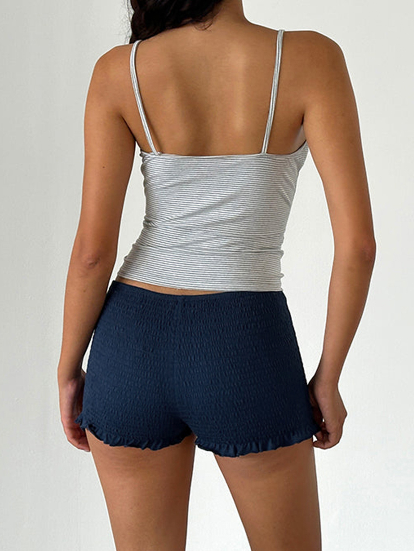 유럽과 미국 여름 여성 Y2k 솔리드 컬러 캐주얼 로우 허리 섹시한 격자 무늬 주름 프릴 울트라 짧은 바지