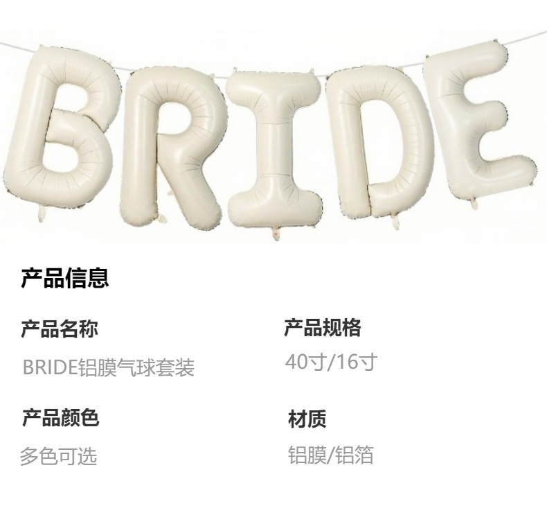 알파벳 풍선 BRIDE 알루미늄 필름 풍선 16inch 40inch 밀키 화이트 신부 풍선 웨딩 장식 풍선 세트