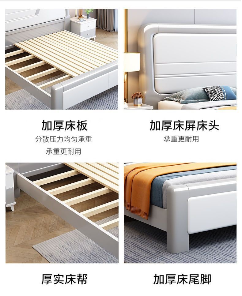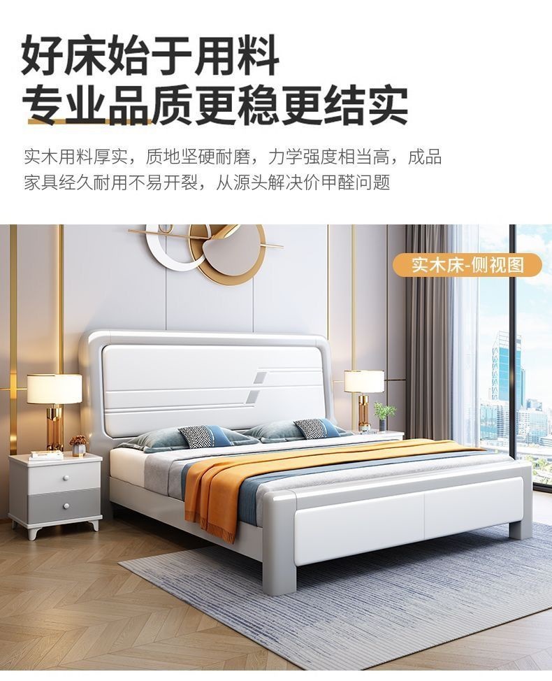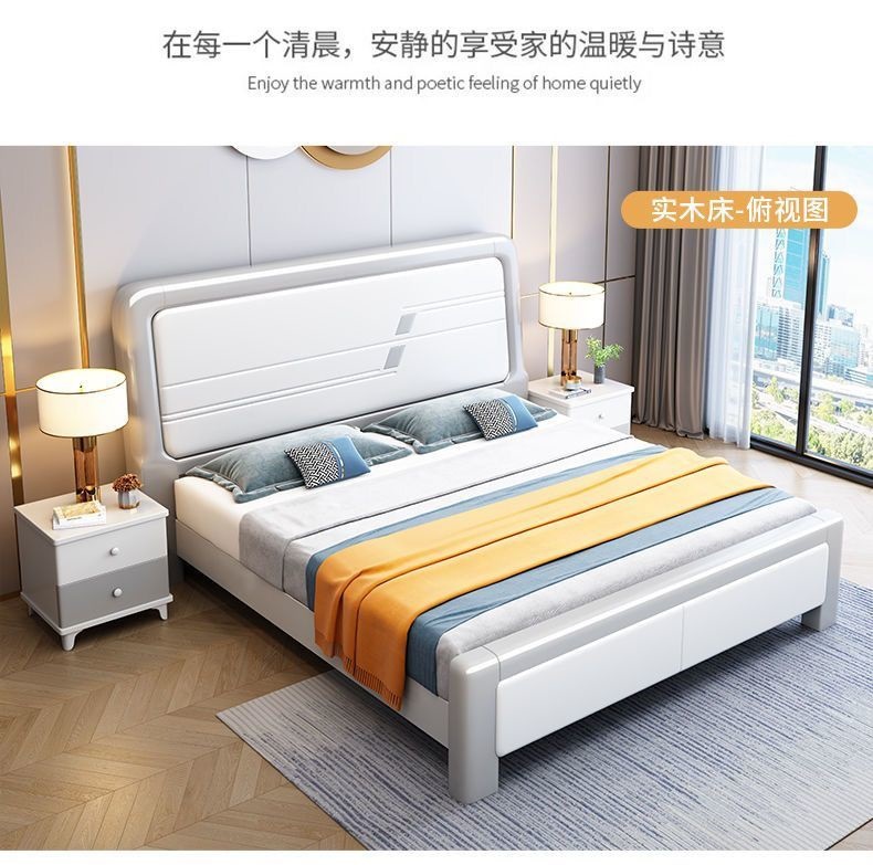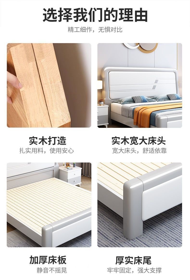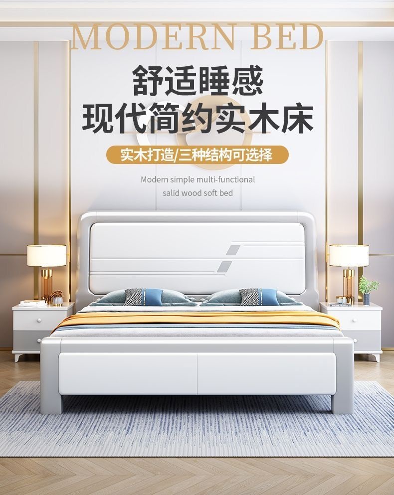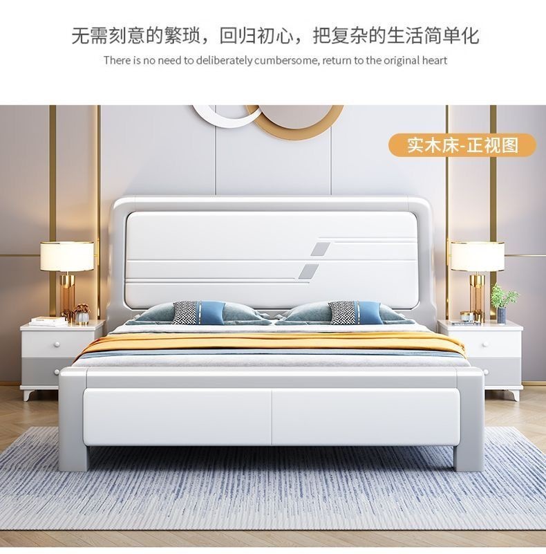 심플한 원목 침대, 모던한 엠보싱 소형 가정용 더블 마스터 침실 대형 침대 임대실 싱글 수납 모따기 침대스토어 가기
