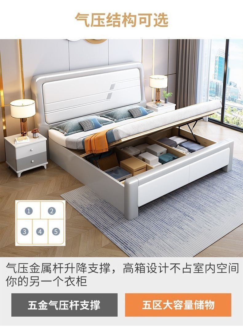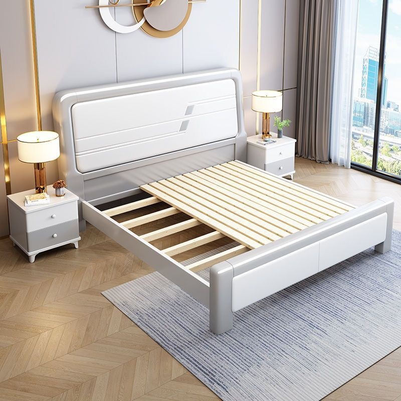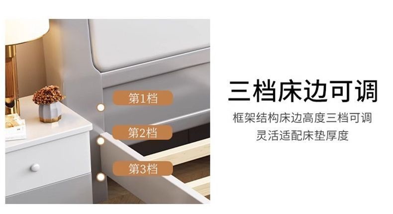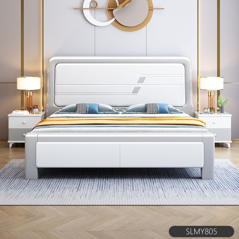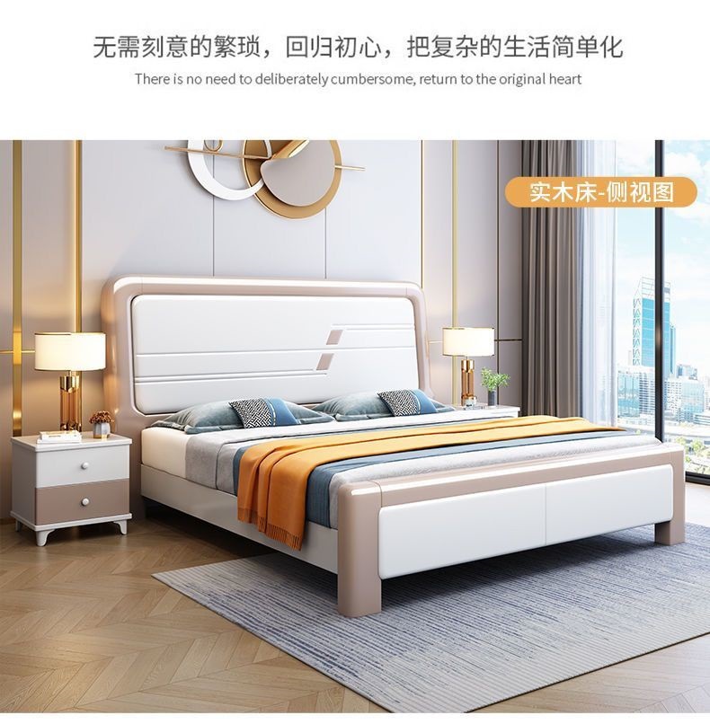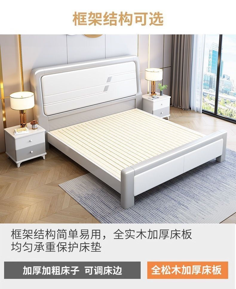 심플한 원목 침대, 모던한 엠보싱 소형 가정용 더블 마스터 침실 대형 침대 임대실 싱글 수납 모따기 침대스토어 가기