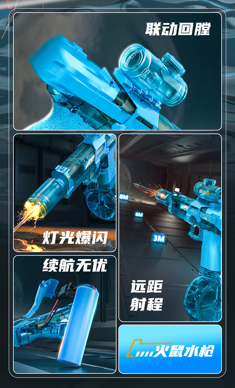 어린이 2025 물총 불꽃 얼음 쥐 새로운 장난감 전기 물 스프레이 연속 고압 강력한 어린이 장난감 여름스토어 가기