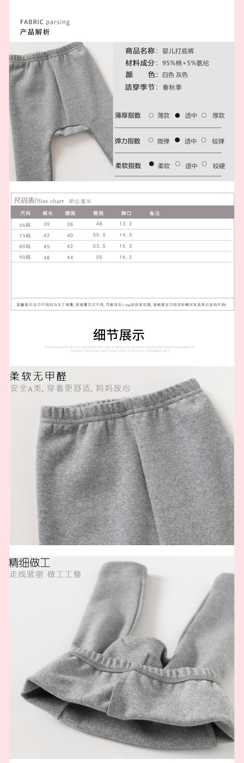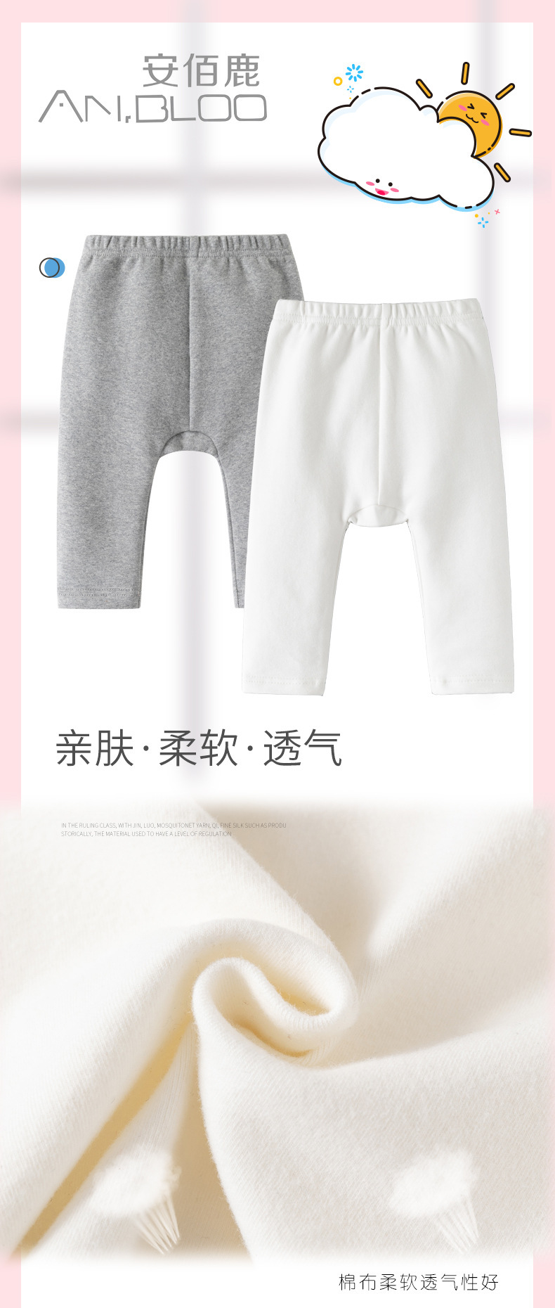 아동복, 유아용 하이웨이스트 배꼽 보호 바닥 PP팬츠, 남녀공용 베이비팬츠, 봄, 가을 A급 면 0~2세 착용 가능한 만능팬츠