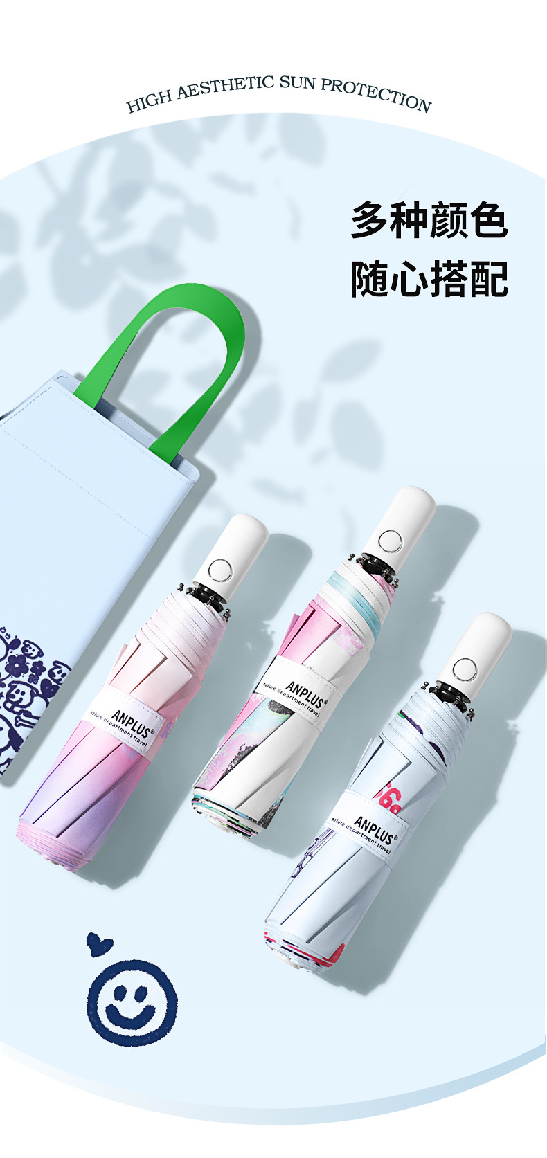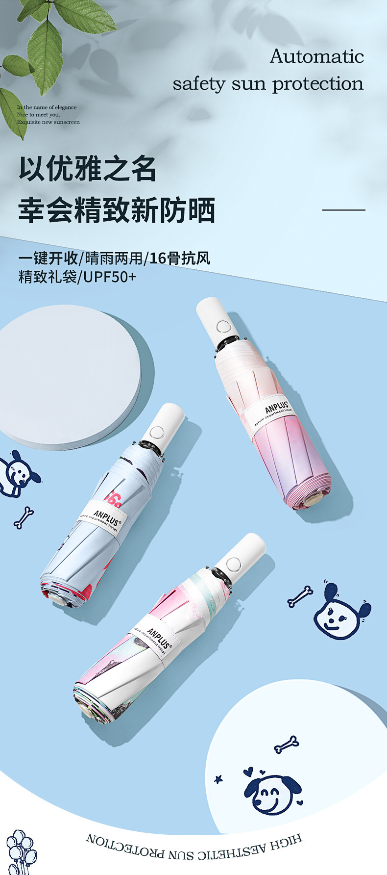 Anplus Anplus 70% off 완전 자동 우산, 고급스럽고 귀여운 파라솔, 자외선 차단 및 자외선 차단, 비 또는 빛 우산스토어 가기