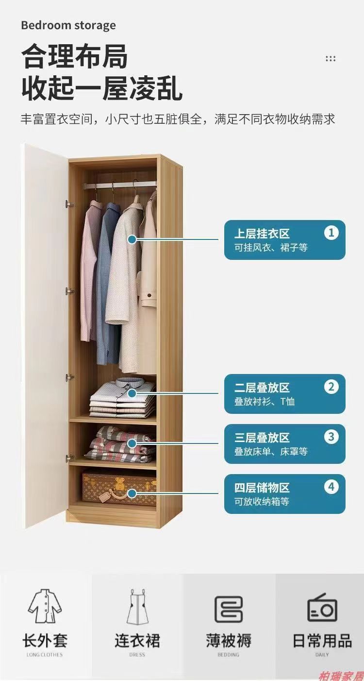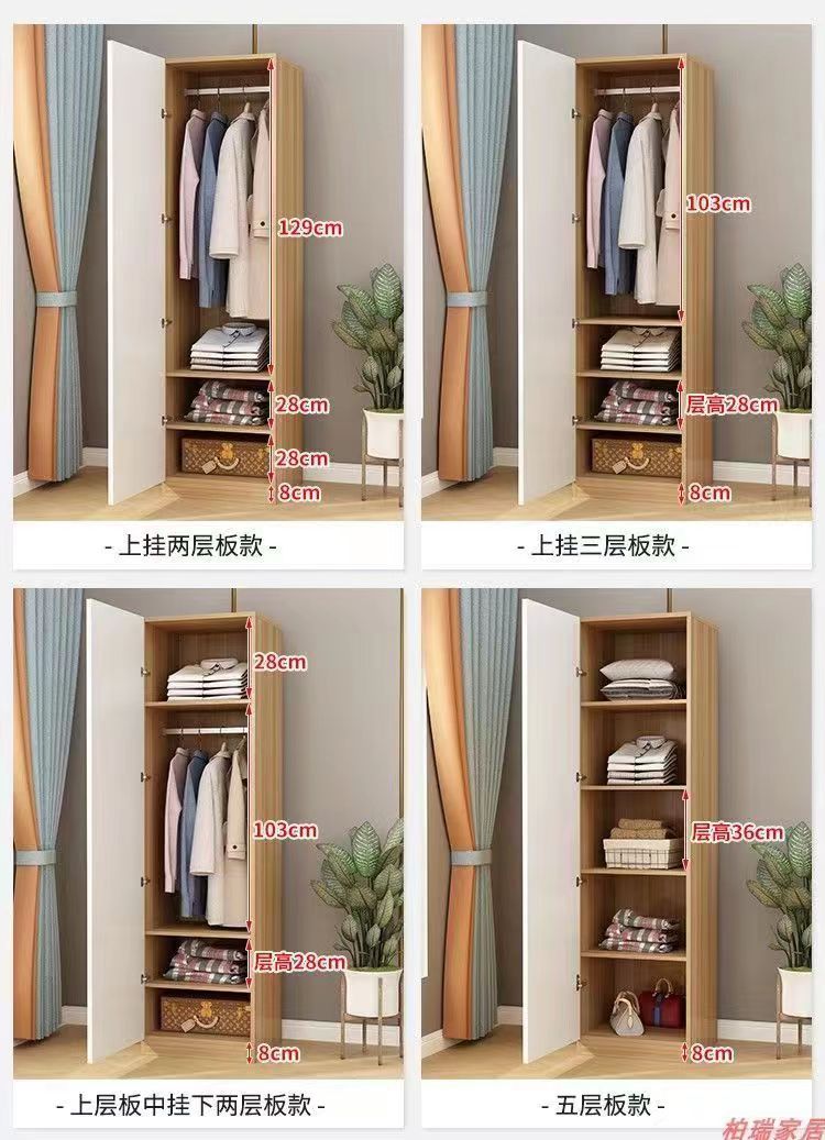 1인용 나무 옷장, 침실 수납 옷장, 소형 가정용, 경제적이고 실용적인 다층 옷장, 발코니 좁은 캐비닛 gω스토어 가기
