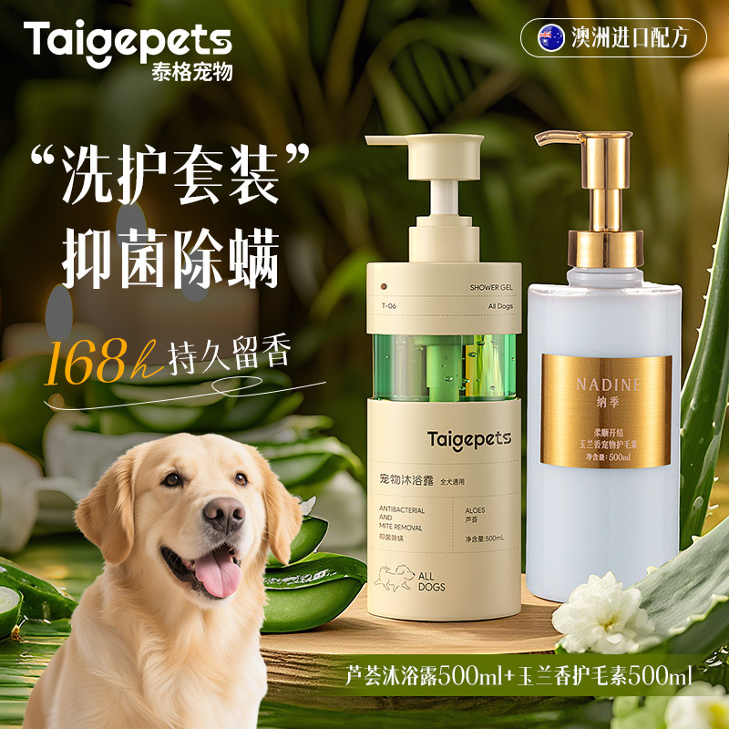• [SPA급 목욕의 즐거움] [모든 반려견 공통, 항균, 진드기 제거] 500mL + 흡수성 목욕타월 + 실리콘 마사지 브러쉬