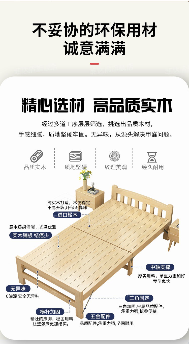 원목침대, 초두꺼운 침대판 임대, 설치 불필요, 튼튼하고 안정적이며 저렴한 접이식 침대, 두껍고 강화됨스토어 가기